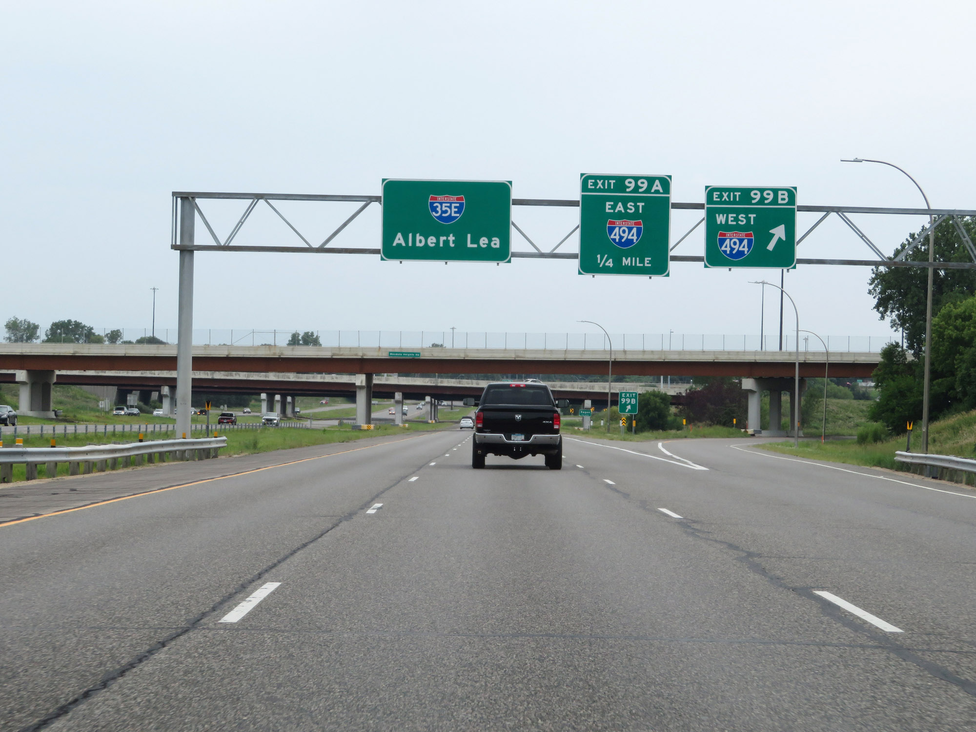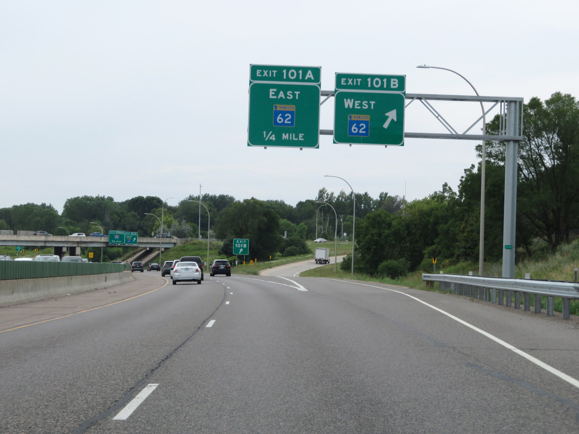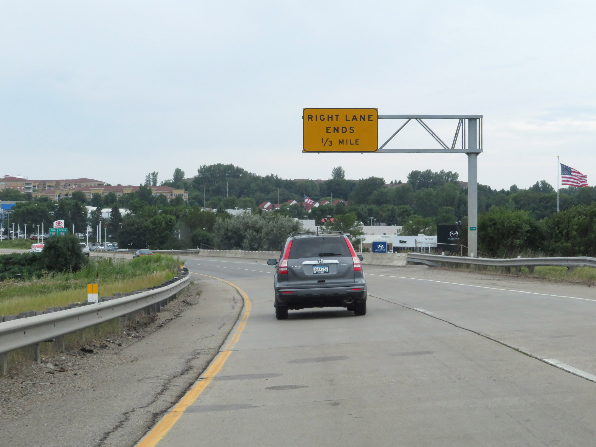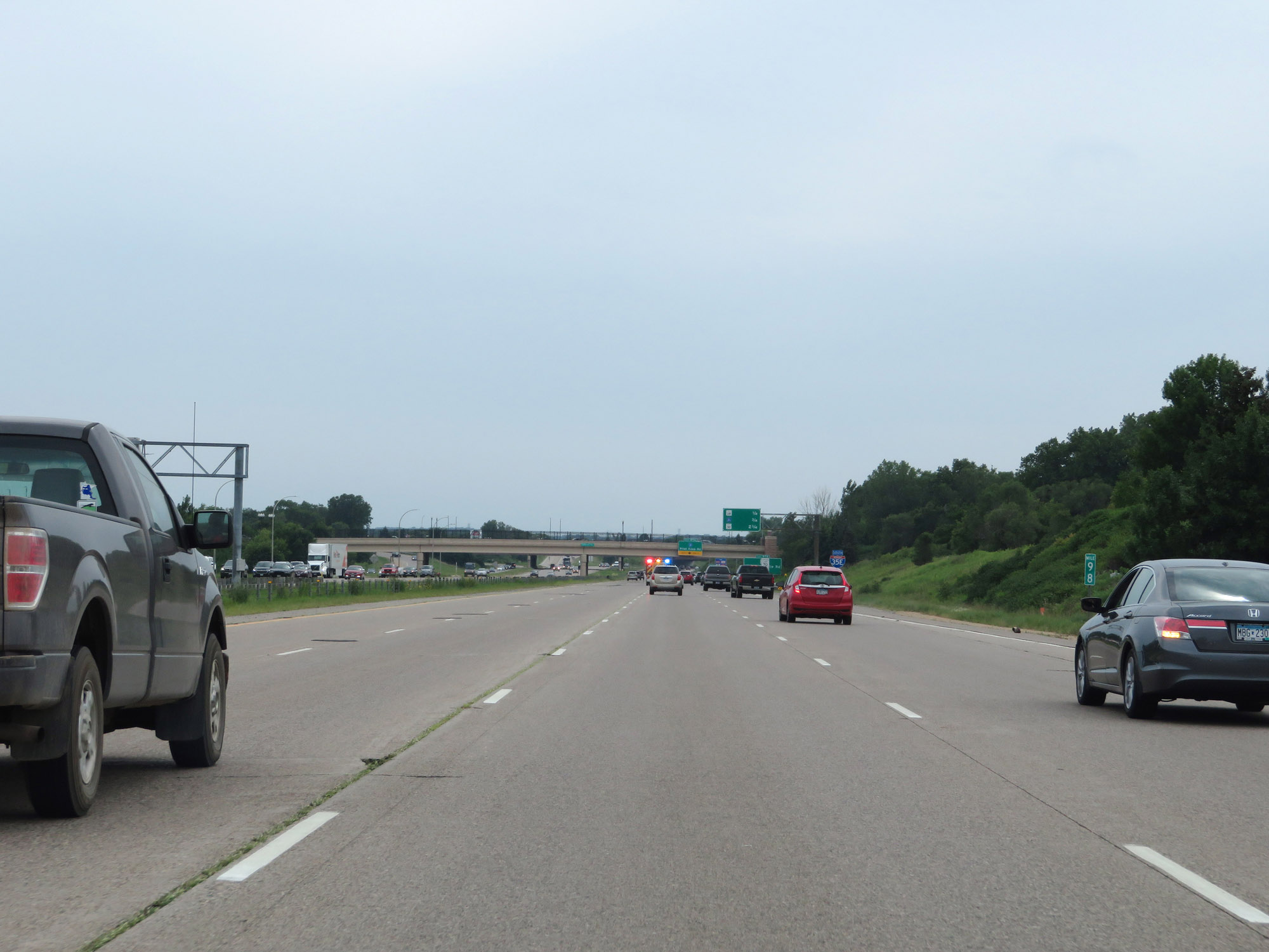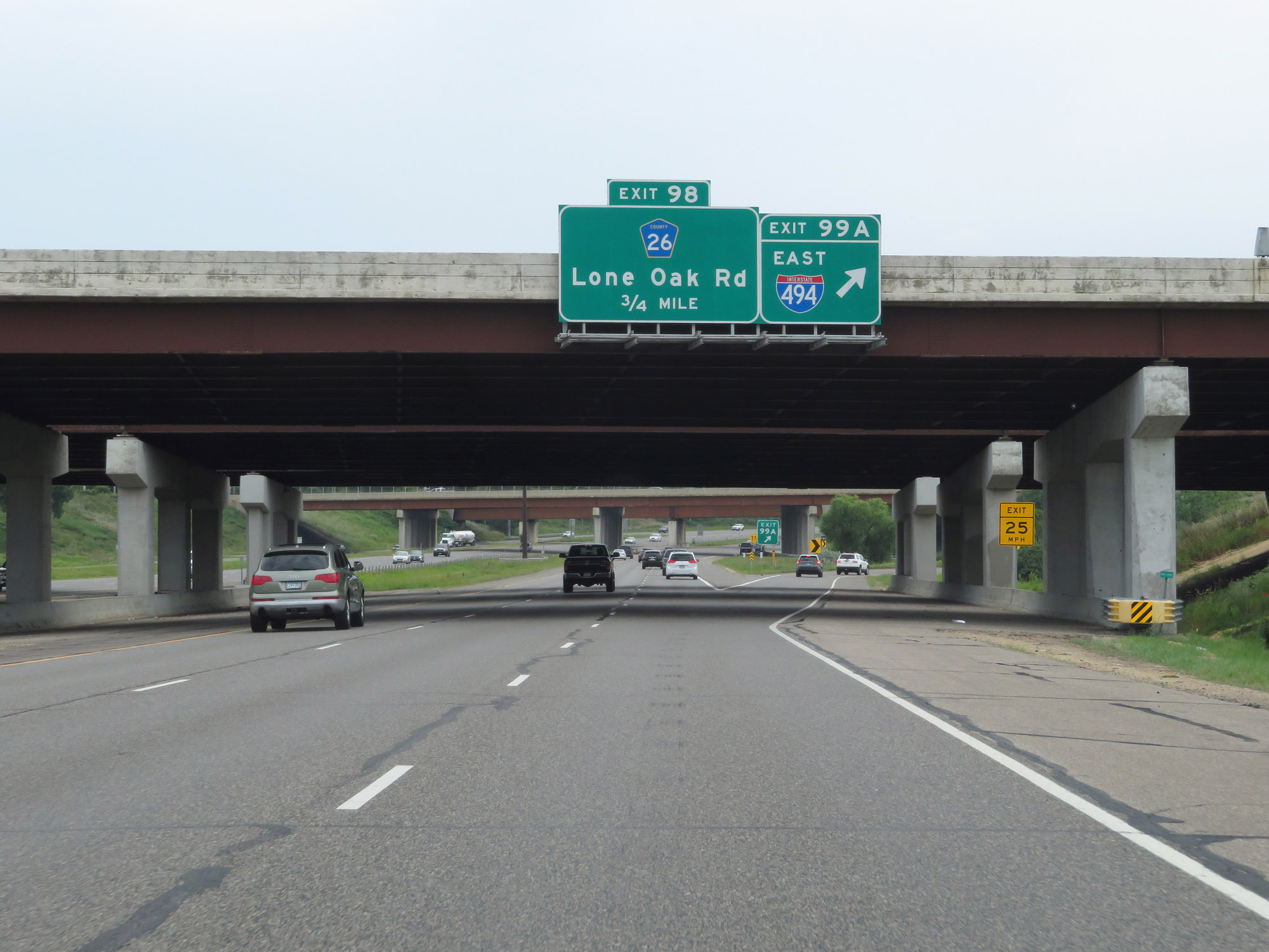 Interstate 35E South at Exit 113: Interstate 694 West (Photo taken 8/7/20). |