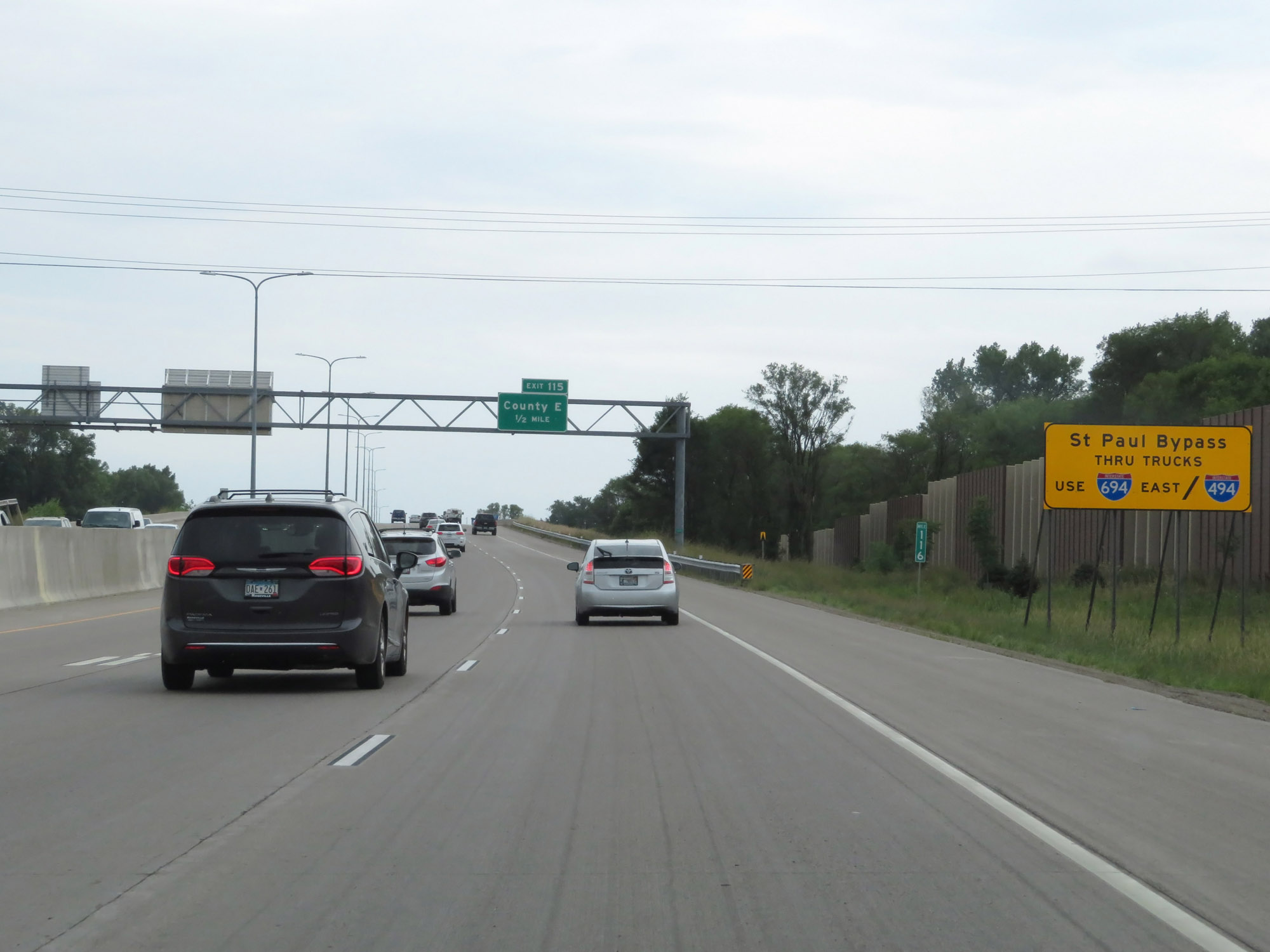 Interstate 35E South at Exit 115: County Rd E (Photo taken 8/7/20). |