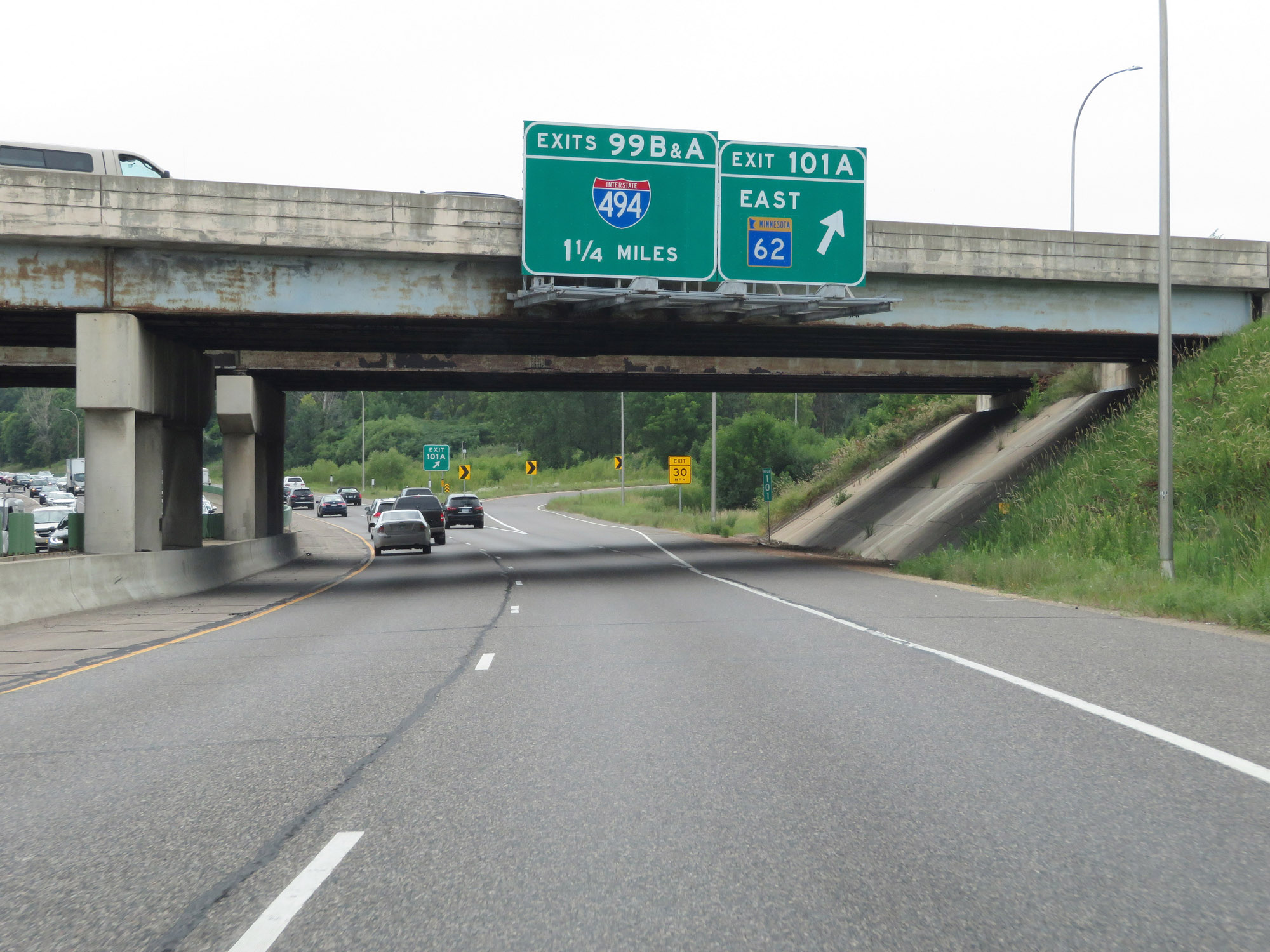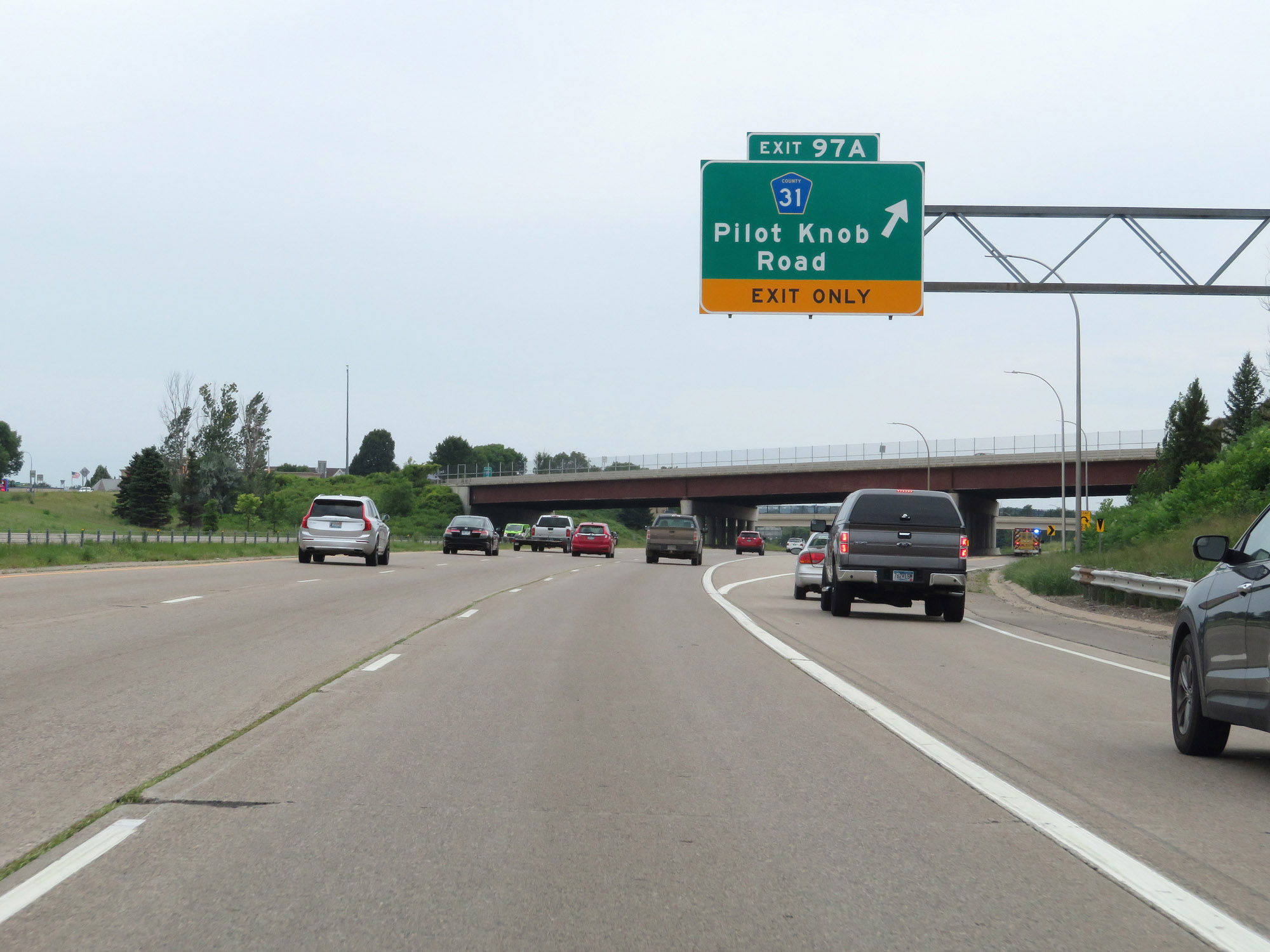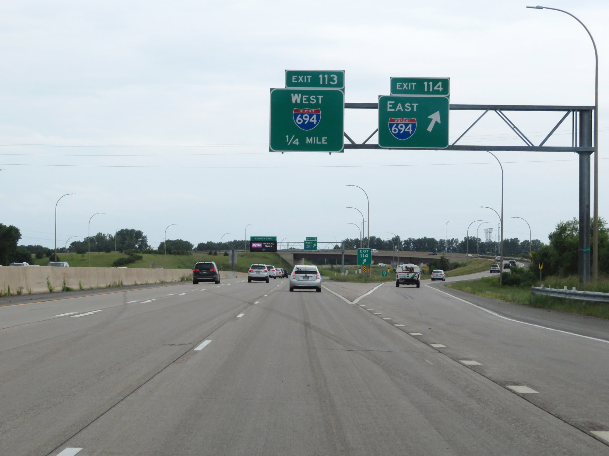 Interstate 35E South at Exit 114: Interstate 694 East (Photo taken 8/7/20). |
