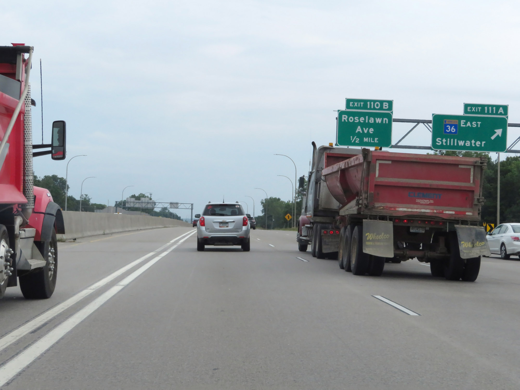 Interstate 35E South at Exit 110B: Roselawn Ave (Photo taken 8/7/20). |
