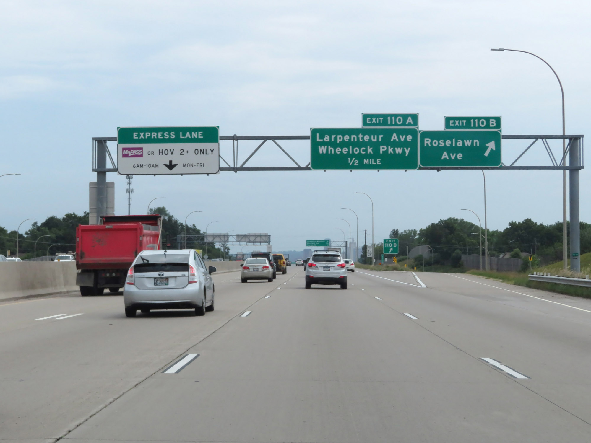 Interstate 35E South at Exit 110A: Larpenteur Ave / Wheelock Pkwy (Photo taken 8/7/20). |
