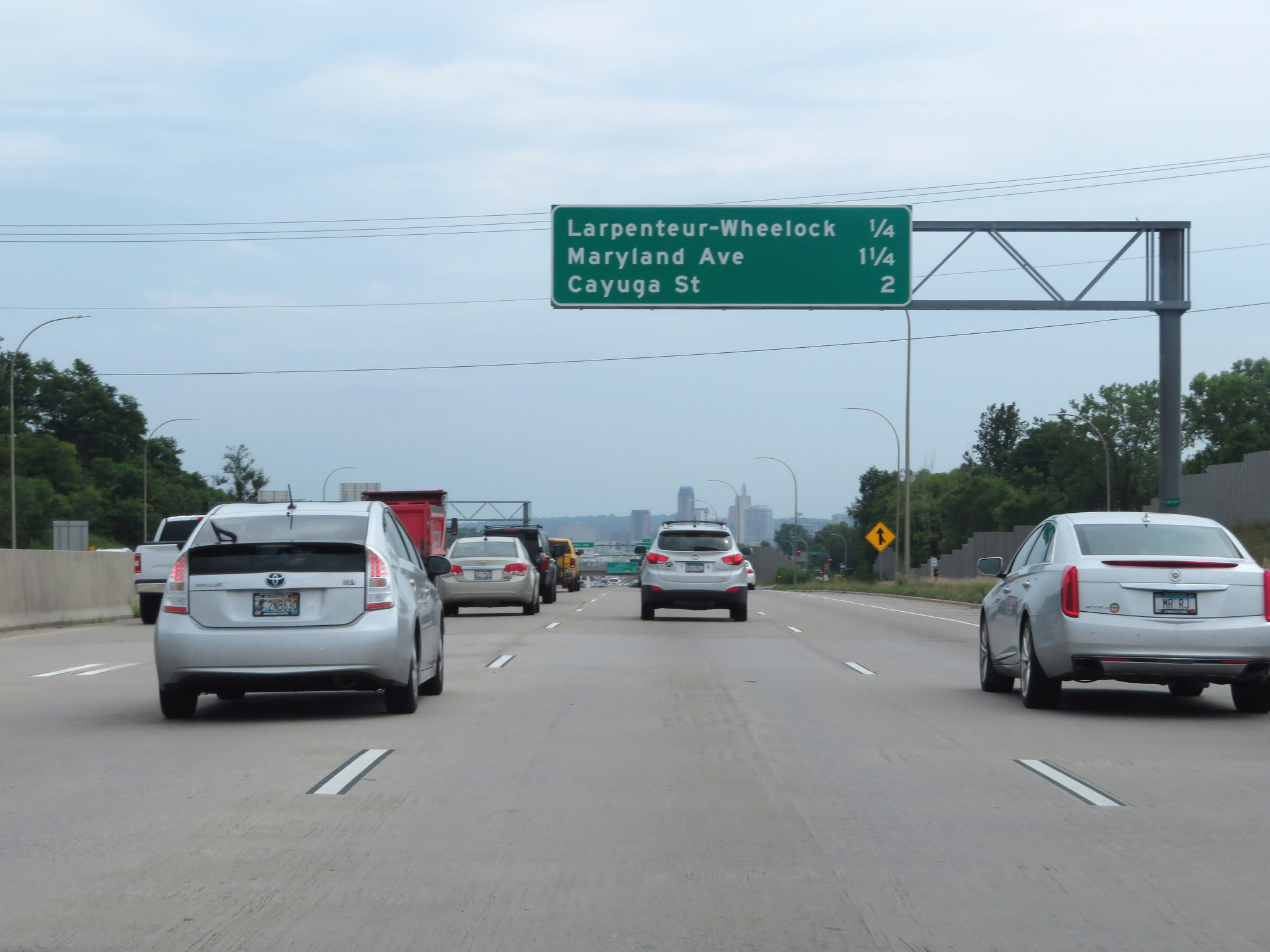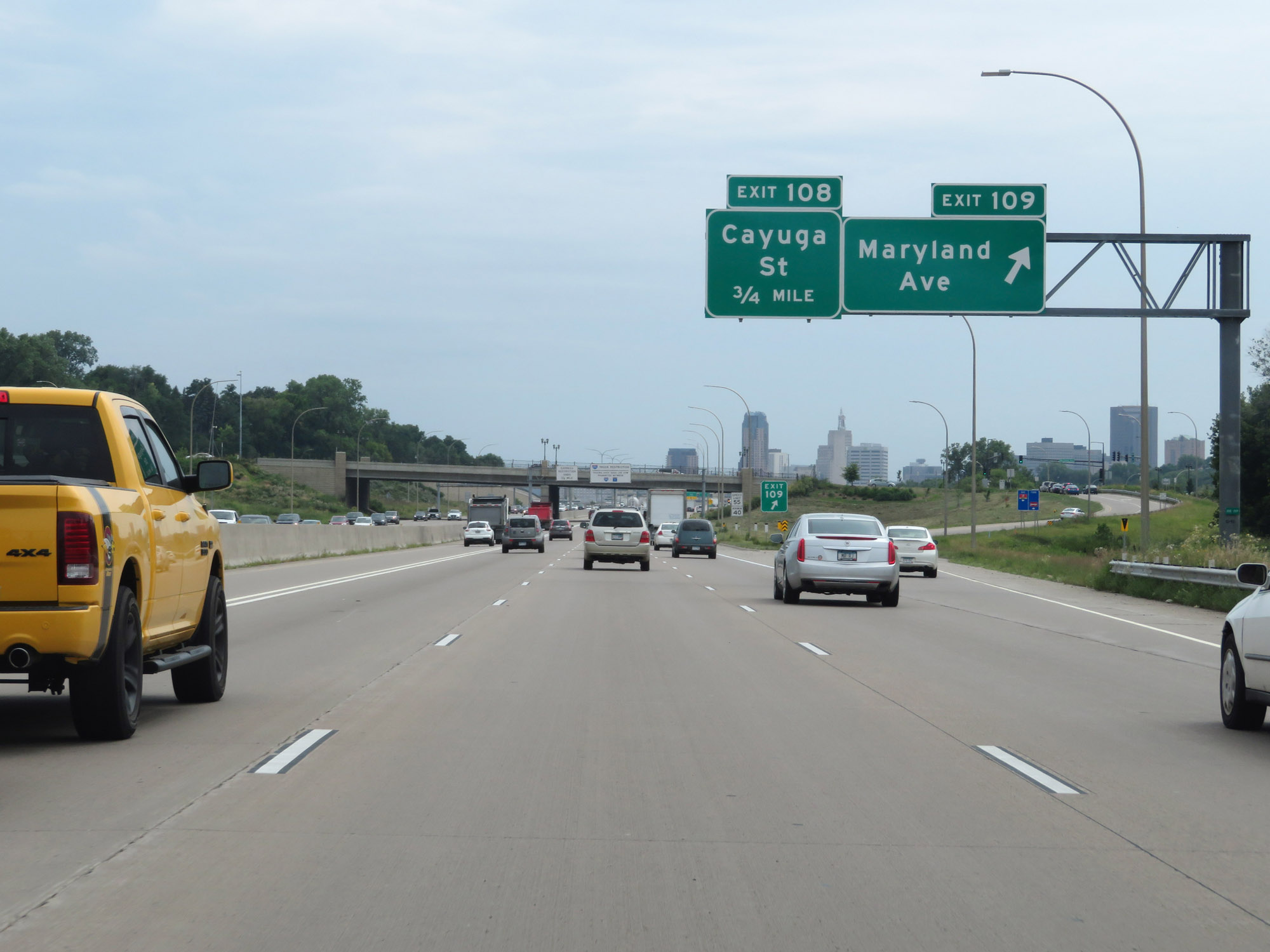 Interstate 35E South at Exit 108: Cayuga St (Photo taken 8/7/20). |
