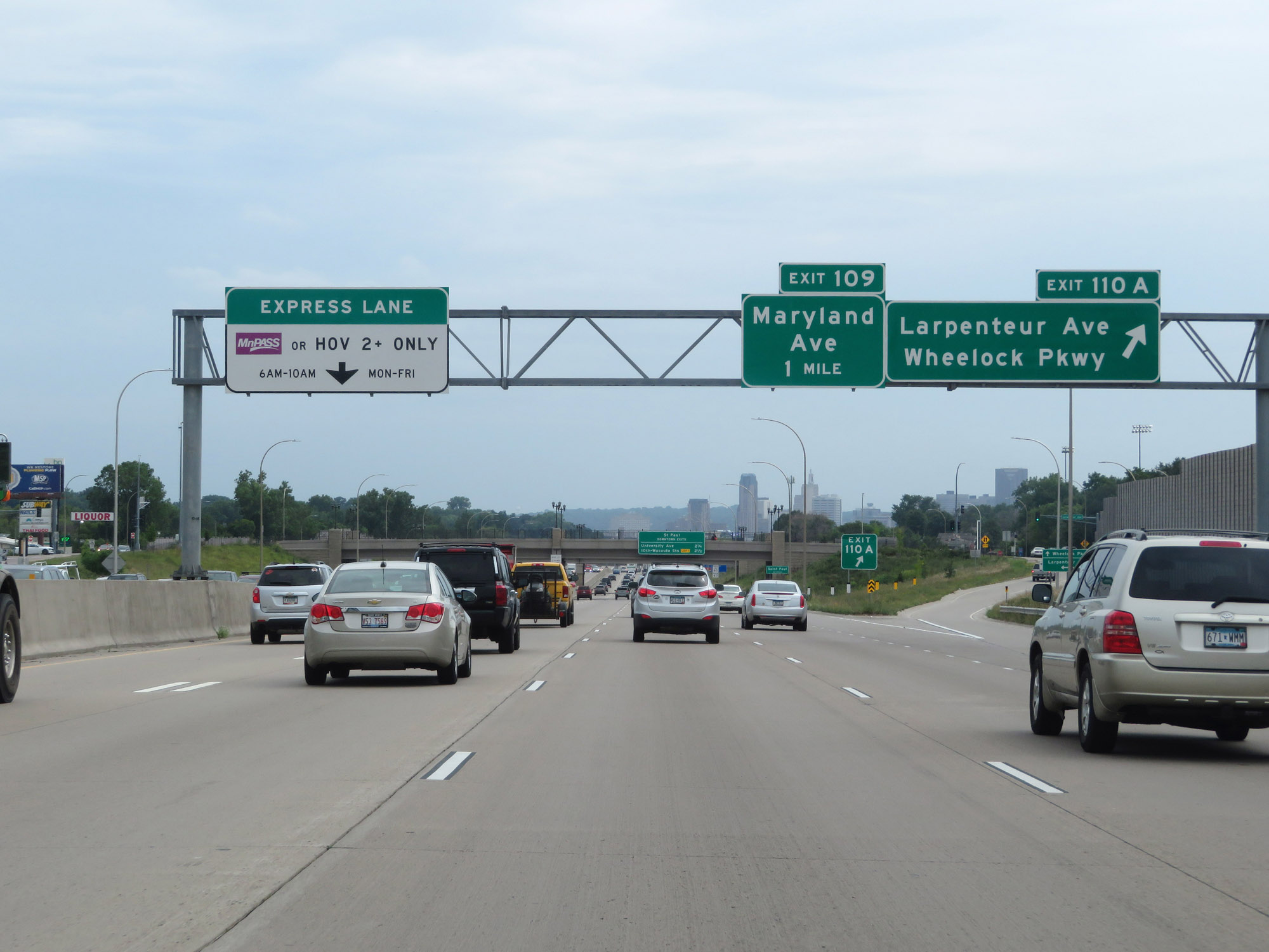 Interstate 35E South at Exit 109: Maryland Ave (Photo taken 8/7/20). |