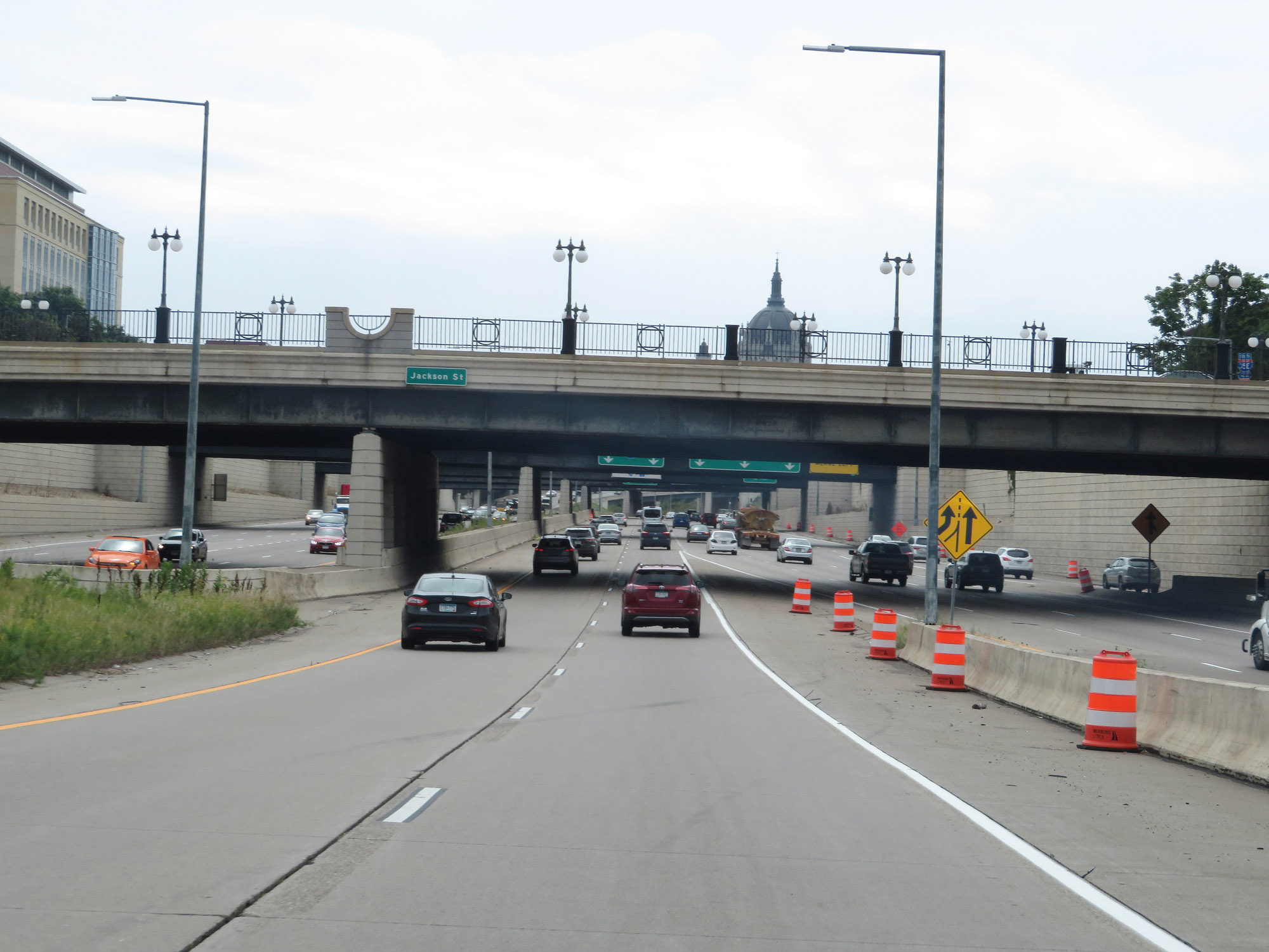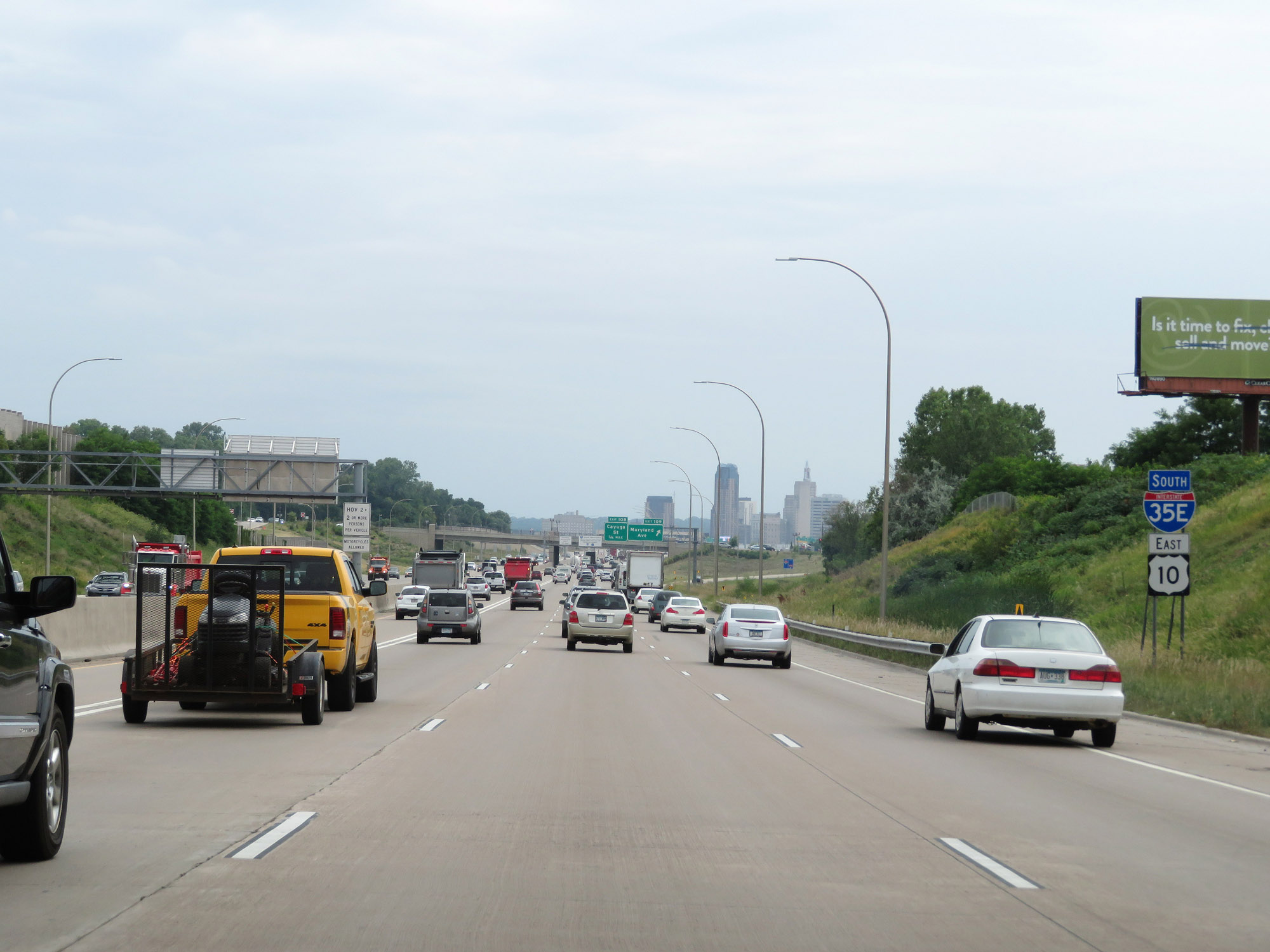 View on Interstate 35E South approaching downtown St. Paul. (Photo taken 8/7/20). |