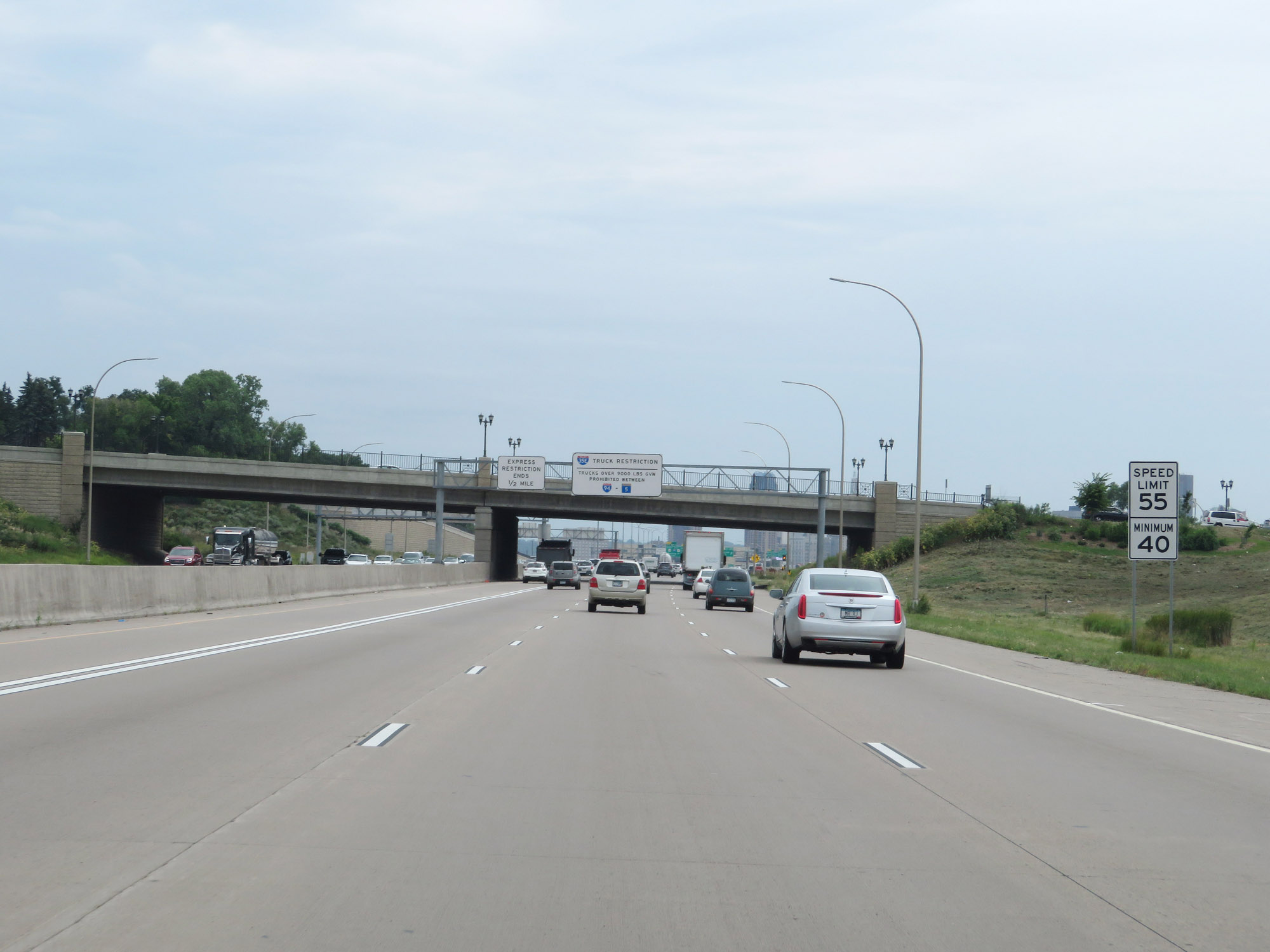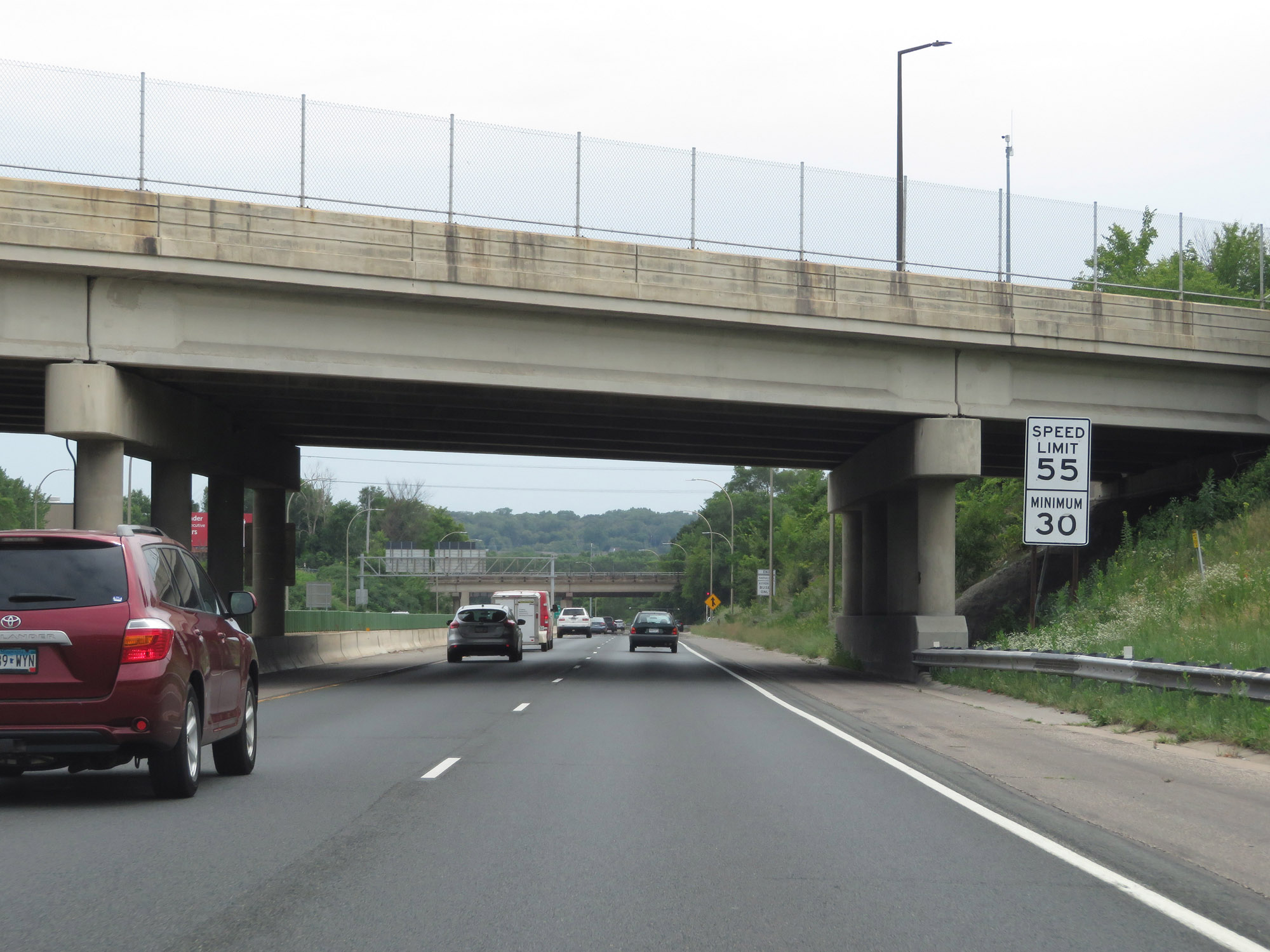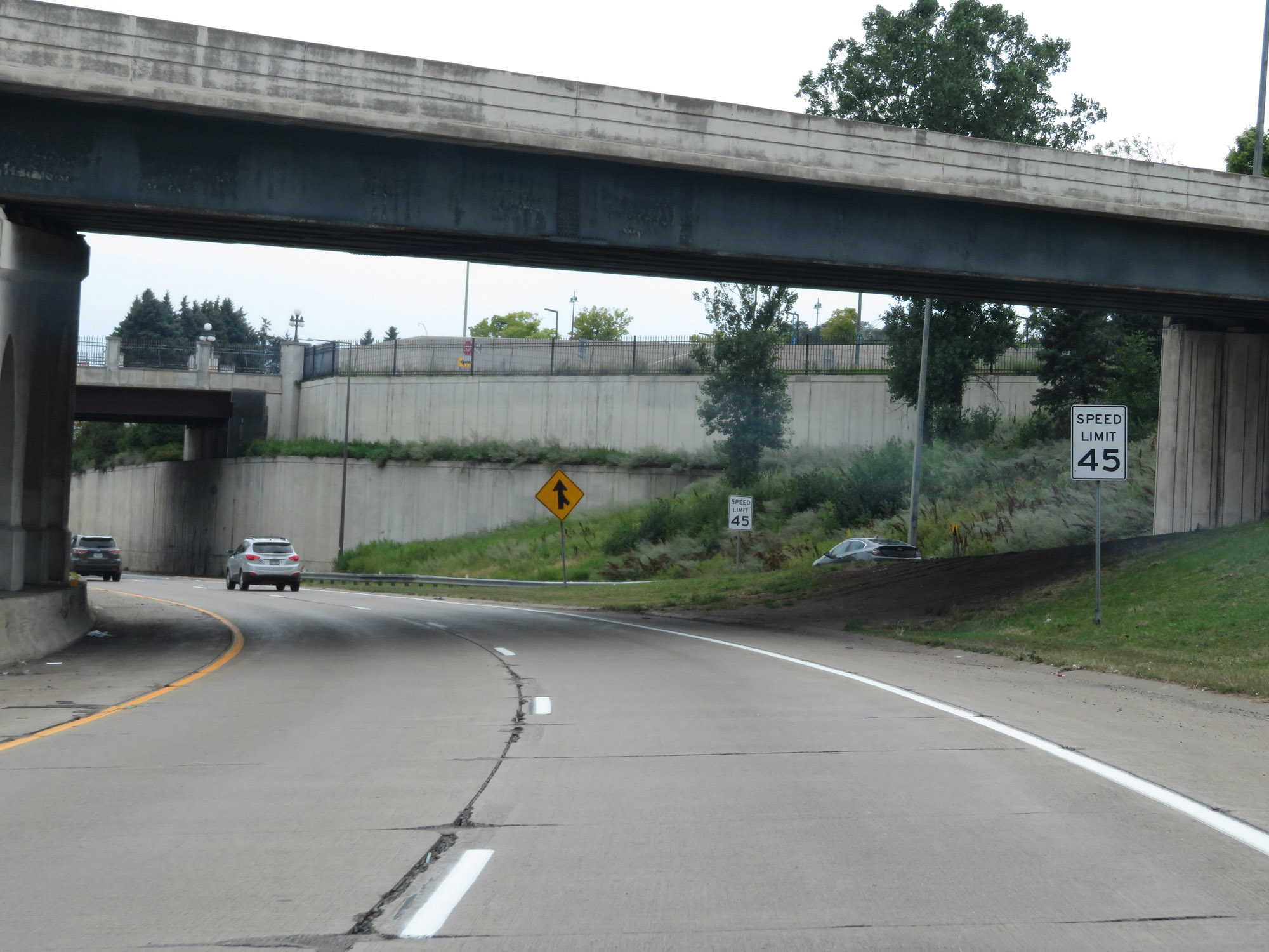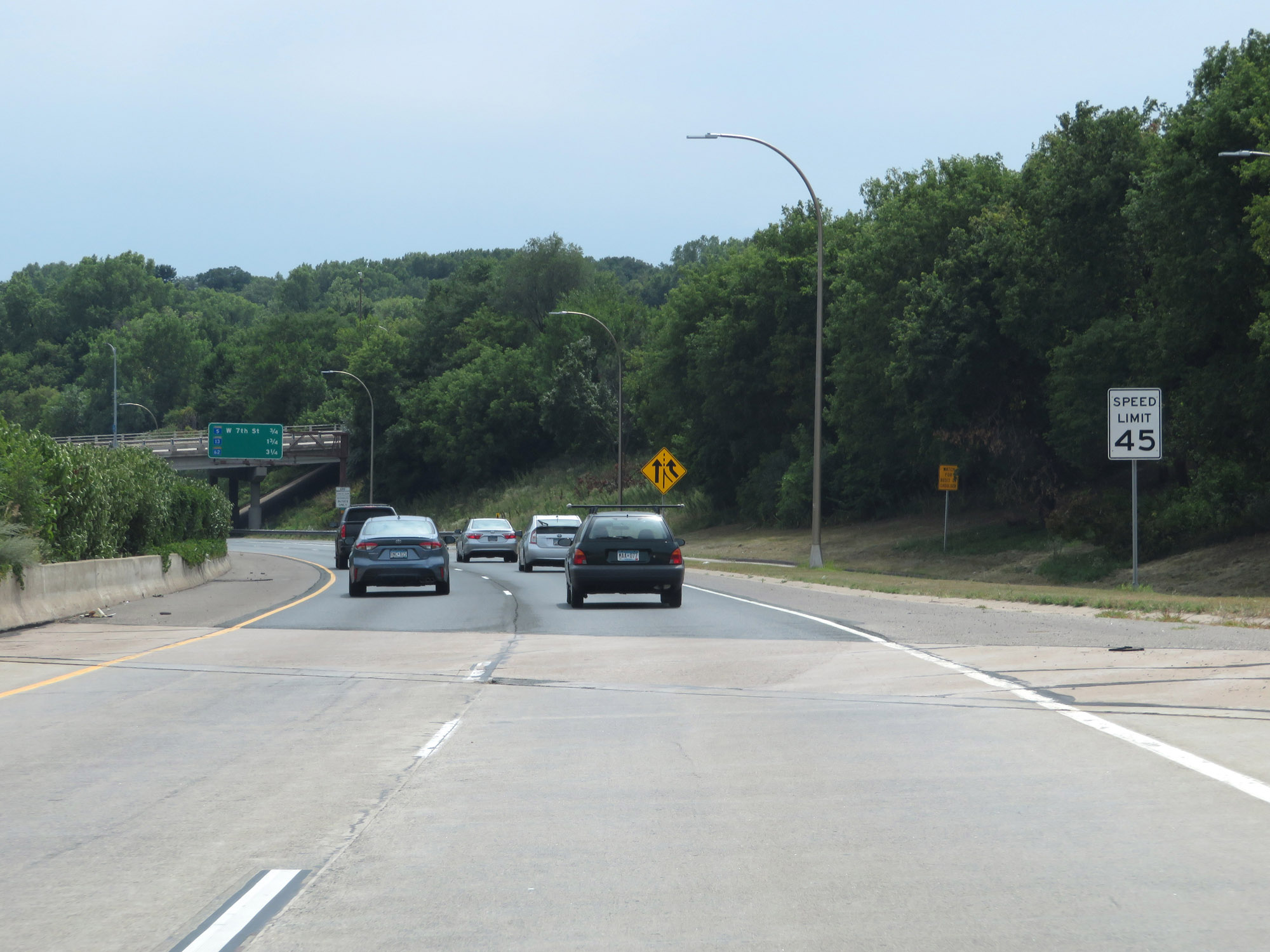 View on Interstate 35E South, as the speed limit remains 45 mph. (Photo taken 8/7/20). |