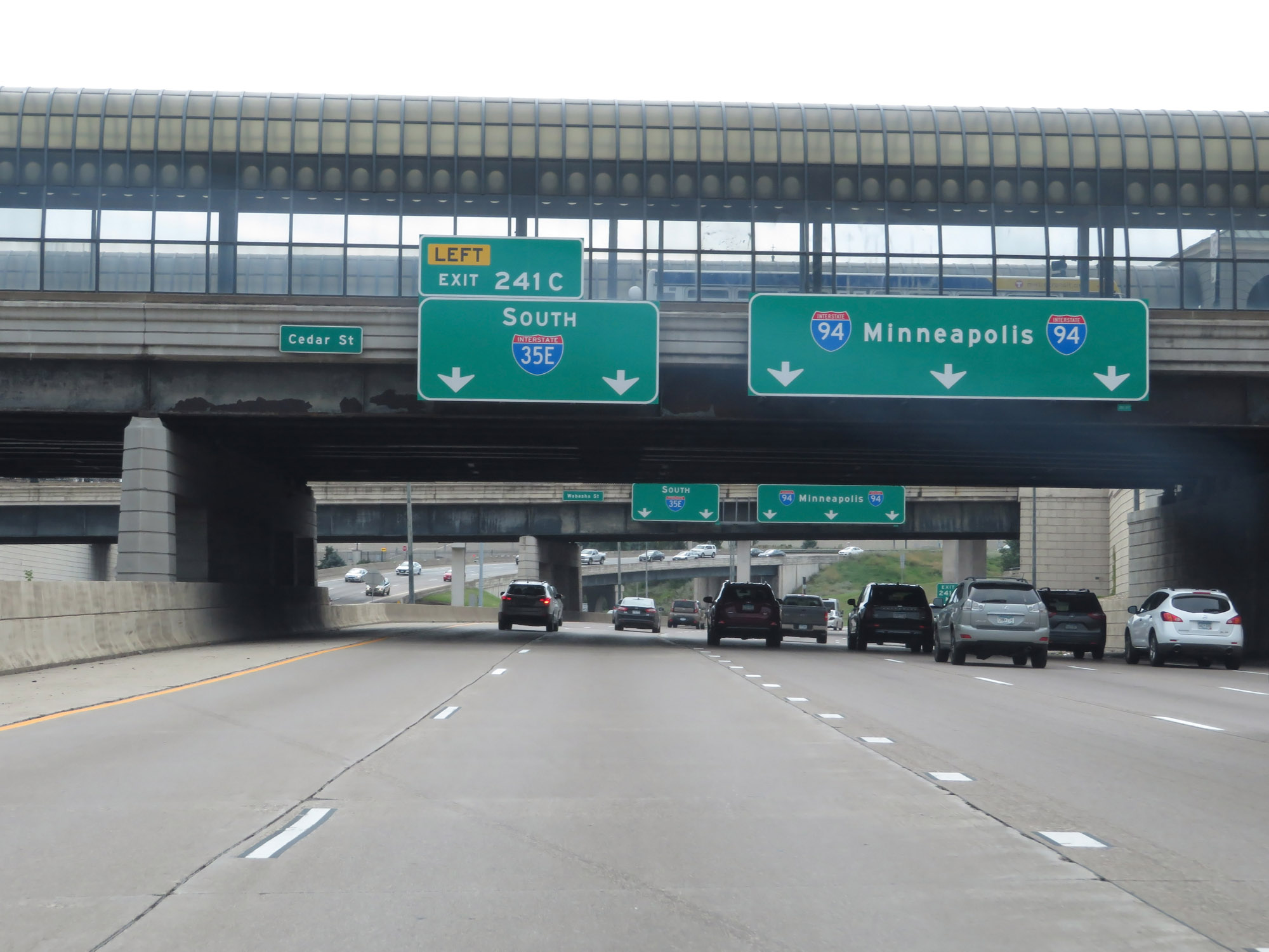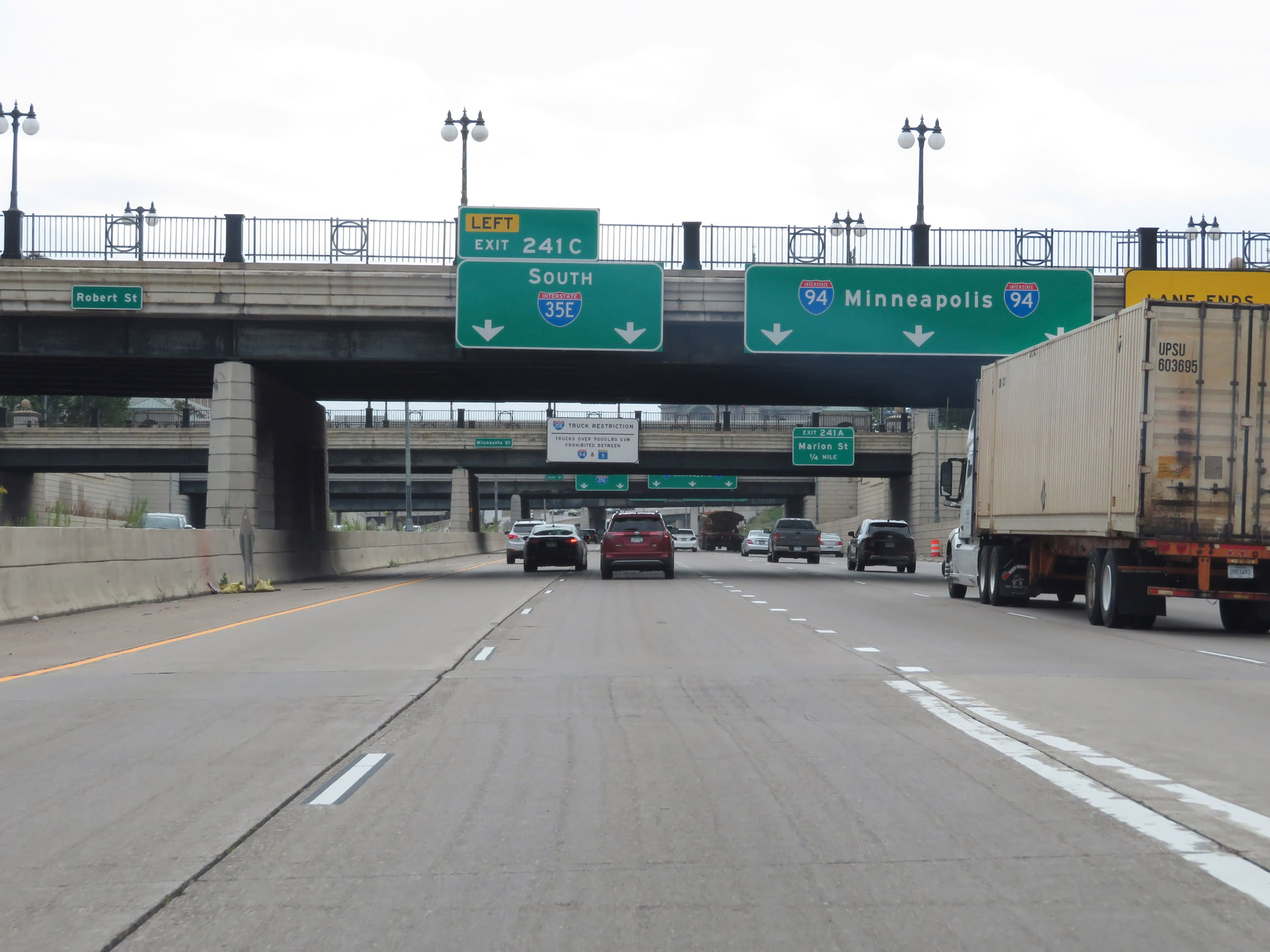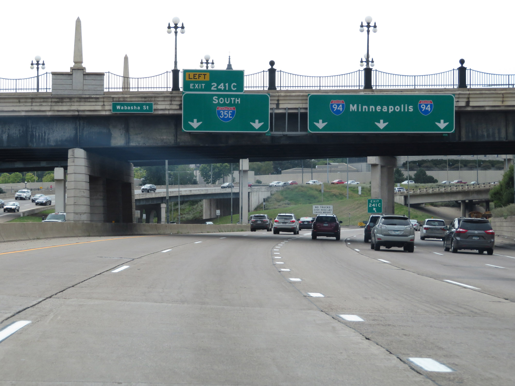 Interstate 35E South / Interstate 94 West at Exit 241C: Interstate 35E South (Photo taken 8/7/20). |