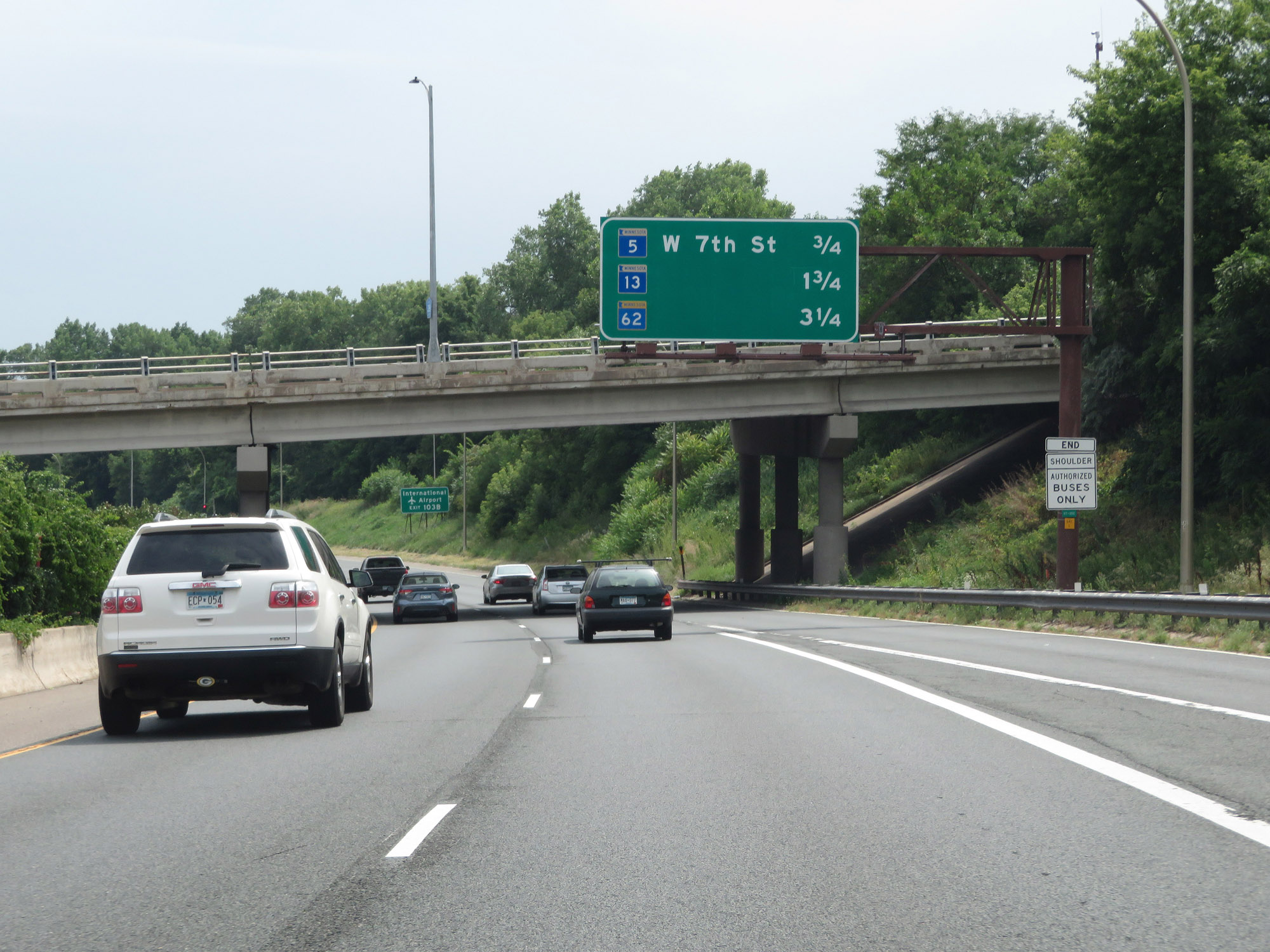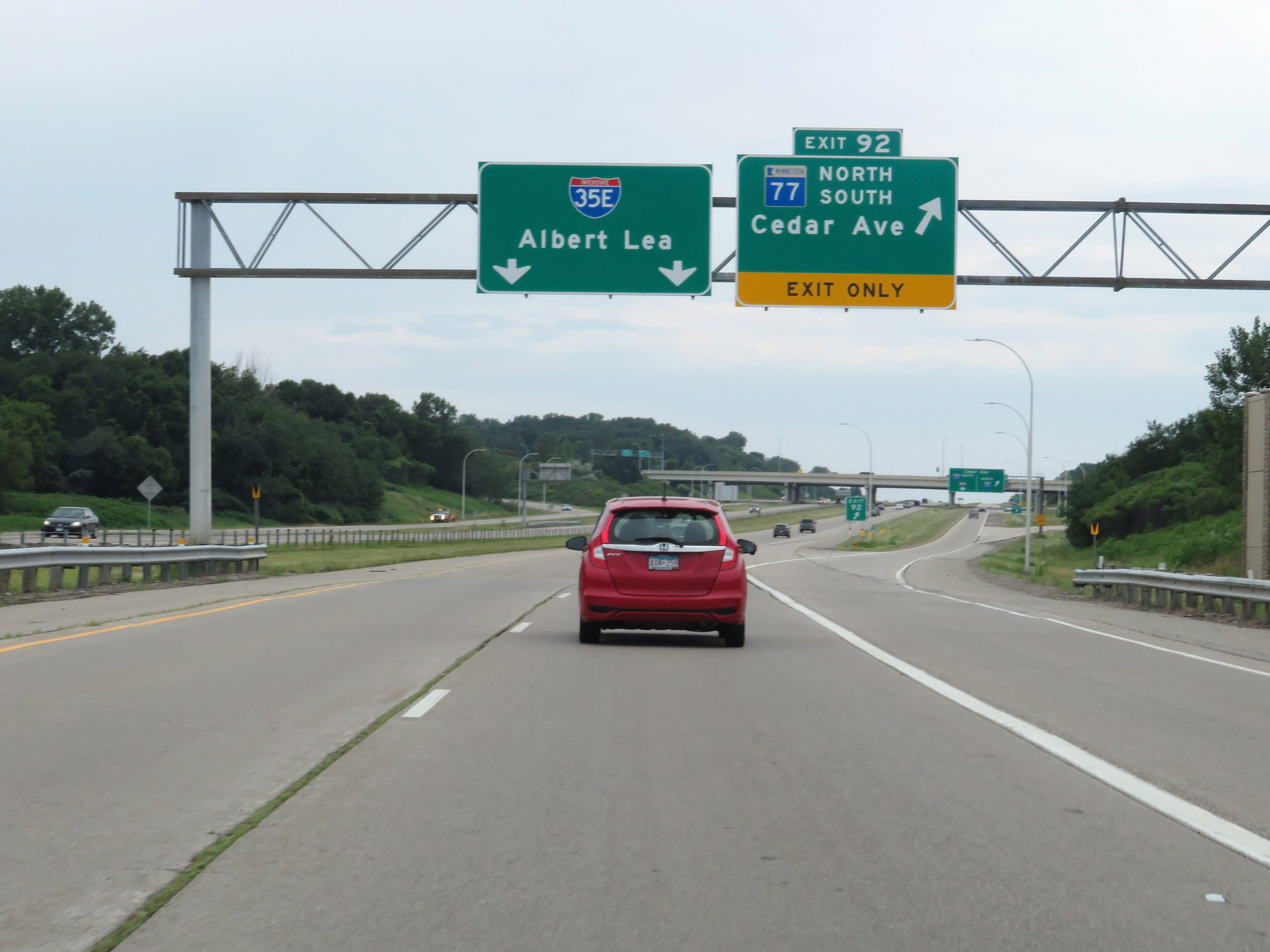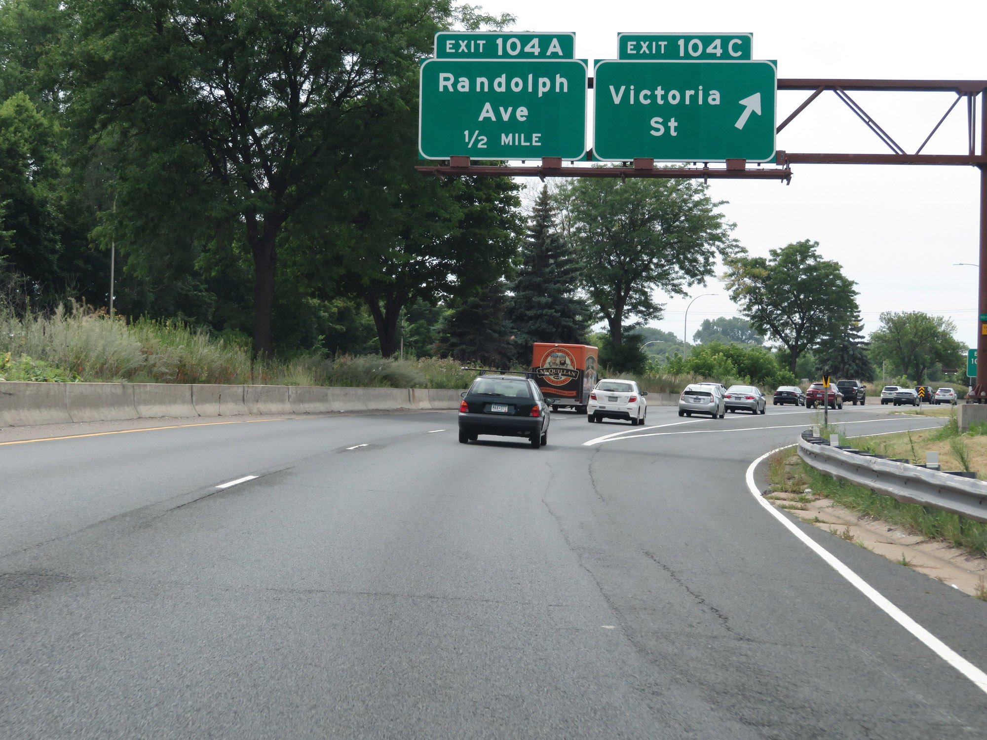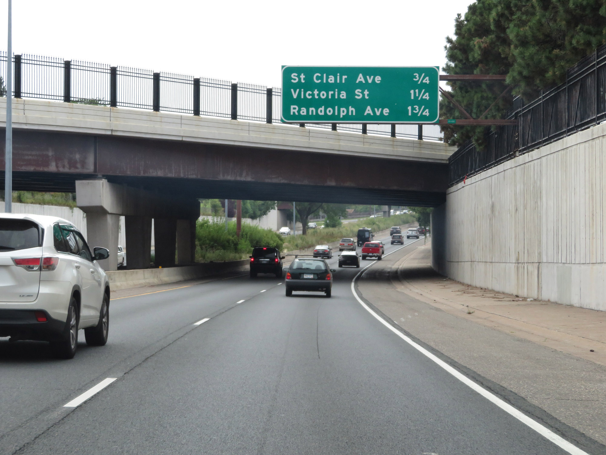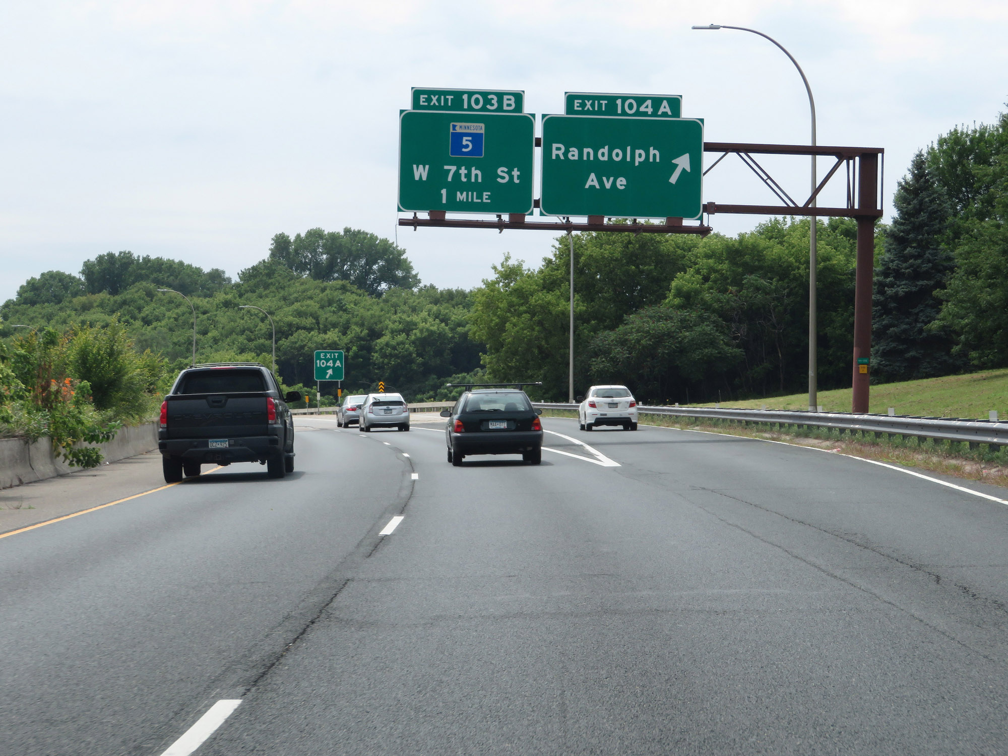 Interstate 35E South at Exit 105: St Clair Ave (Photo taken 8/7/20). |