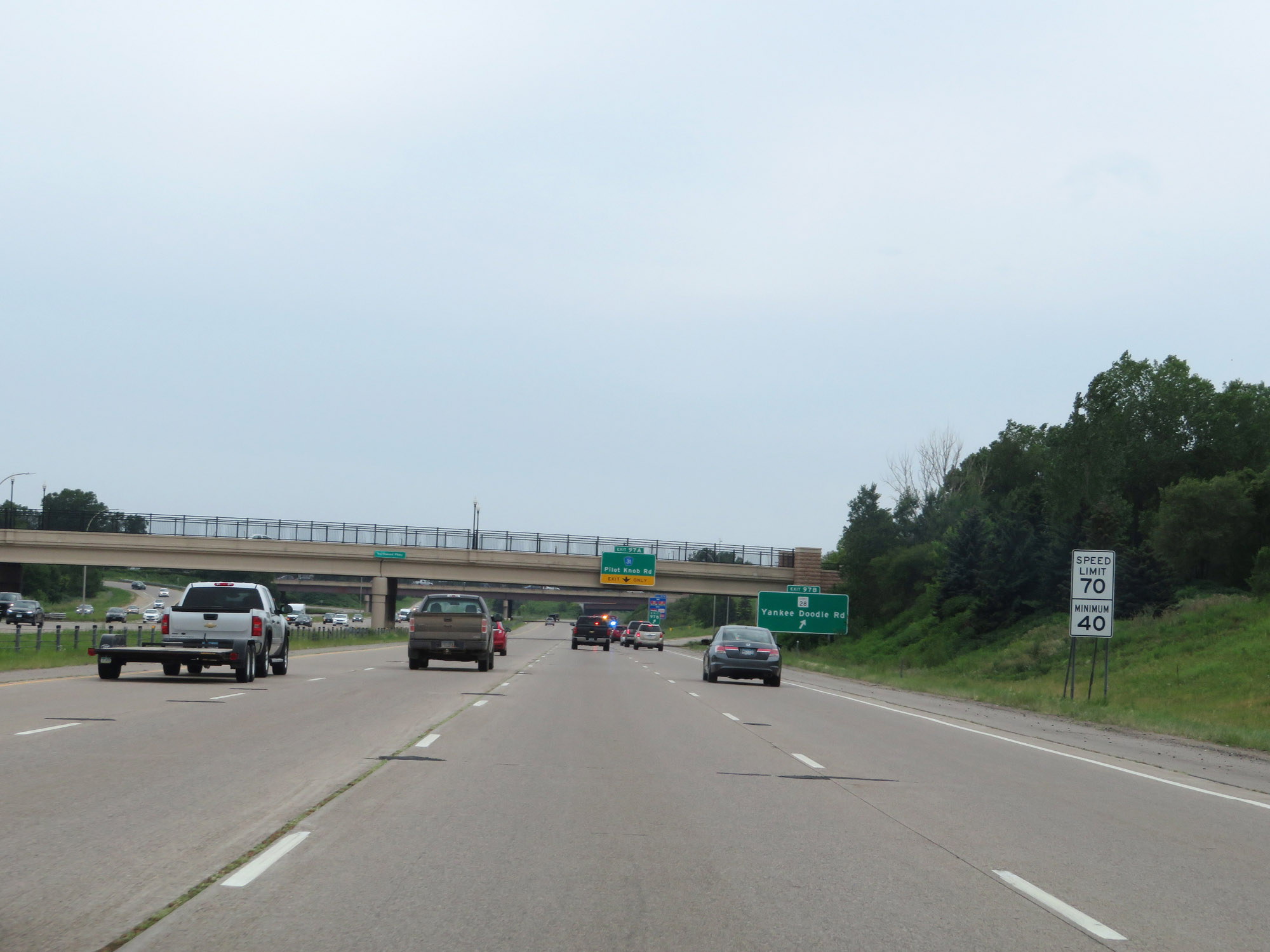 The speed limits on Interstate 35E South start out at 70 mph maximum and 40 mph minimum. (Photo taken 8/7/20). |