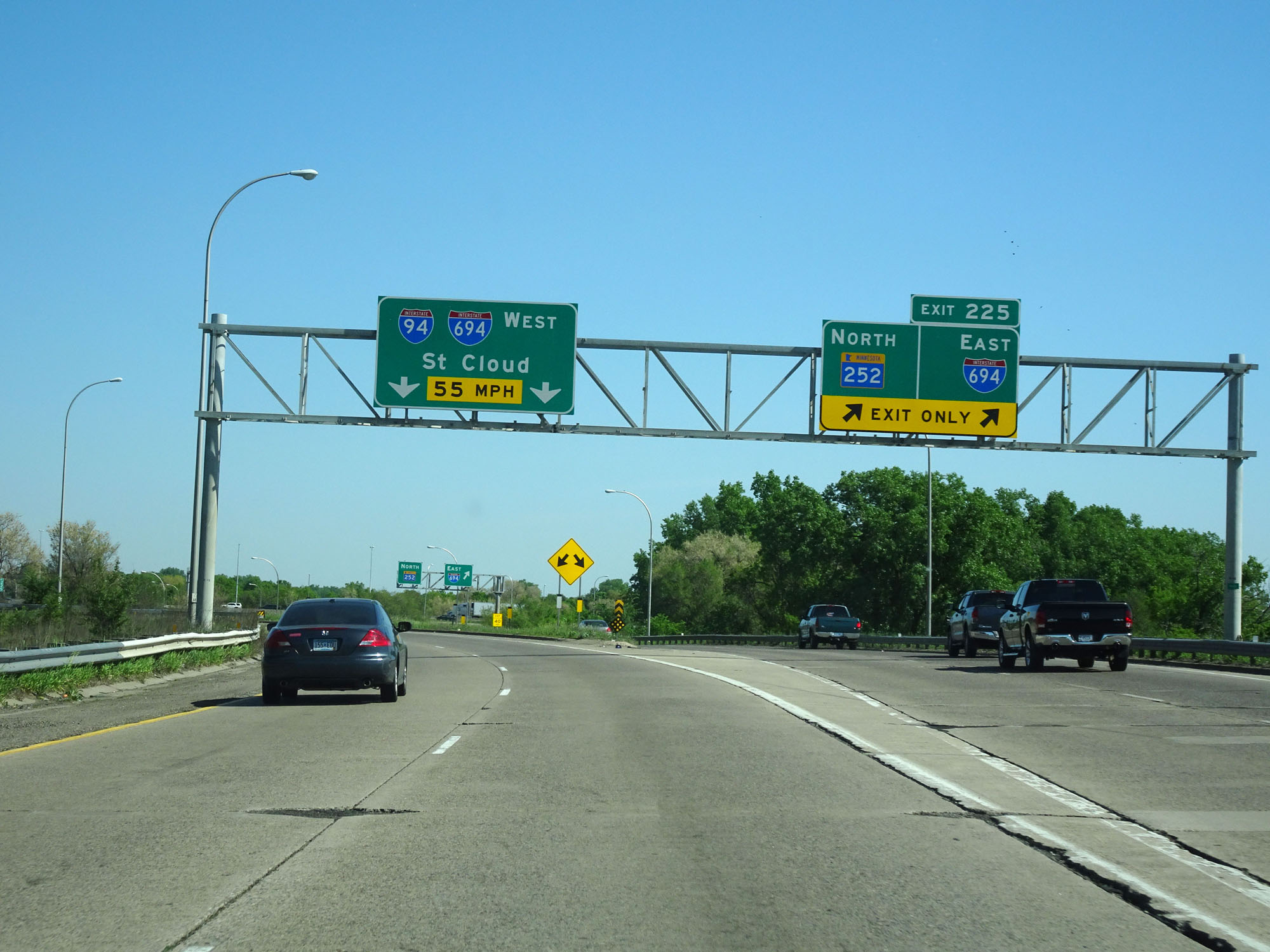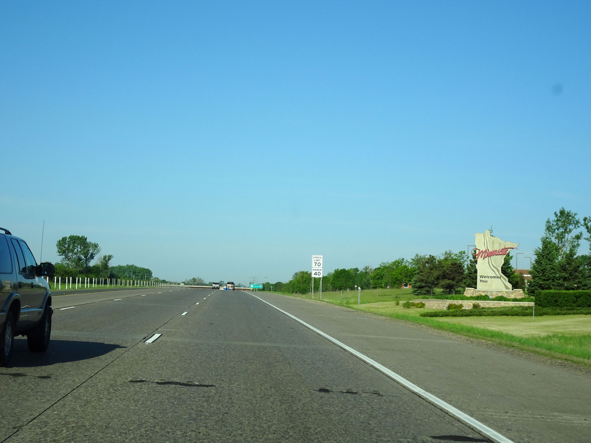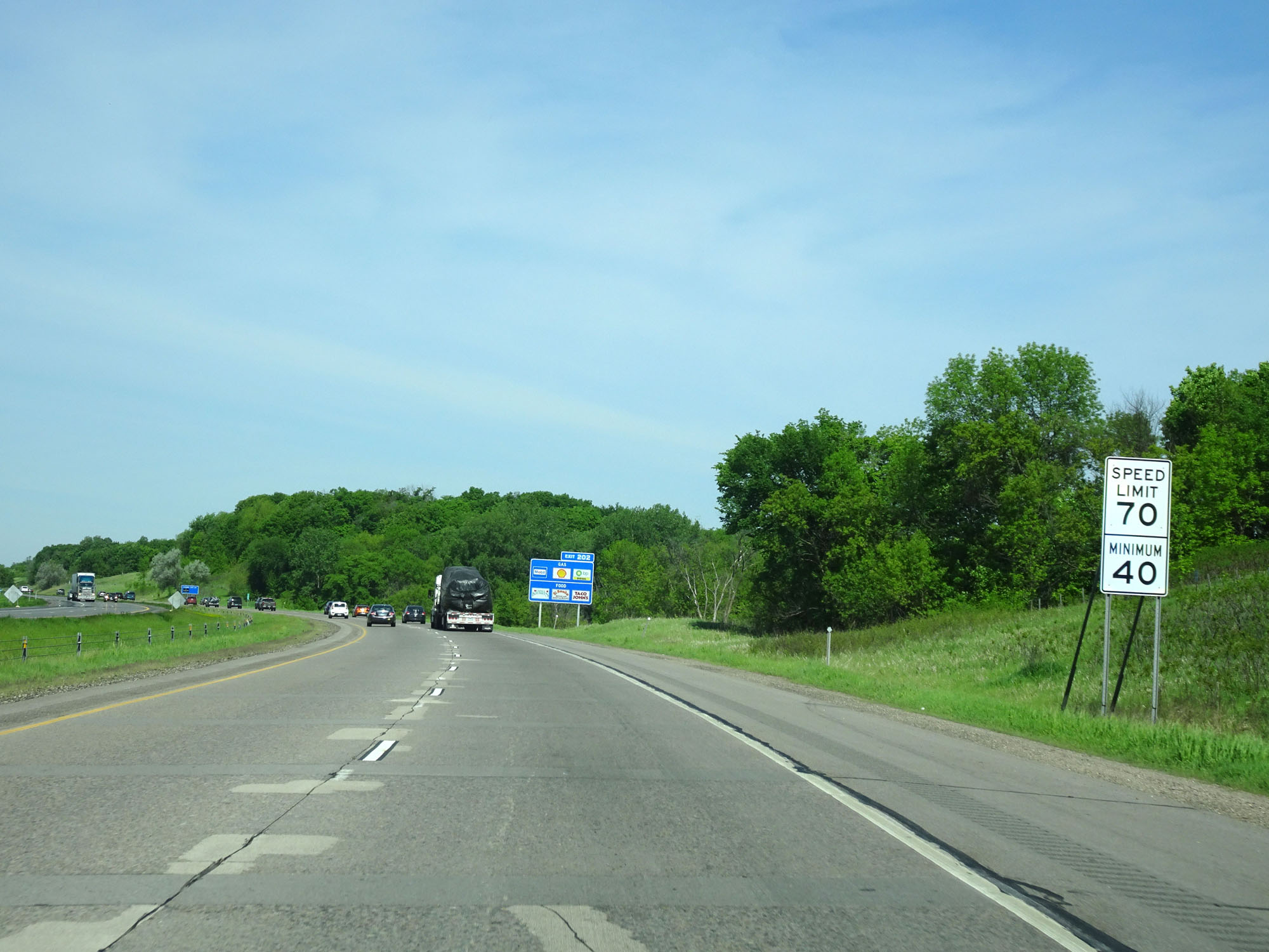 The speed limit remains 55 mph for the rest of Interstate 94's duration in Minnesota. (Photo taken 5/22/16). |