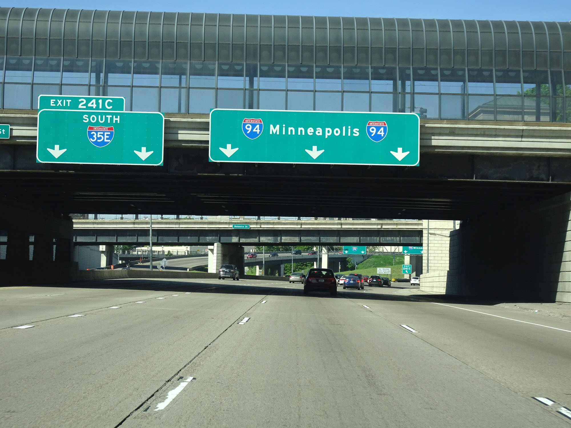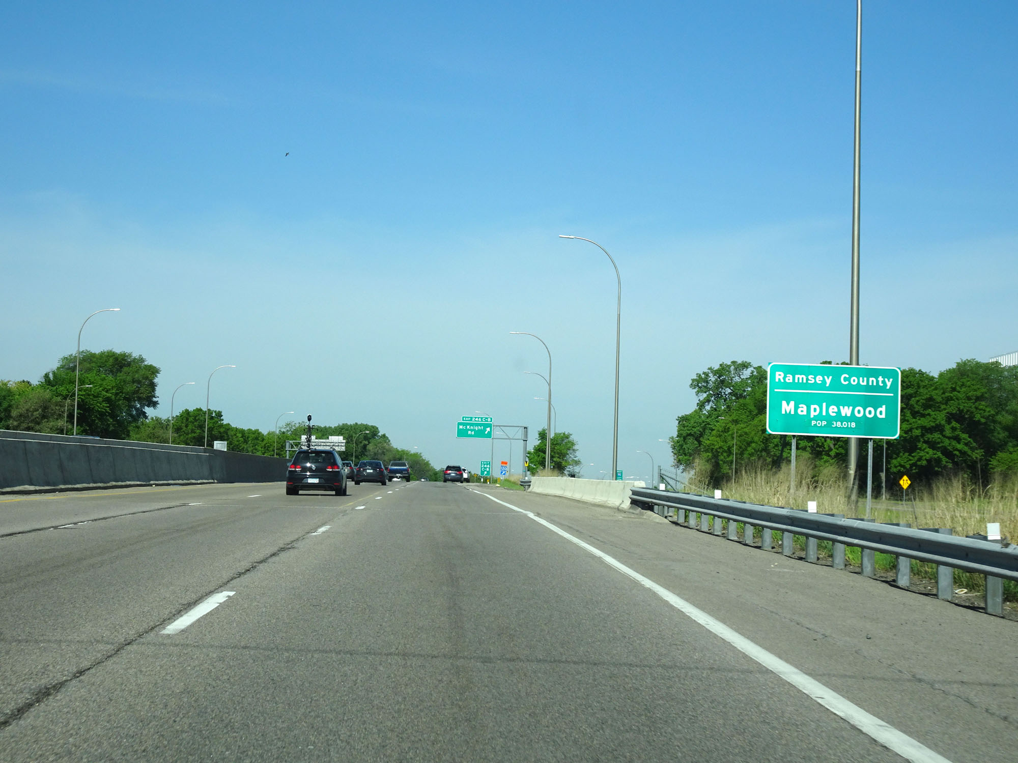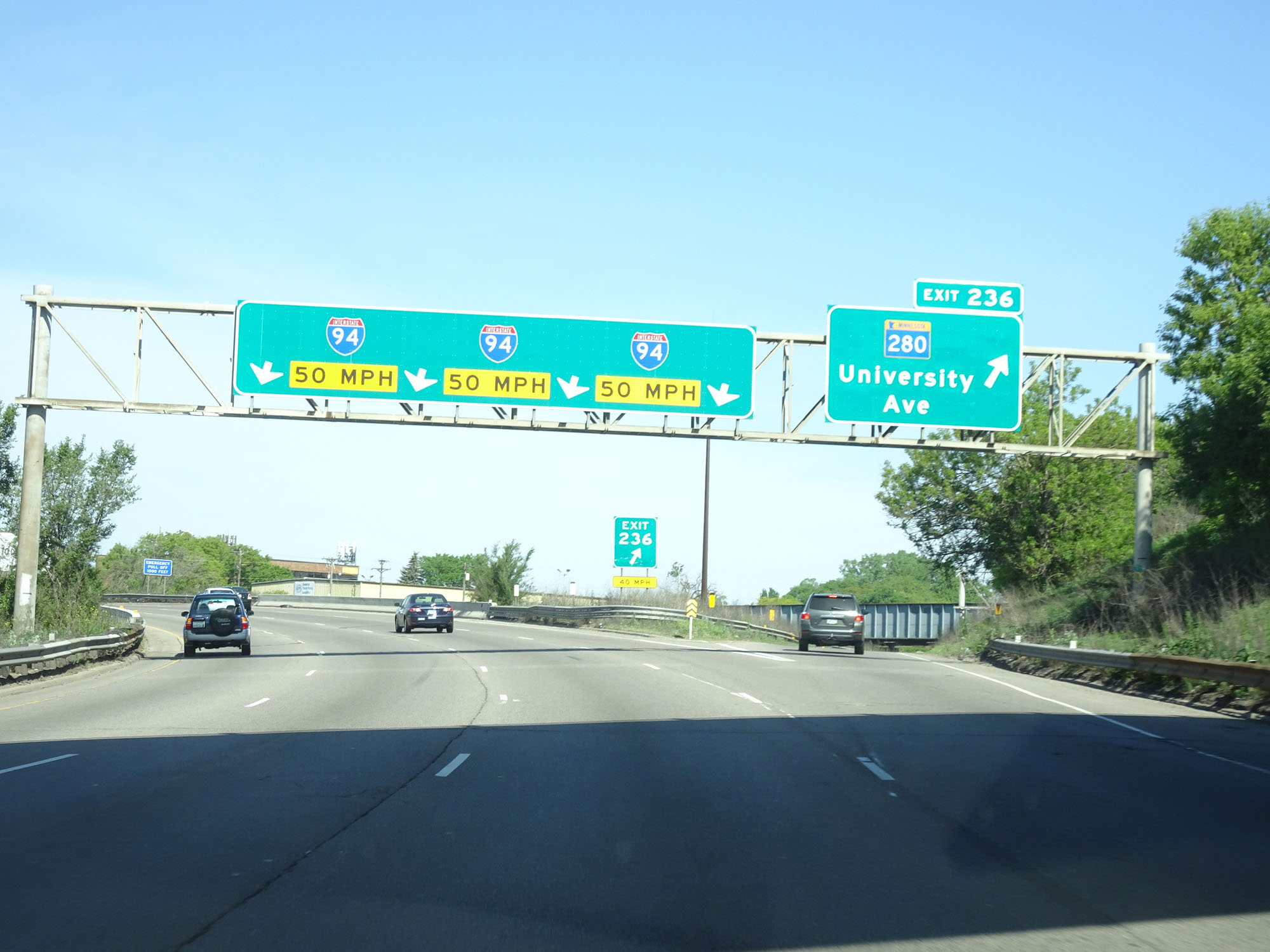 The speed limit remains 55 mph for the rest of Interstate 94's duration in Minnesota. (Photo taken 5/22/16). |