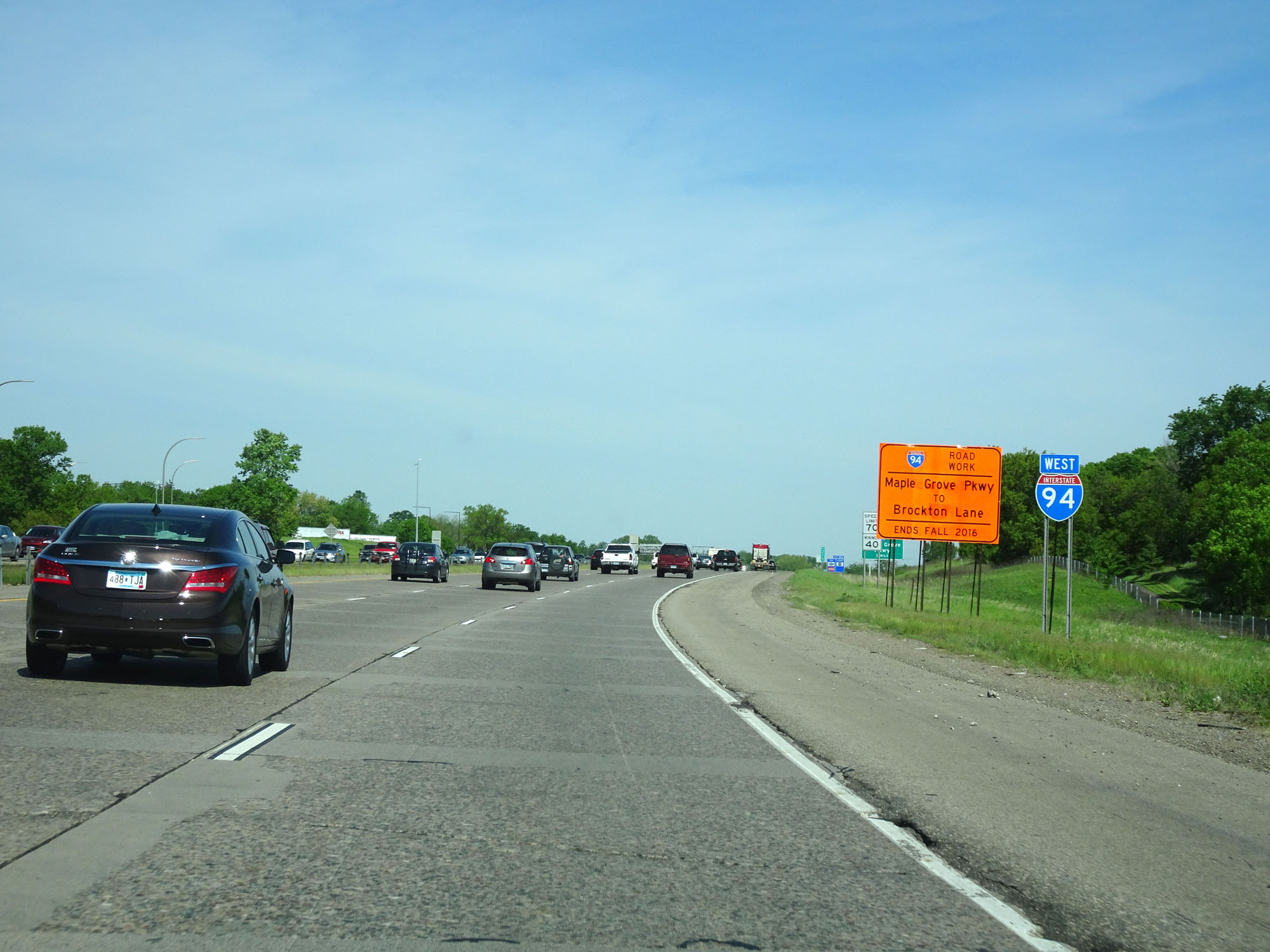 Interstate 94 West at mile marker 14. (Photo taken 5/22/16). |