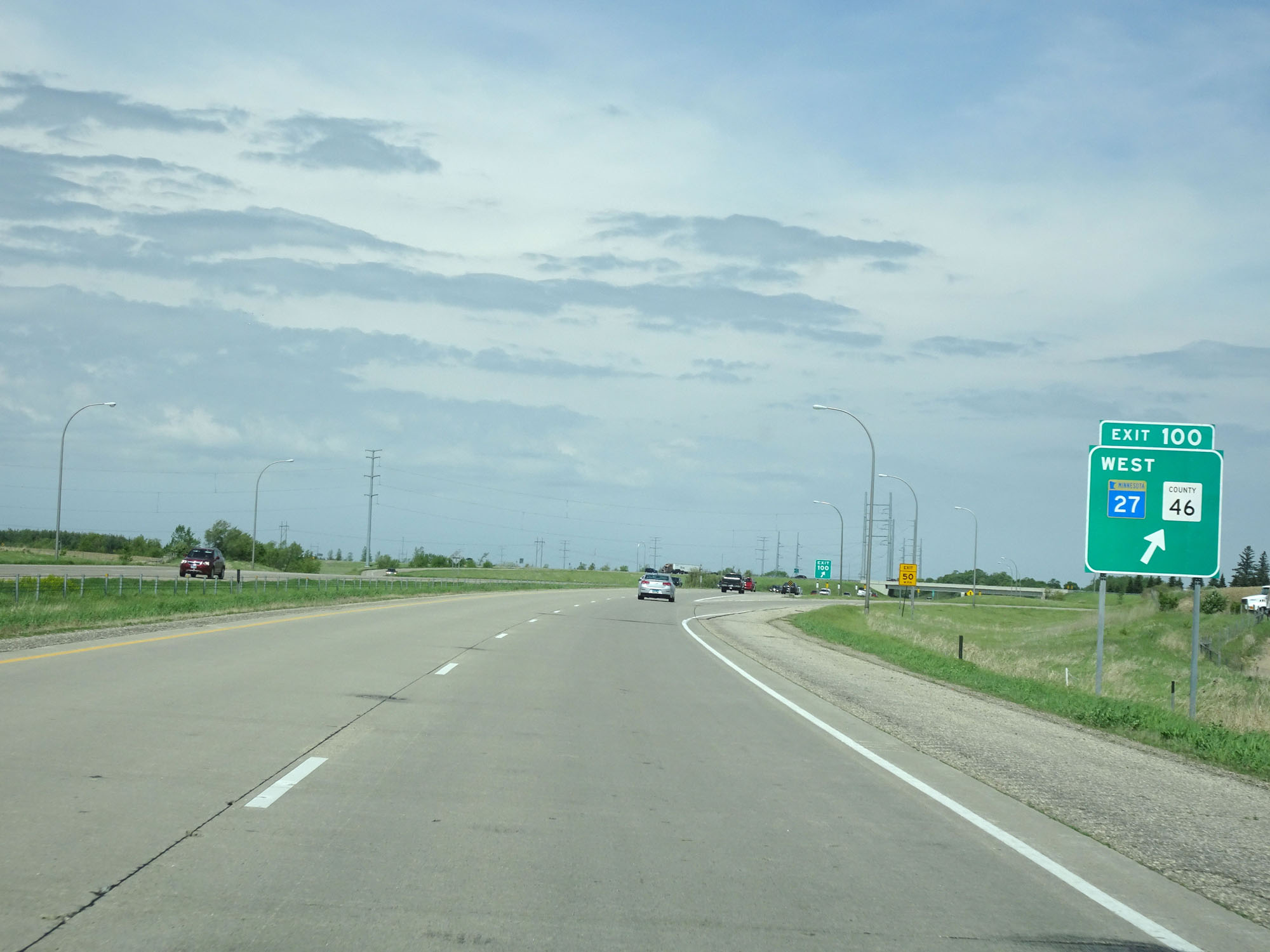 Interstate 94 West at Exit 100: MN 27 West / CR 46 (Photo taken 5/22/16). |