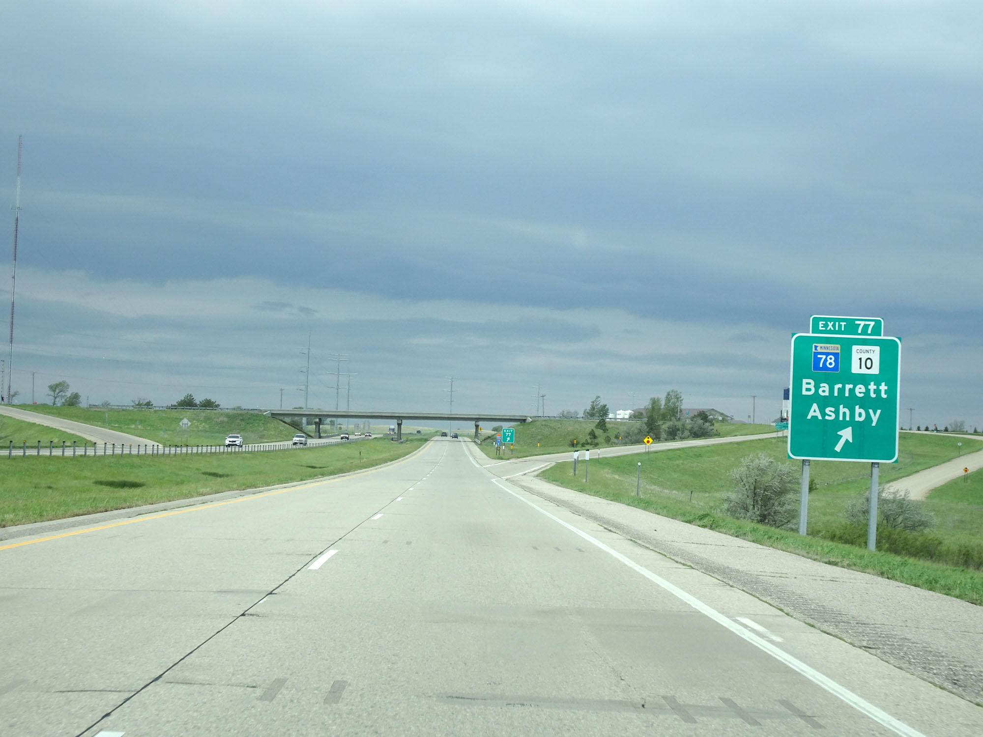 Interstate 94 West at Exit 77: MN 78 / CR 10 - Barrett / Ashby (Photo taken 5/22/16). |