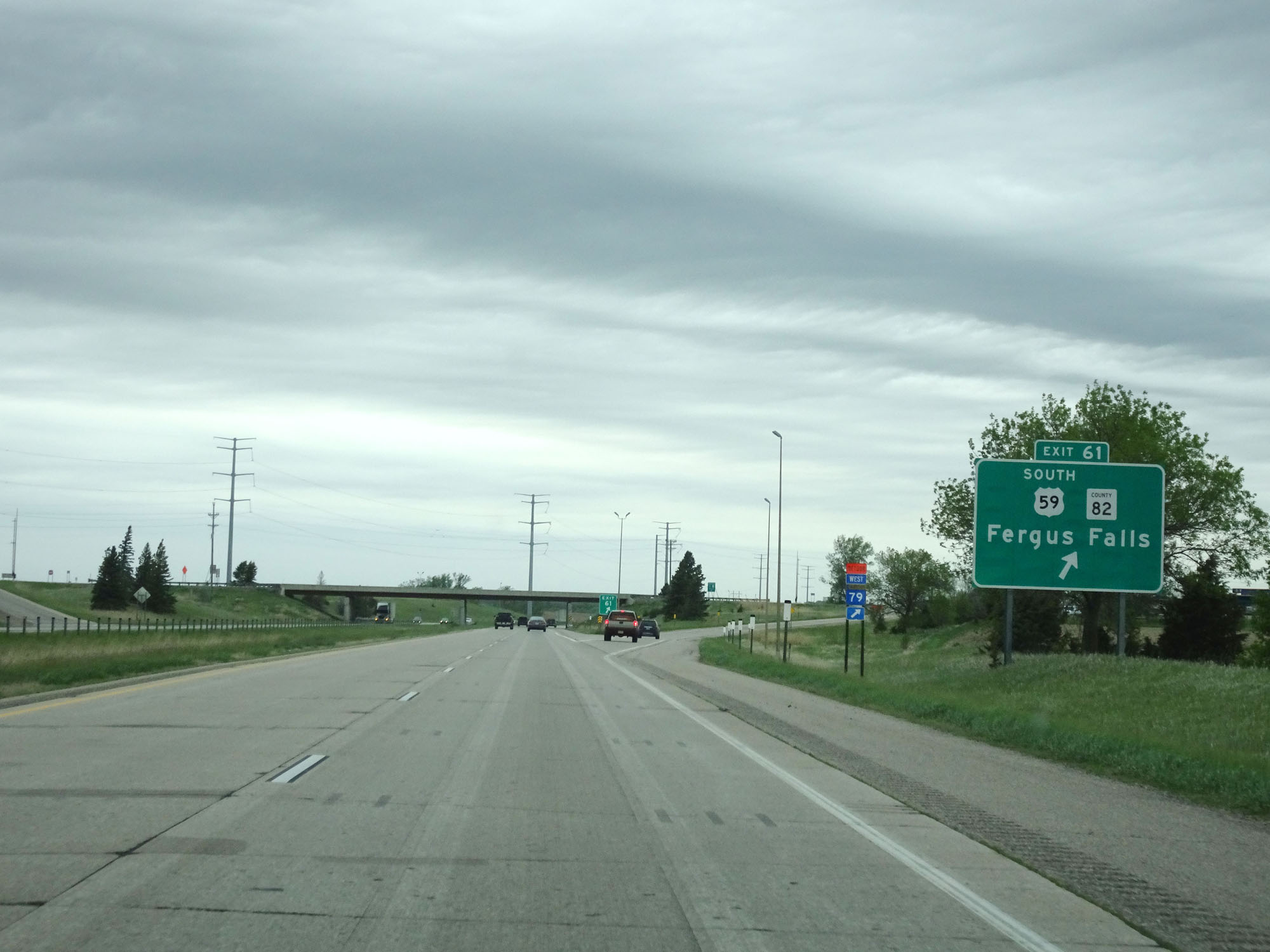 Interstate 94 West at Exit 61: US 59 South / CR 82 - Fergus Falls (Photo taken 5/22/16). |