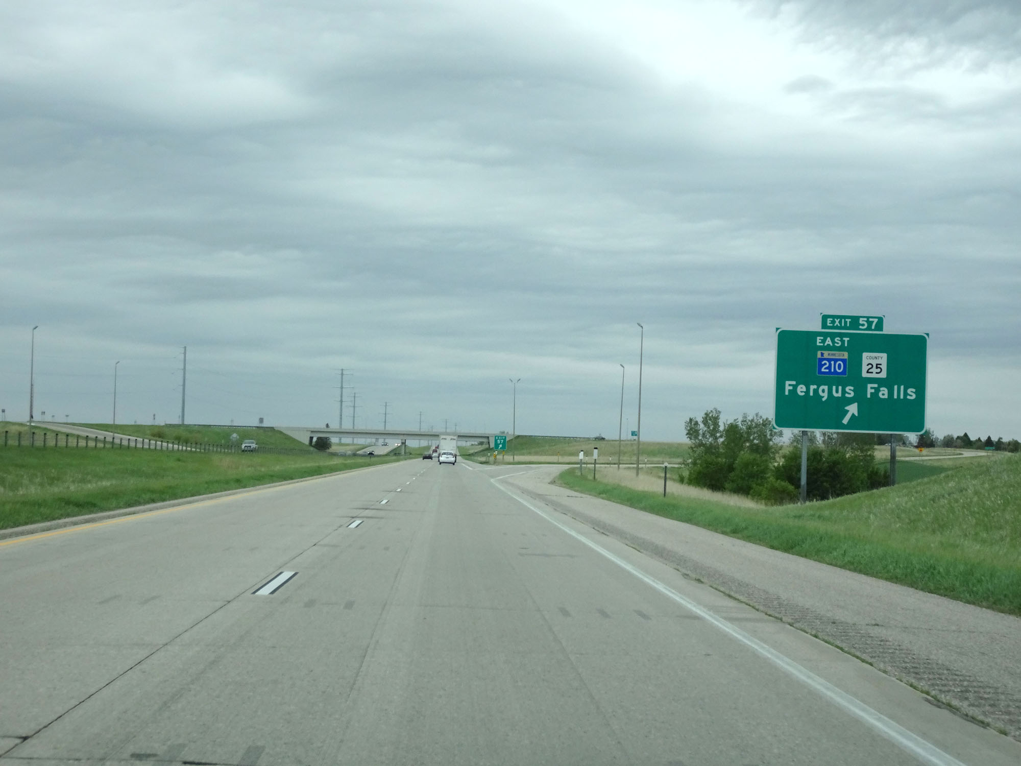 Interstate 94 West at Exit 57: MN 210 East / CR 25 - Fergus Falls (Photo taken 5/22/16). |