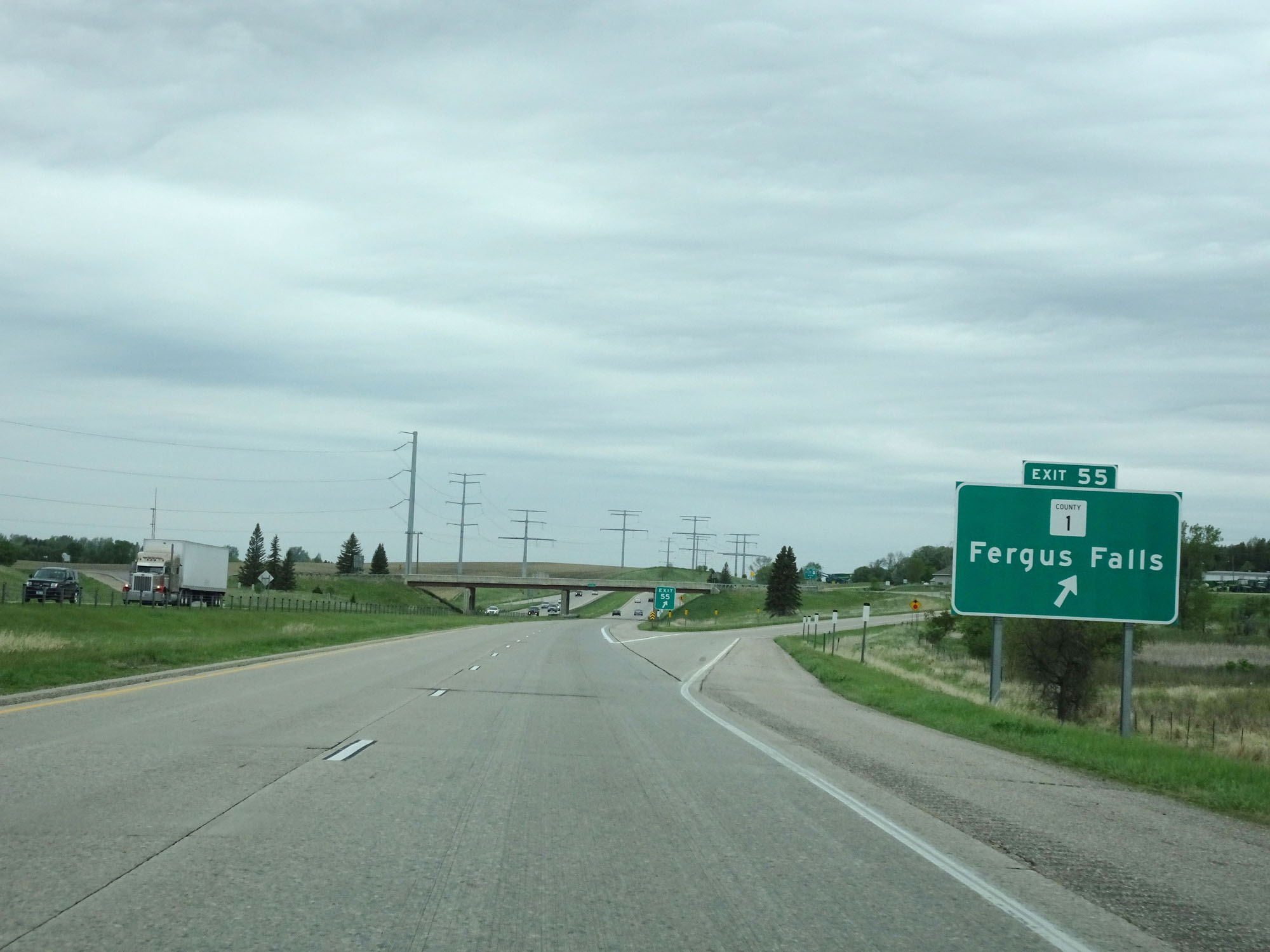 Interstate 94 West at Exit 55: CR 1 - Fergus Falls (Photo taken 5/22/16). |