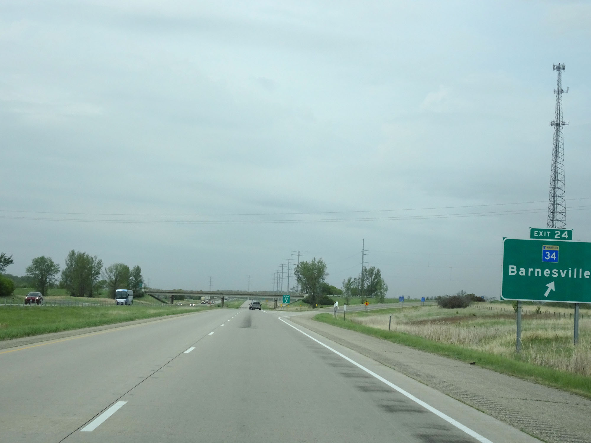 Interstate 94 West at Exit 24: MN 34 - Barnesville (Photo taken 5/22/16). |