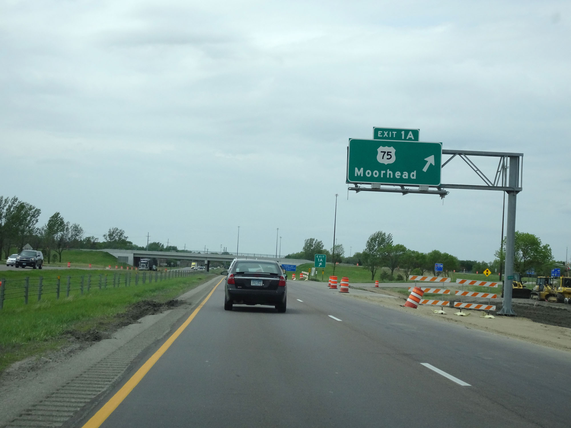 Interstate 94 West at Exit 1A: US 75 - Moorhead (Photo taken 5/22/16). |