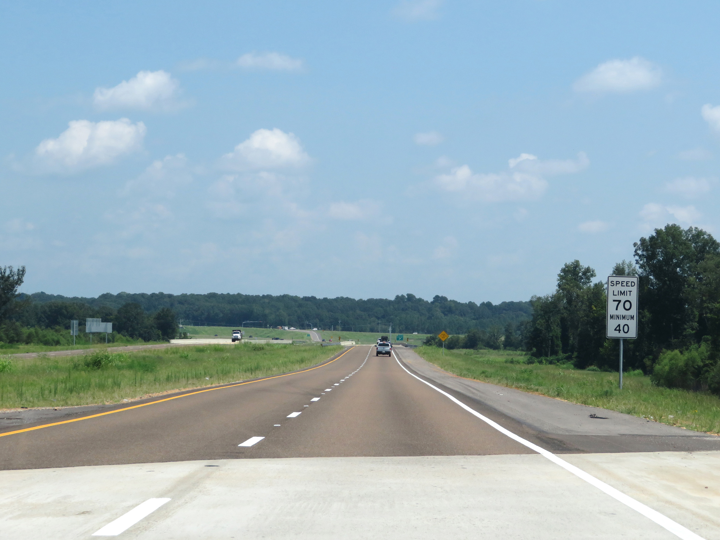 |  | The speed limits on Interstate 269 North start out at 70 mph maximum and 40 mph minimum. These are the standard speed limits on most rural Interstate highways in Mississippi. (Photo taken 8/12/19). |