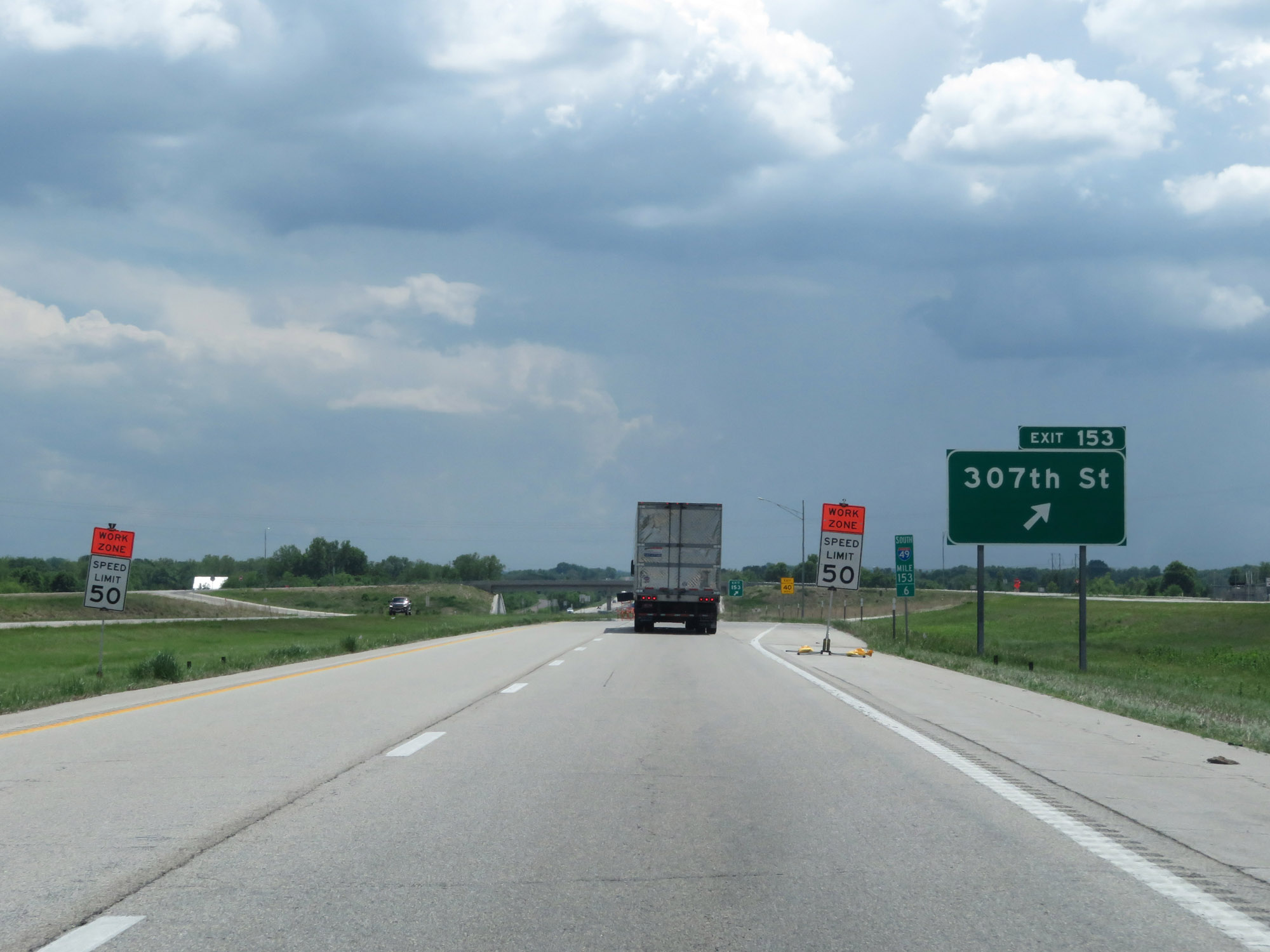 Interstate 49 South at Exit 30: Iris Road (Photo taken 5/17/18). |