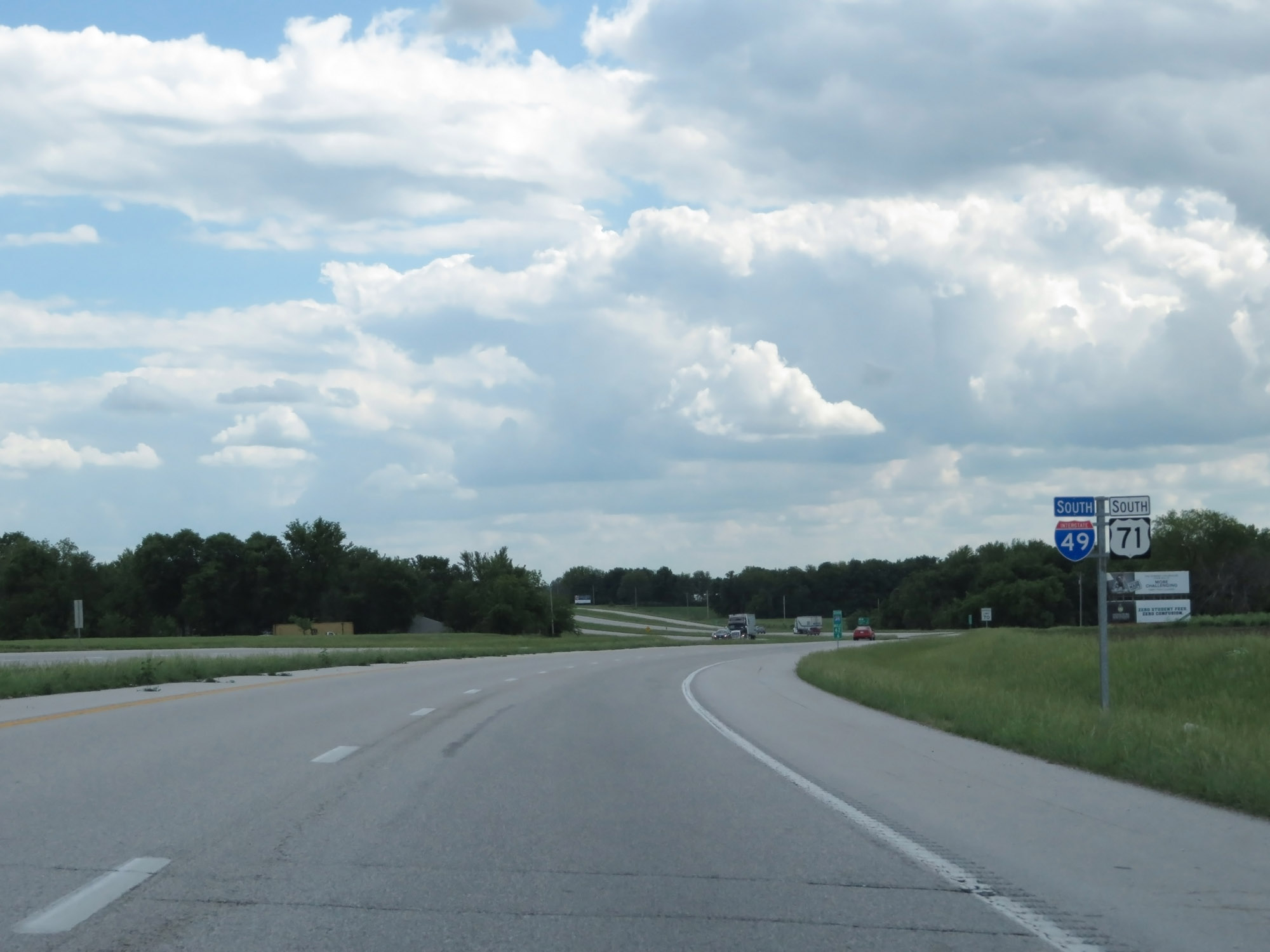 Interstate 49 South / US 71 South reassurance shields. (Photo taken 5/17/18). |