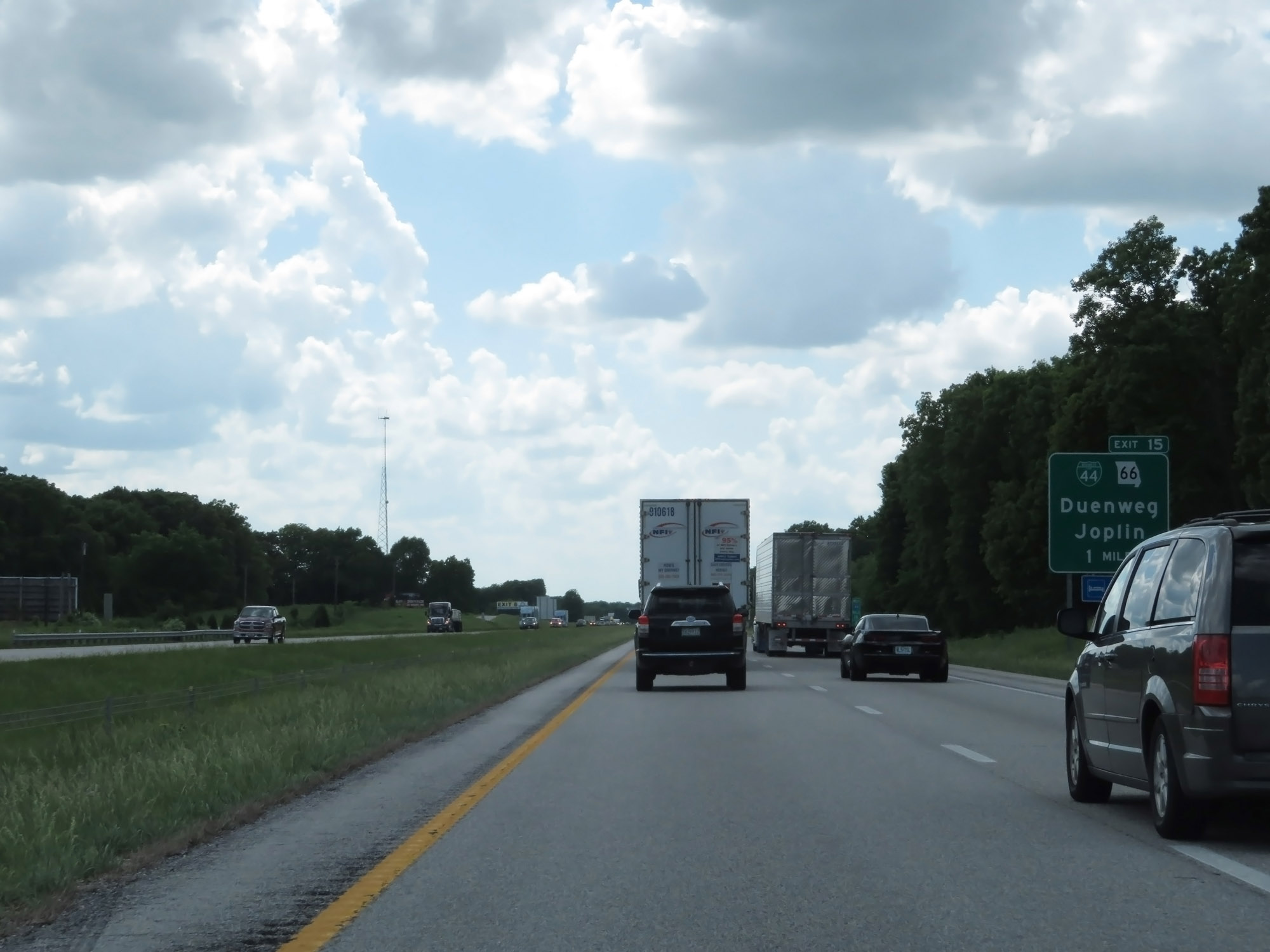 Interstate 49 South / Interstate 44 West at Exit 15: Interstate 44 Business Loop / MO 66 - Duenweg / Joplin (Photo taken 5/17/18). |