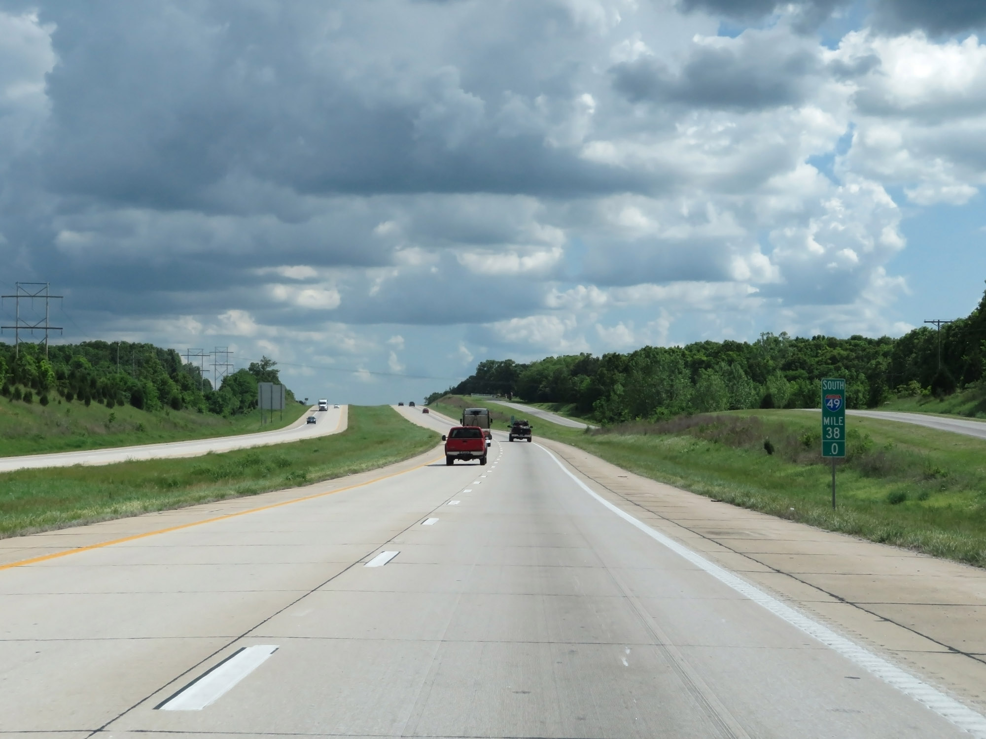 Interstate 49 South at mile marker 38. (Photo taken 5/17/18). |