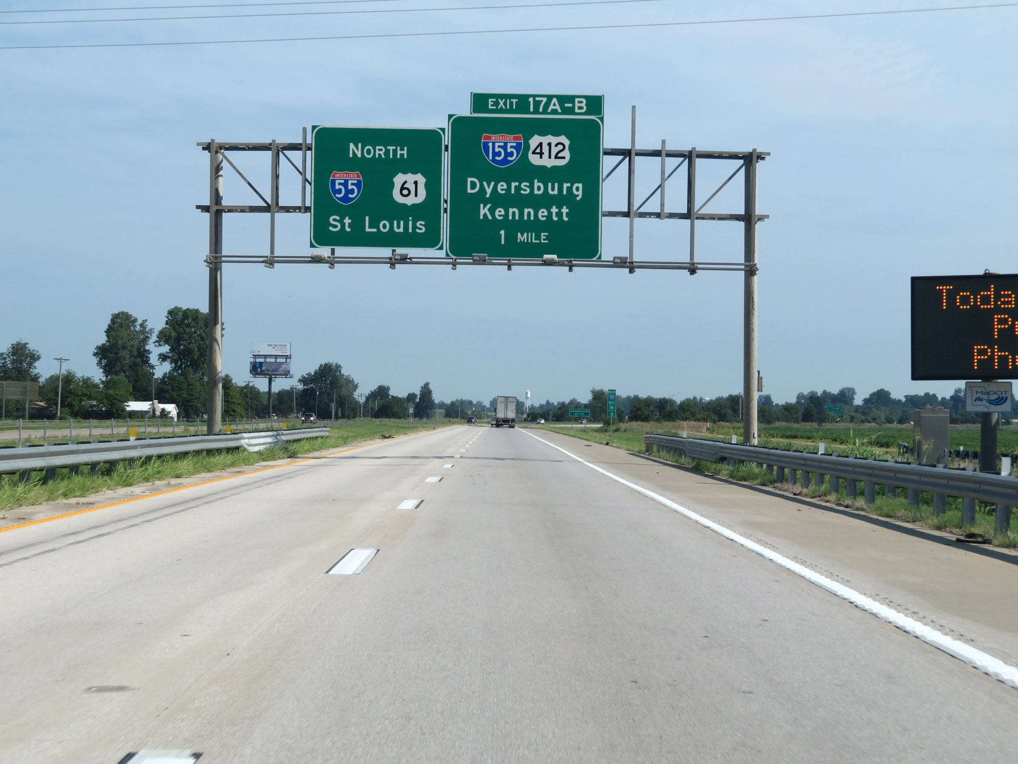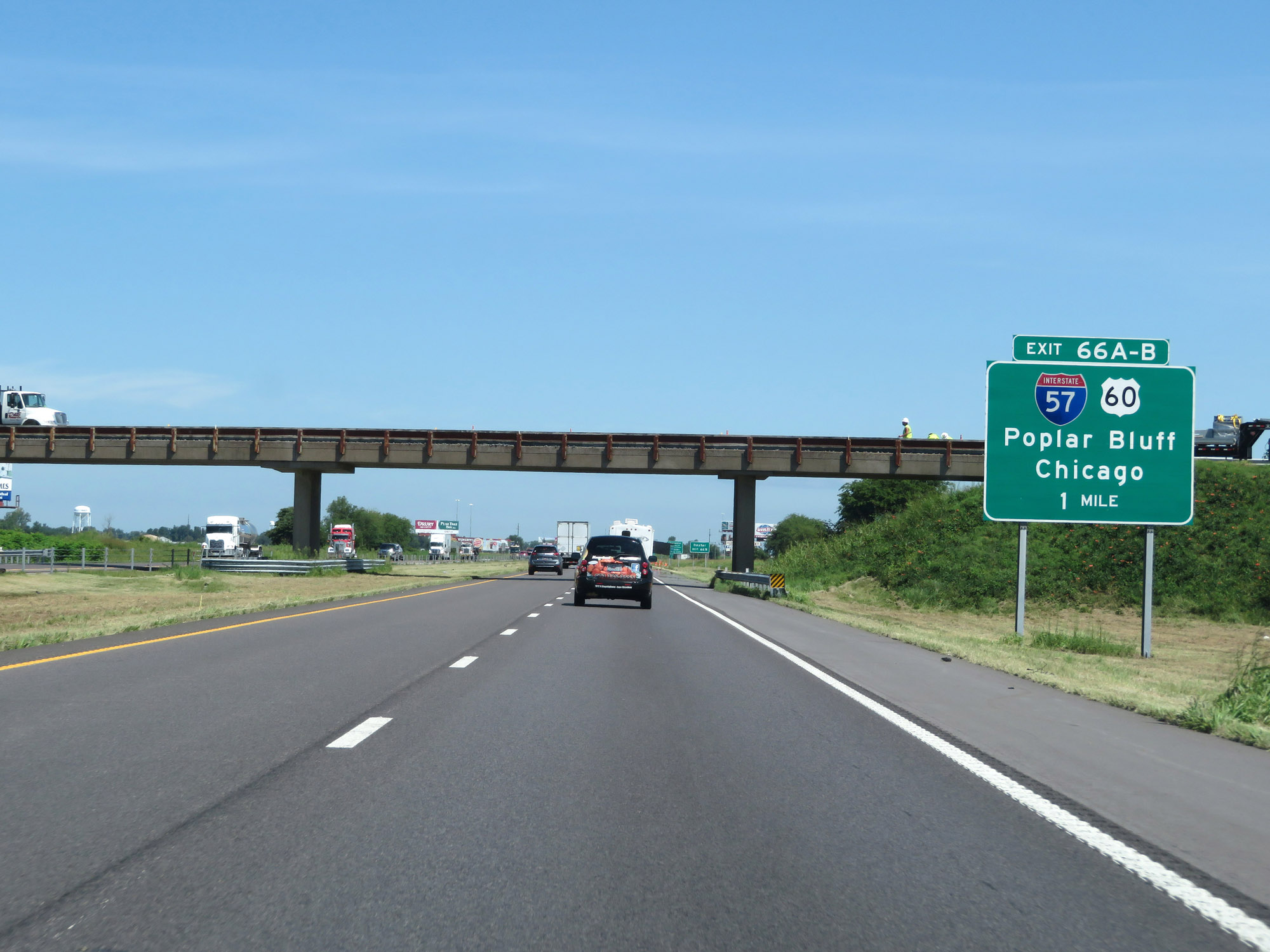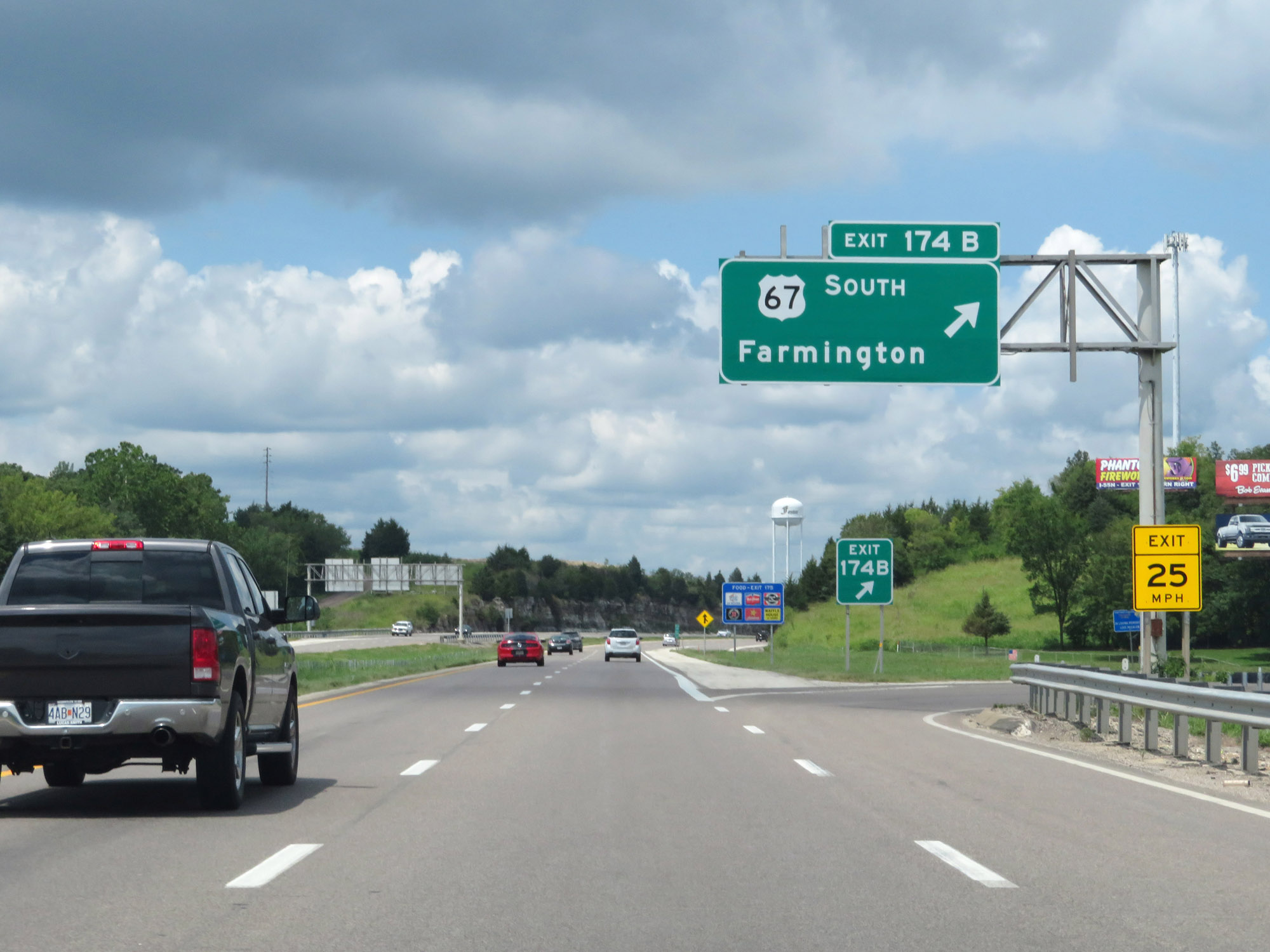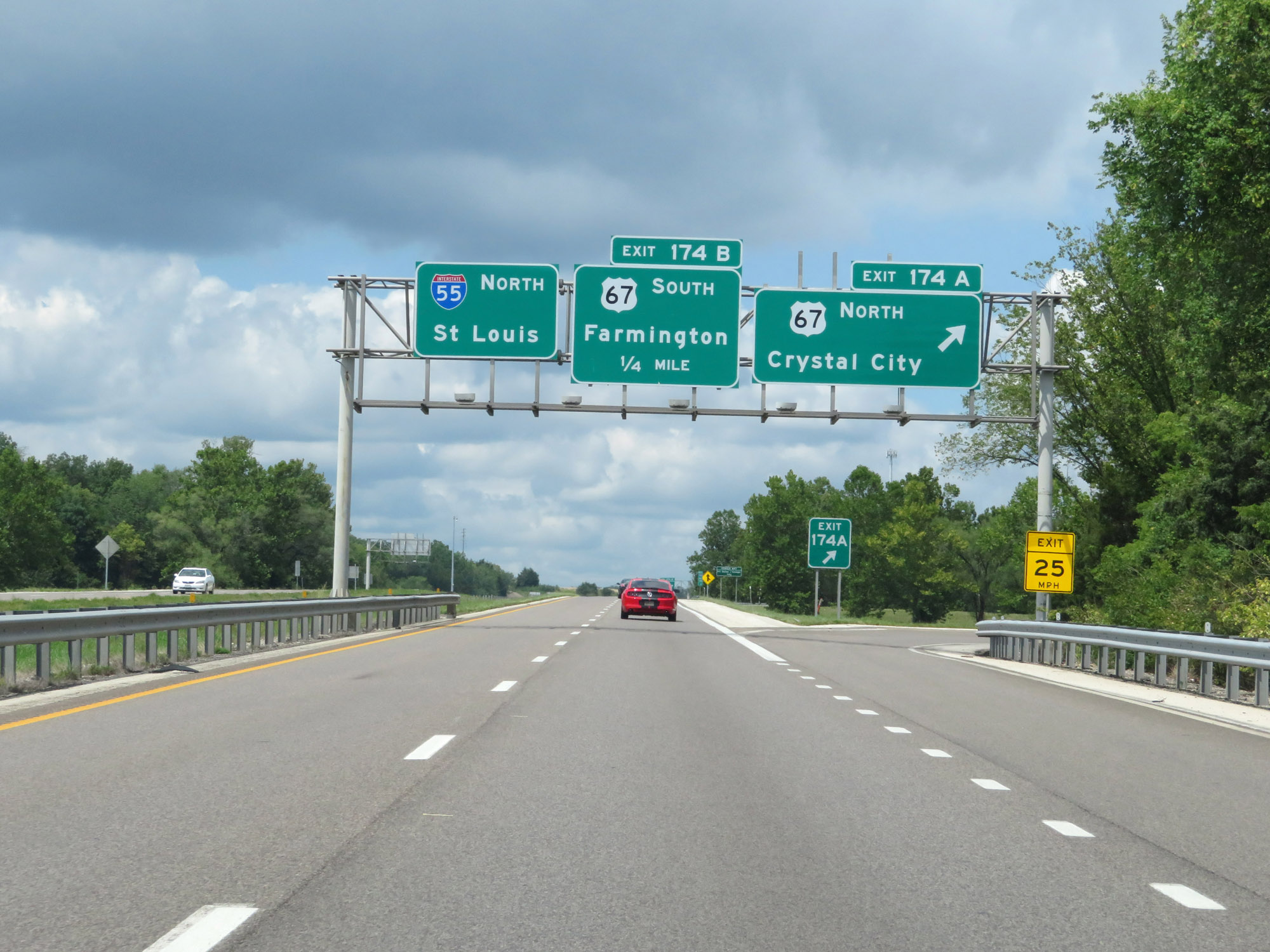 Interstate 55 North at Exit 174B: US 67 South - Farmington (Photo taken 8/13/19). |