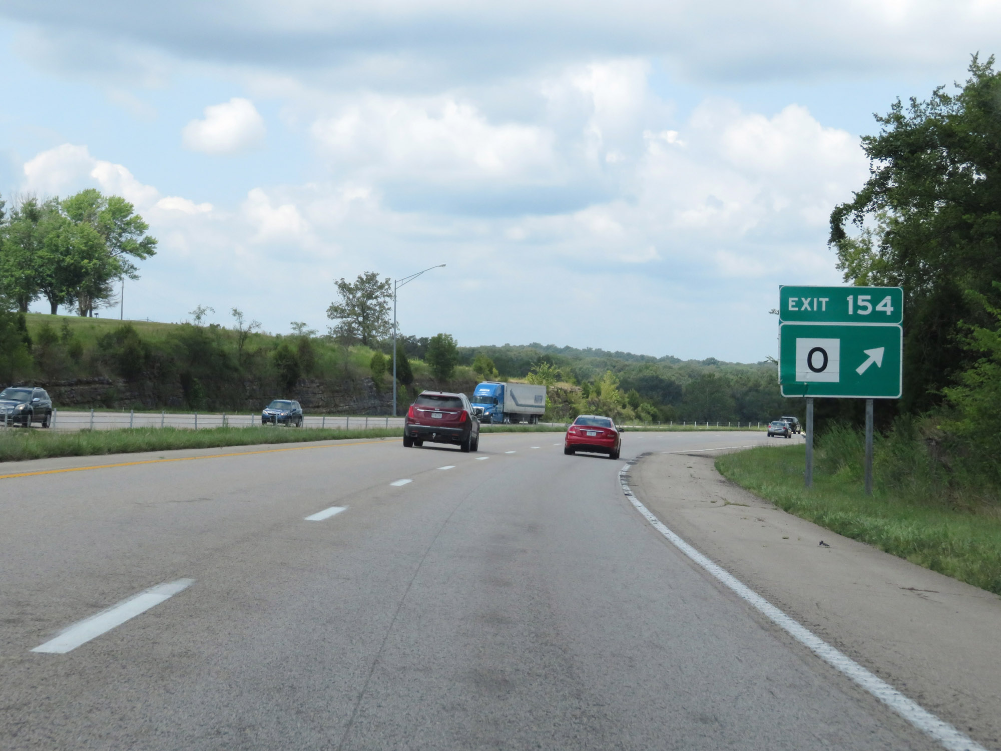 Interstate 55 North at Exit 154: Route O (Photo taken 8/13/19). |