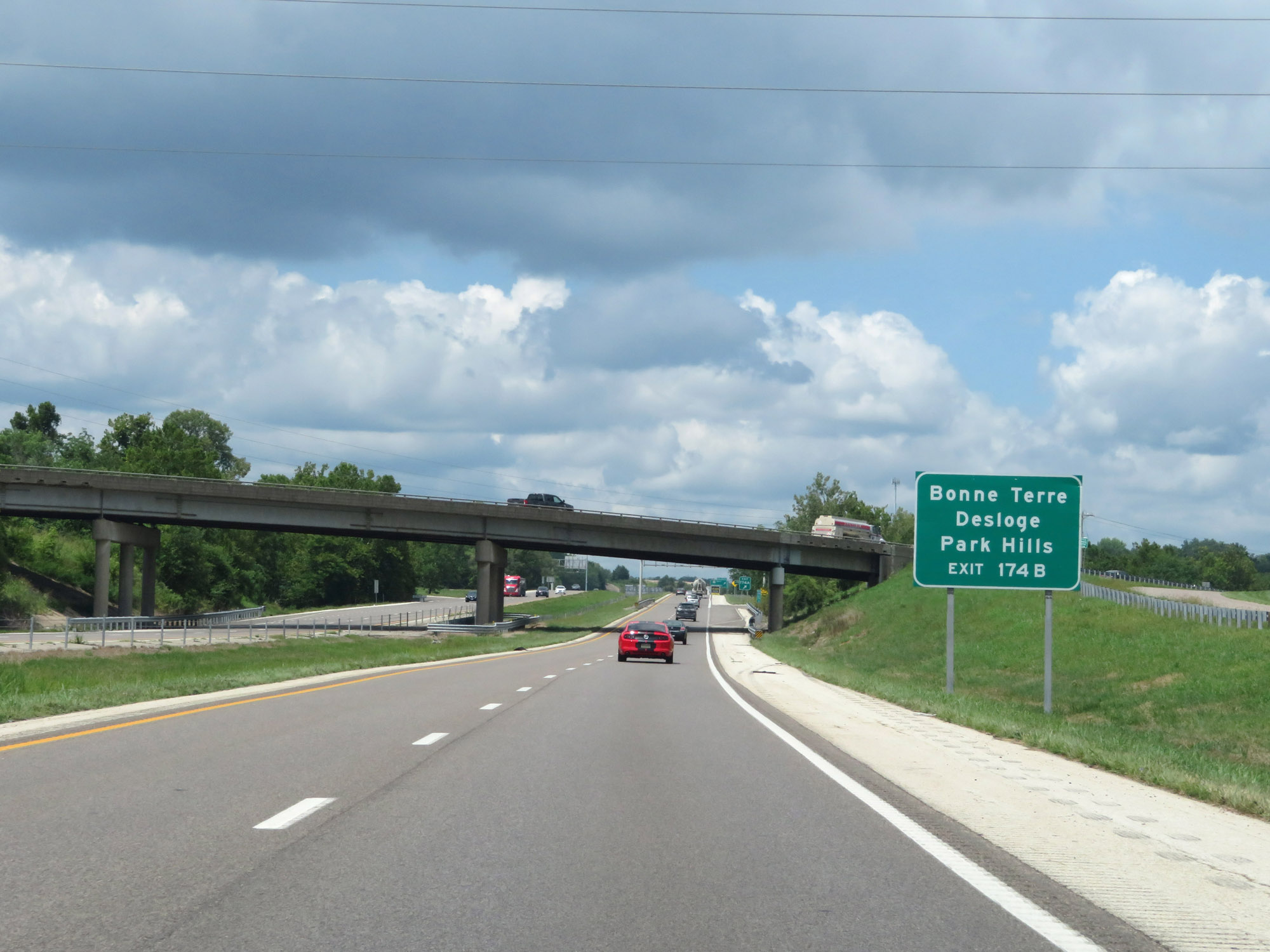 Take Exit 174B to Bonne Terre, Desloge, and Park Hills. (Photo taken 8/13/19). |