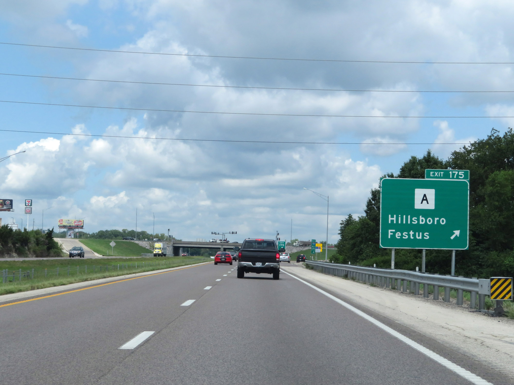 Interstate 55 North at Exit 175: Route A - Hillsboro / Festus (Photo taken 8/13/19). |
