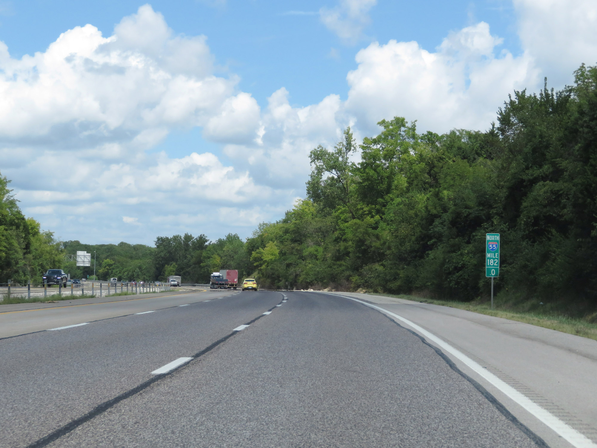 Interstate 55 North at mile marker 182. (Photo taken 8/13/19). |