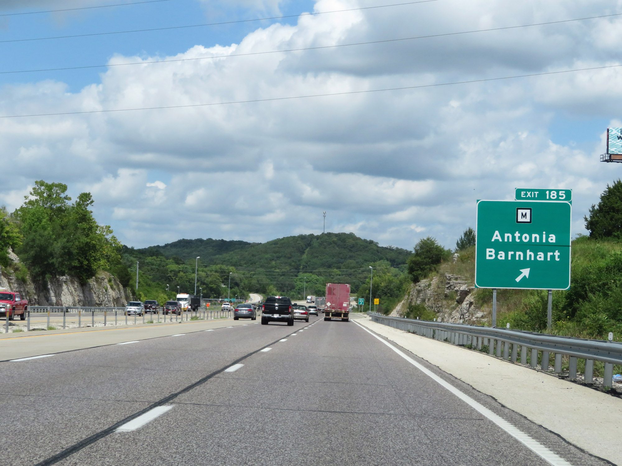 Interstate 55 North at Exit 185: Route M - Antonia / Barnhart (Photo taken 8/13/19). |