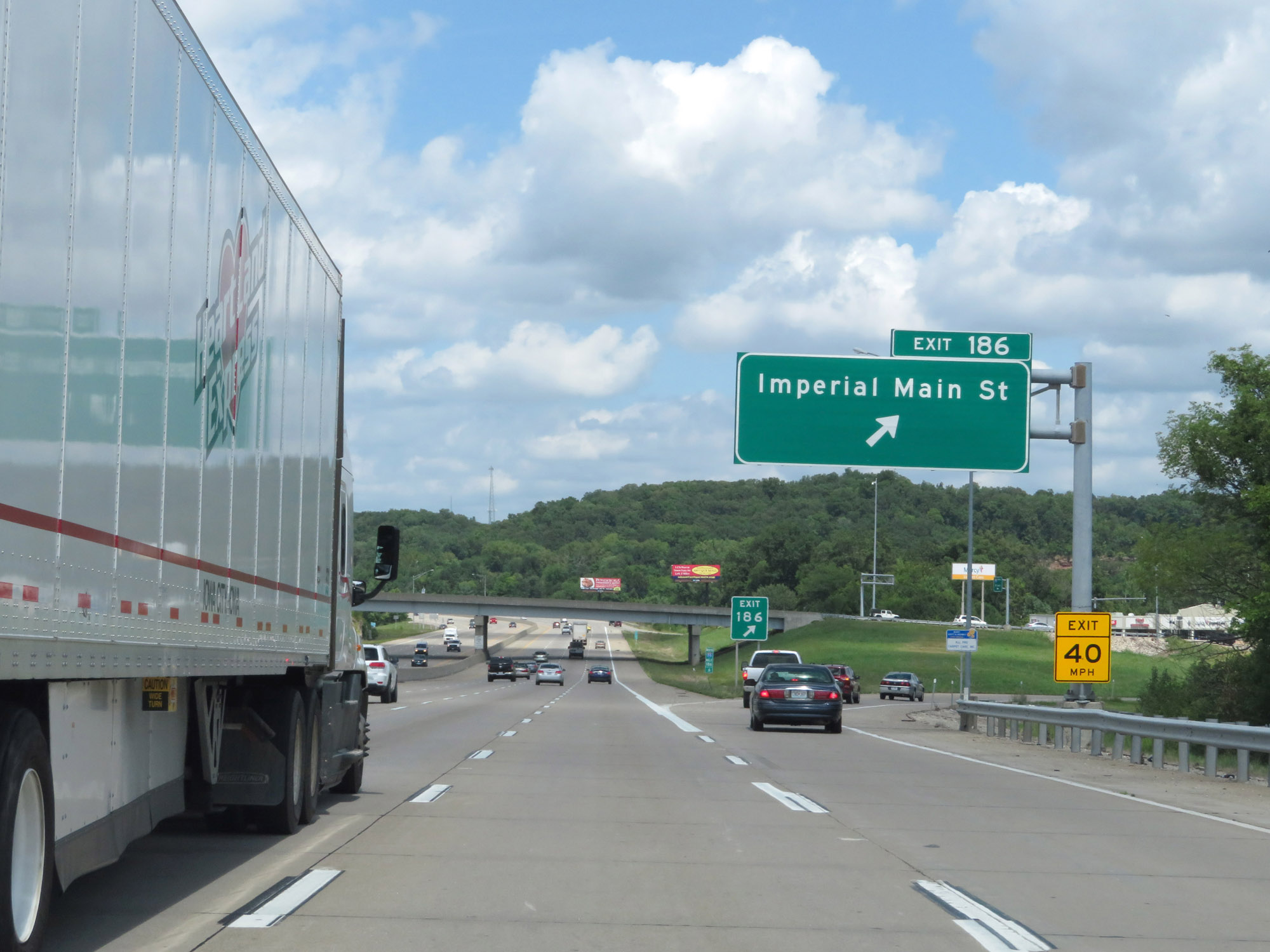 Interstate 55 North at Exit 186: Imperial Main St (Photo taken 8/13/19). |