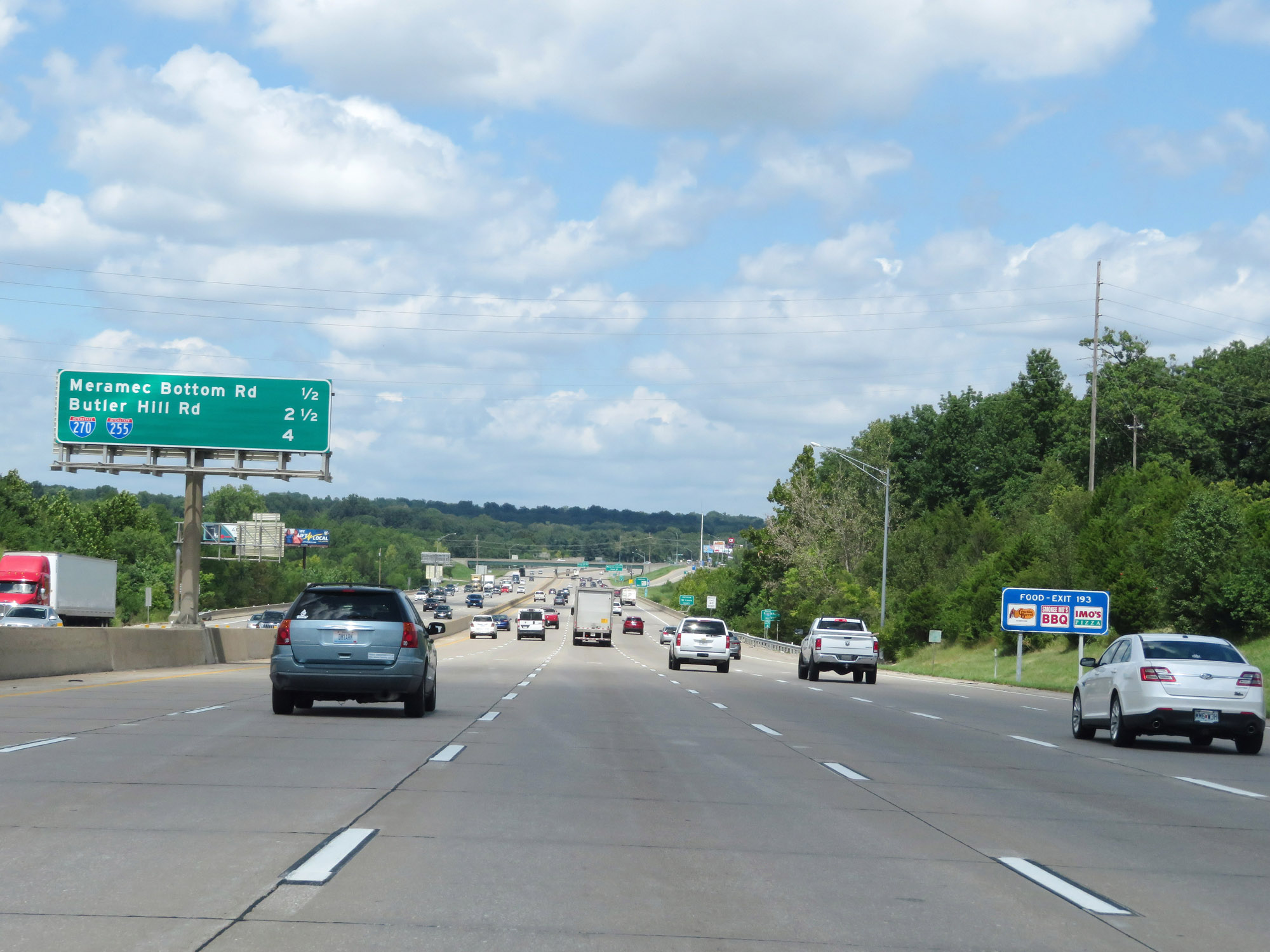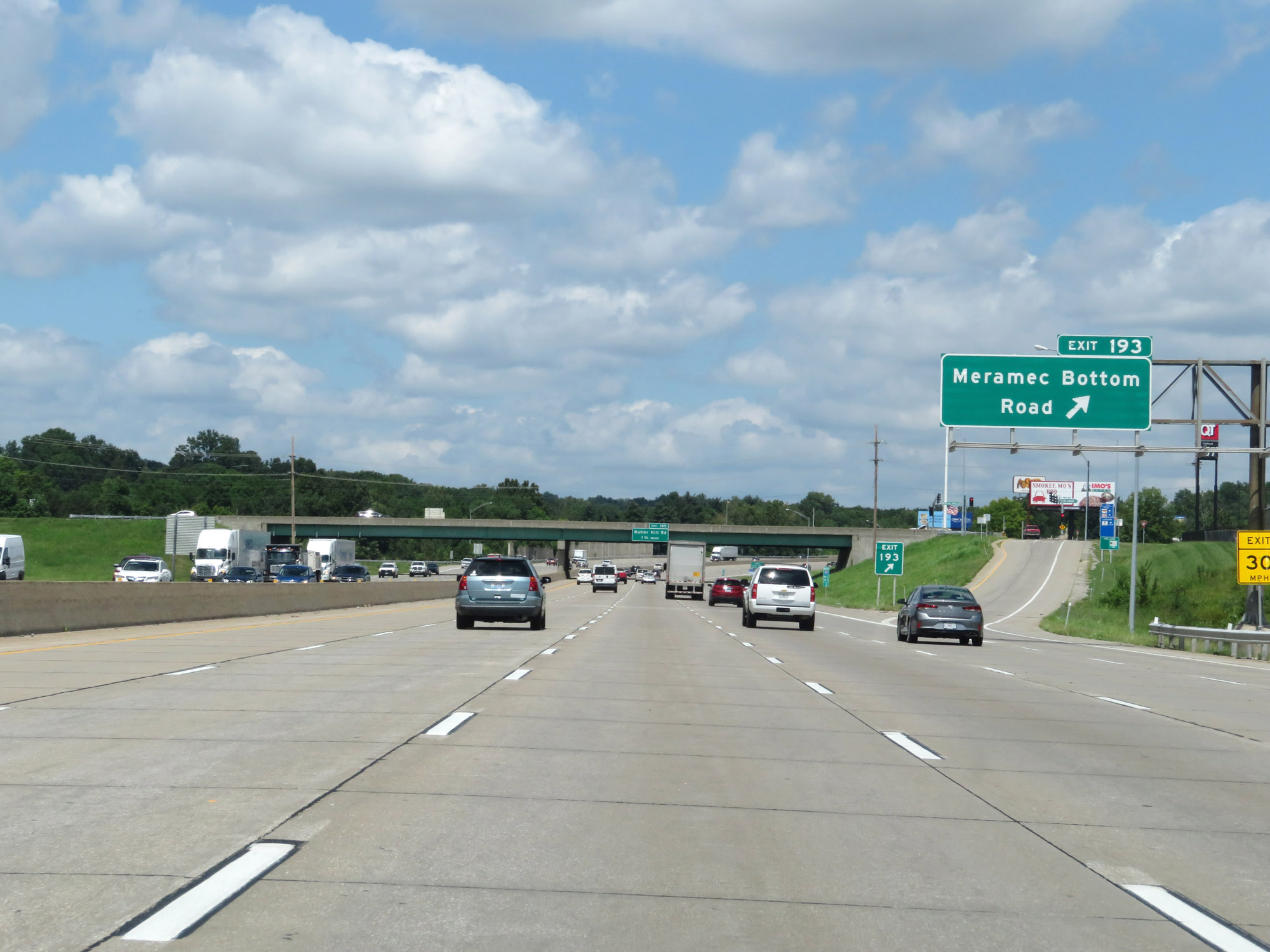 Interstate 55 North at Exit 193: Meramec Bottom Road (Photo taken 8/13/19). |