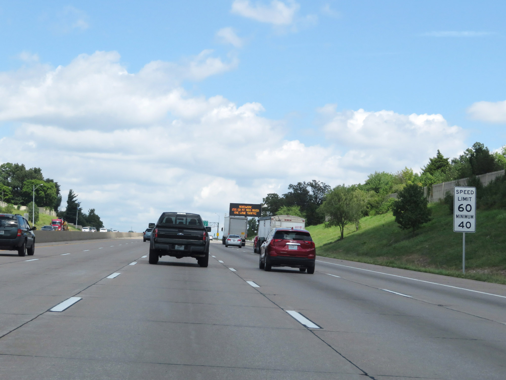 The speed limits remain 60 mph maximum and 40 mph minimum. (Photo taken 8/13/19). |