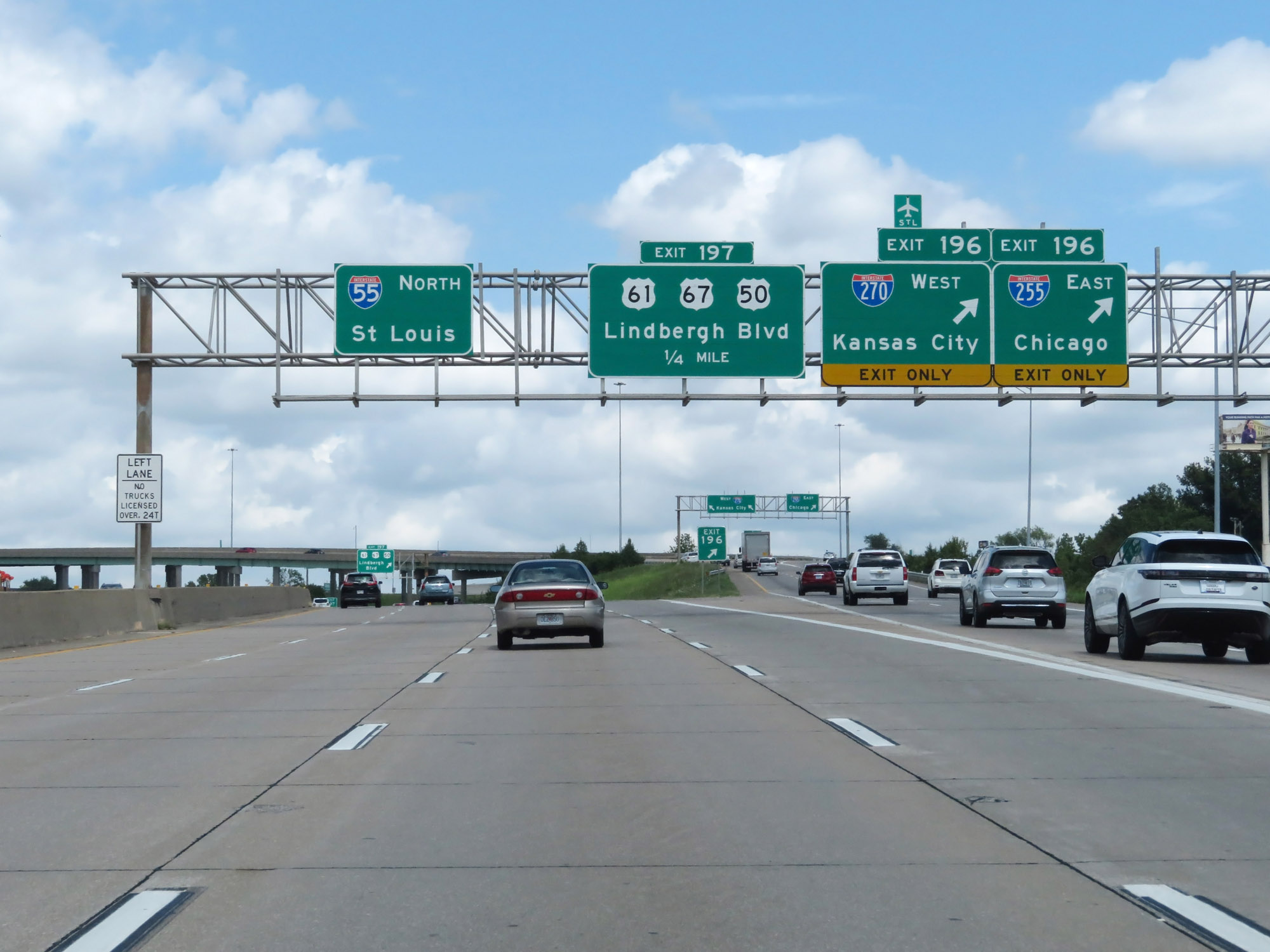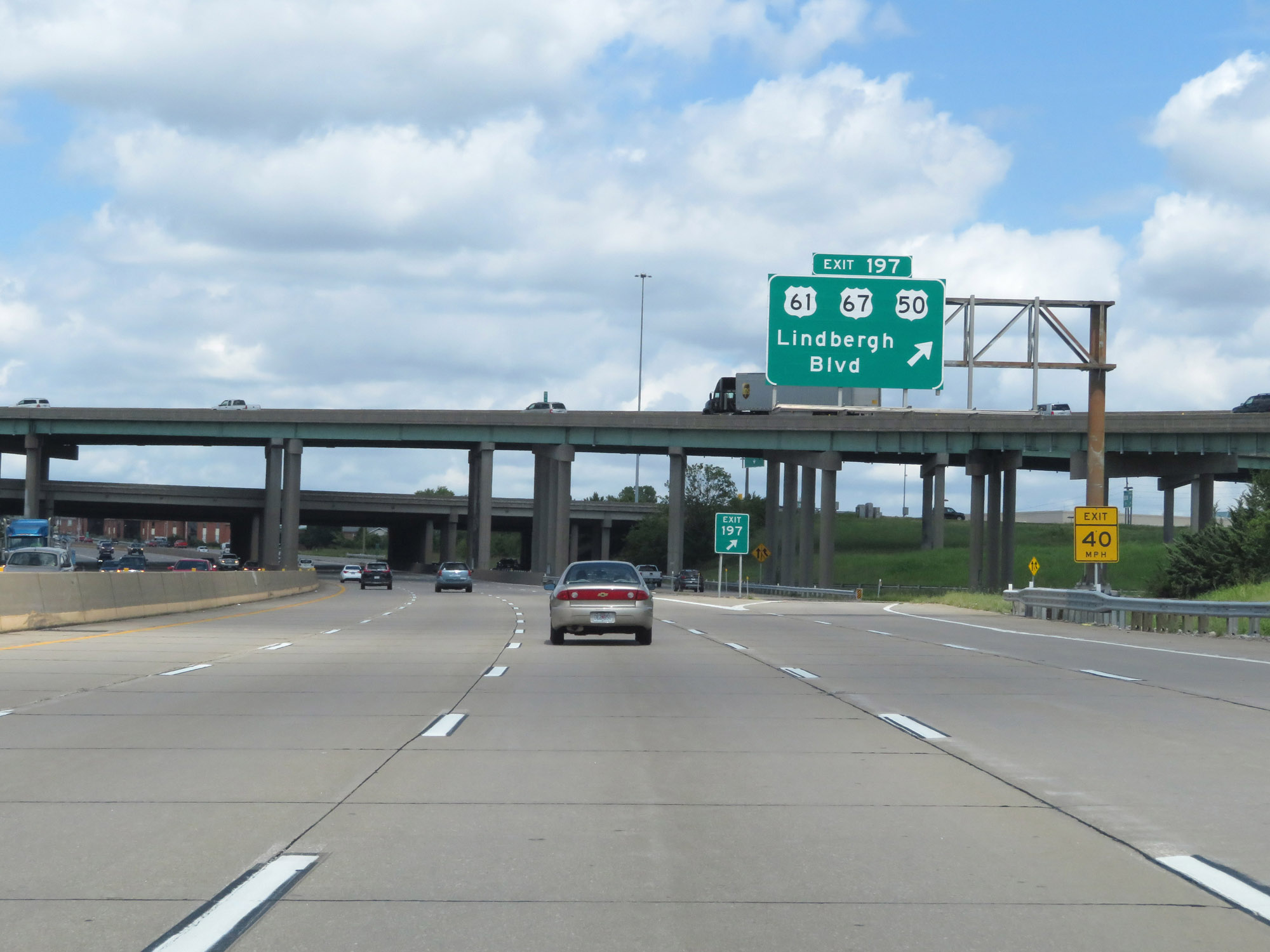 Interstate 55 North at Exit 197: US 61 / US 67 / US 50 - Lindbergh Blvd (Photo taken 8/13/19). |