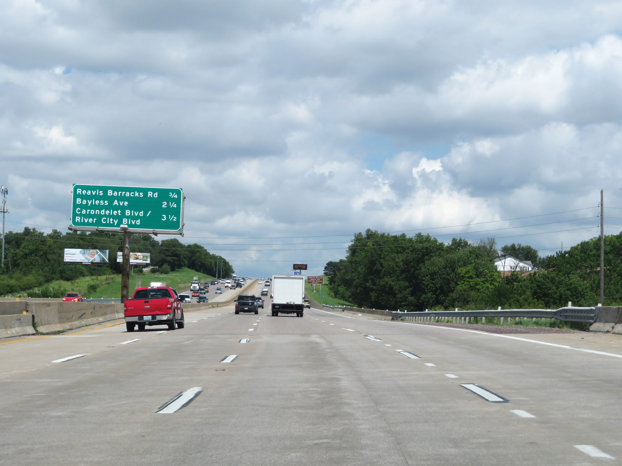 Interstate 55 North at Exit 199: Reavis Barracks Rd (Photo taken 8/13/19). |