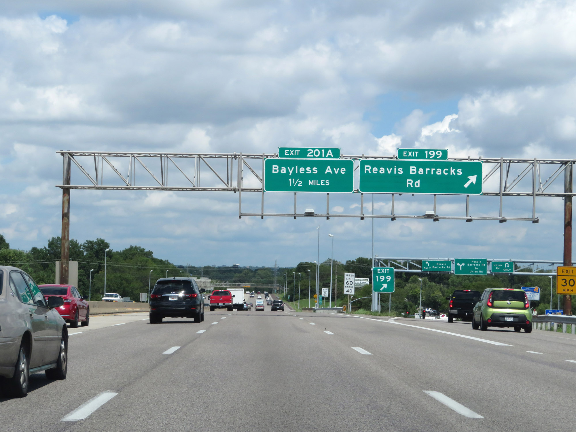 Interstate 55 North at Exit 201A: Bayless Ave (Photo taken 8/13/19). |