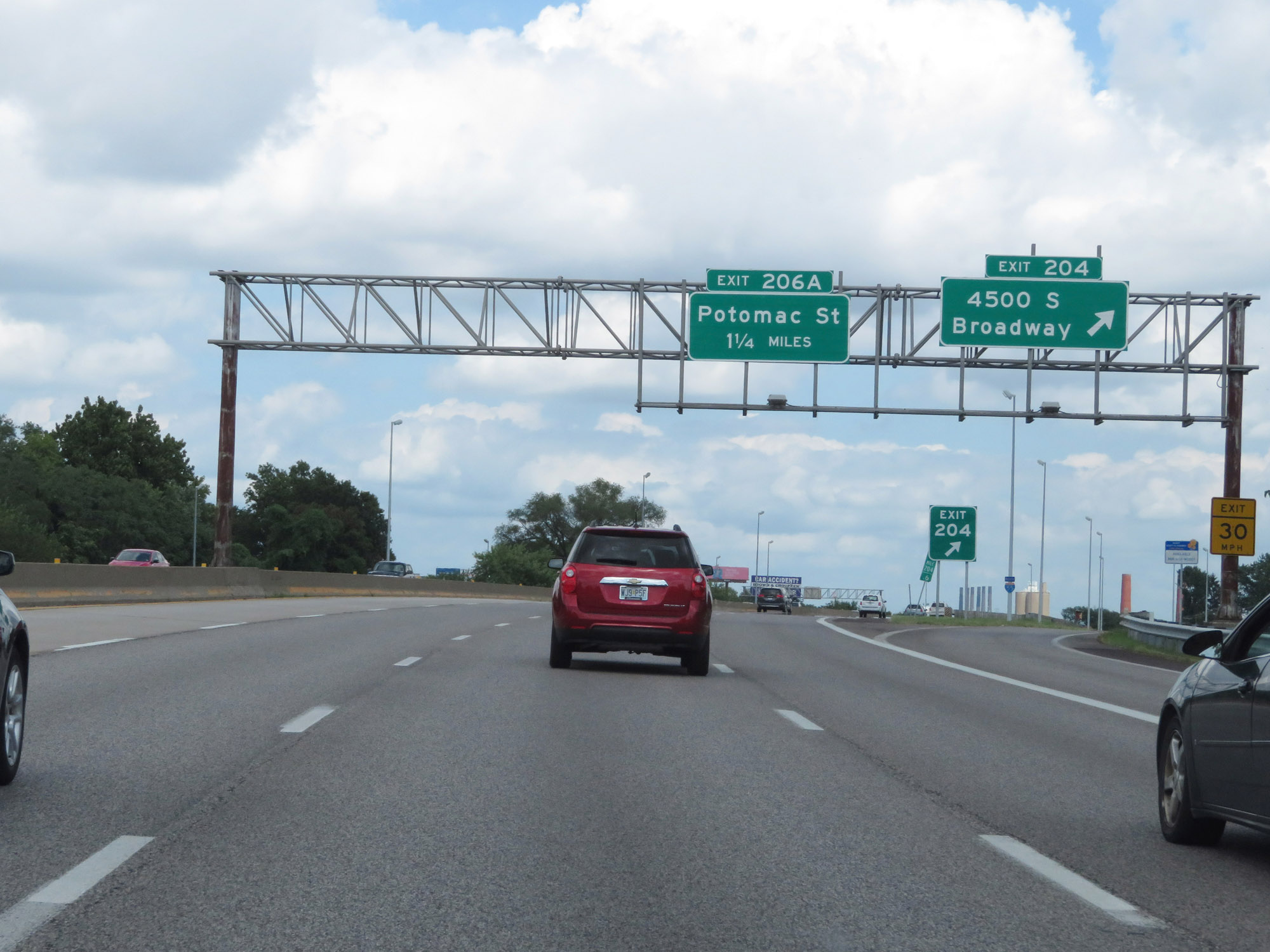 Interstate 55 North at Exit 206A: Potomac St (Photo taken 8/13/19). |
