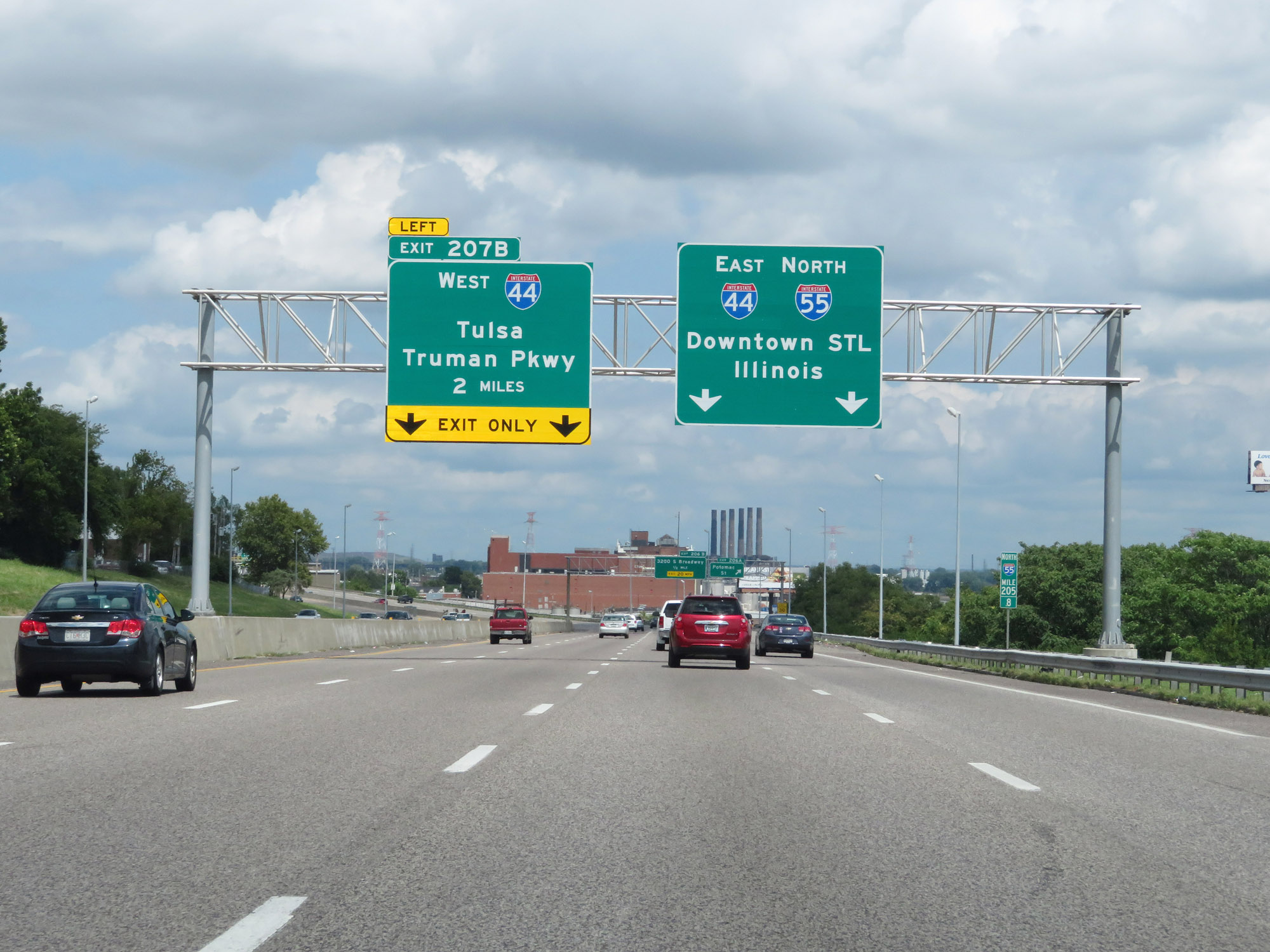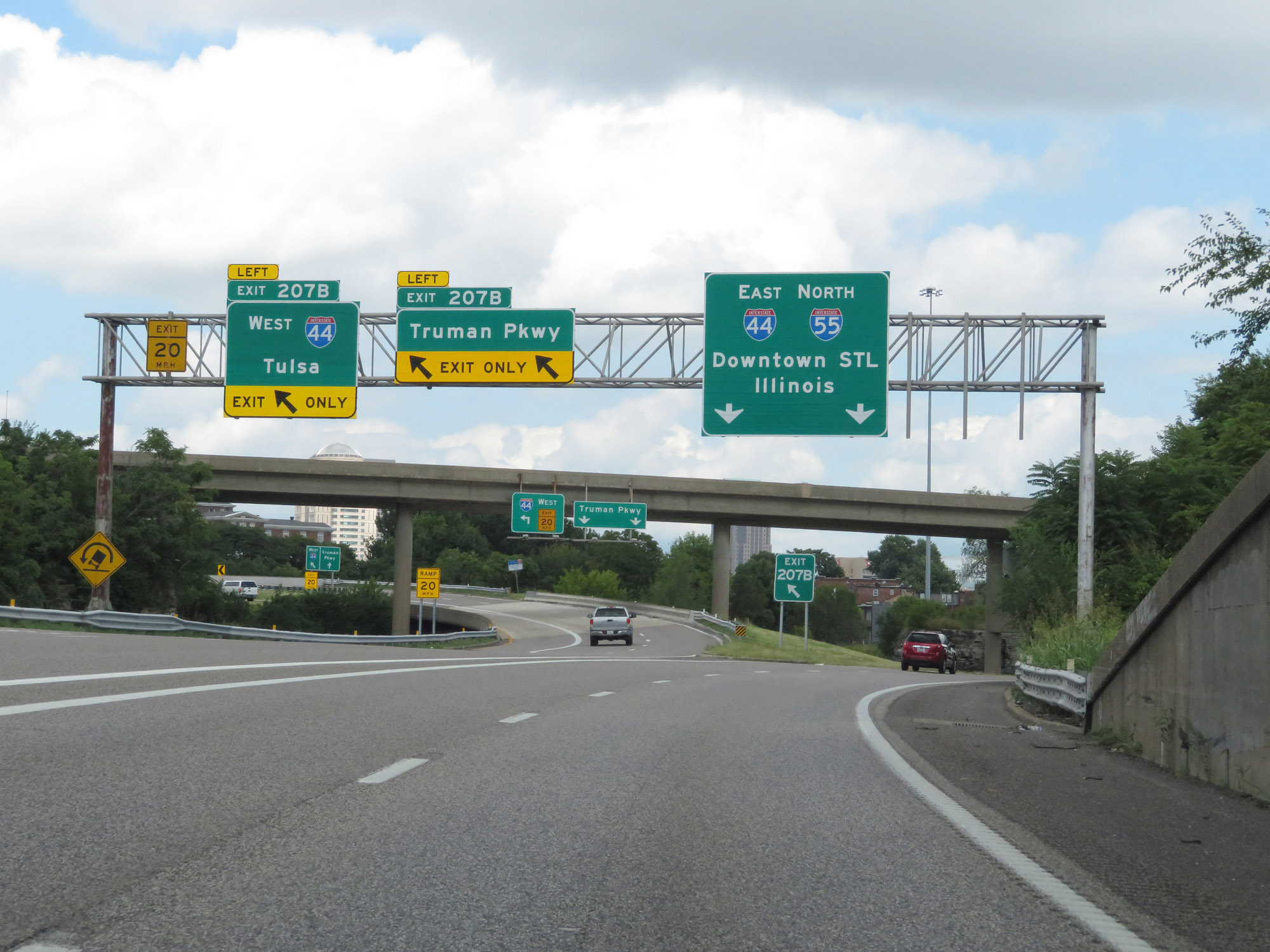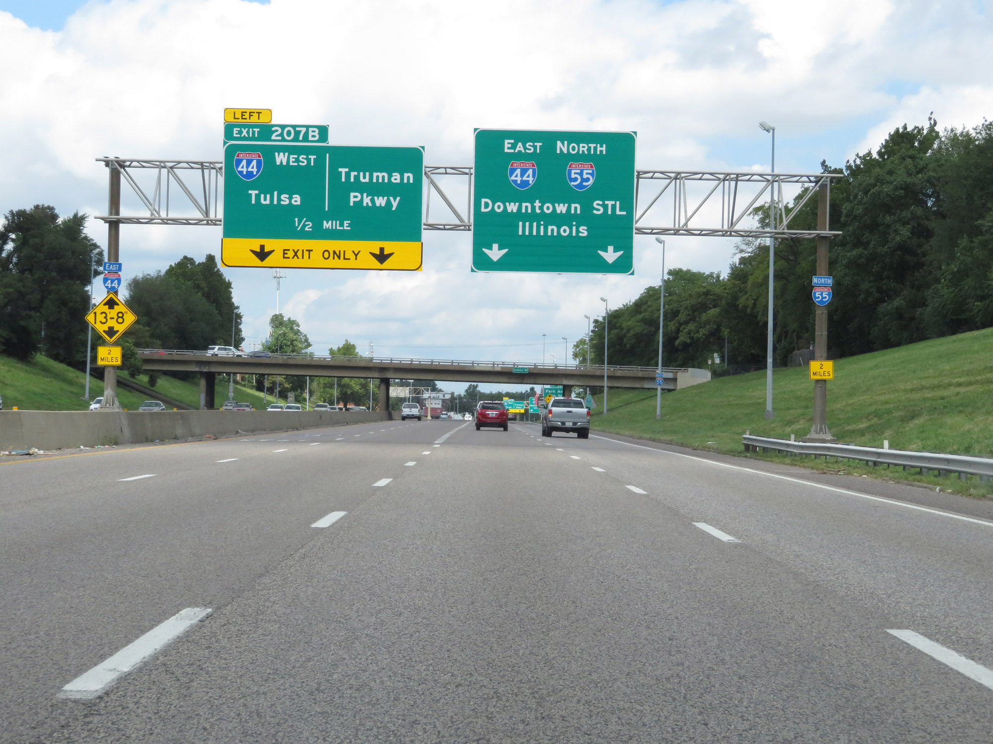 Interstate 55 North at Exit 207B: Interstate 44 West - Tulsa; Truman Pkwy (Photo taken 8/13/19). |