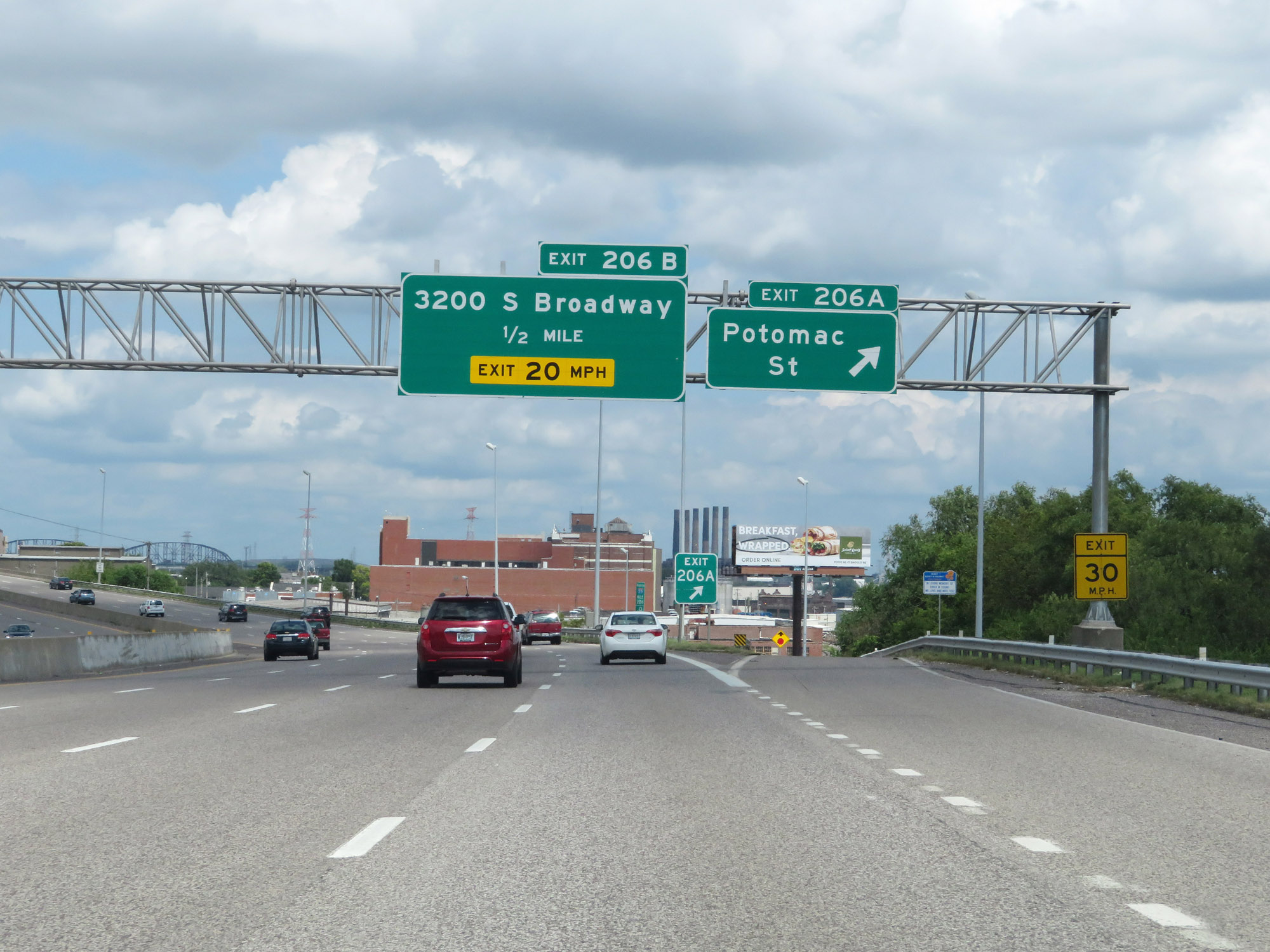 Interstate 55 North at Exit 206B: 3200 St Broadway (Photo taken 8/13/19). |