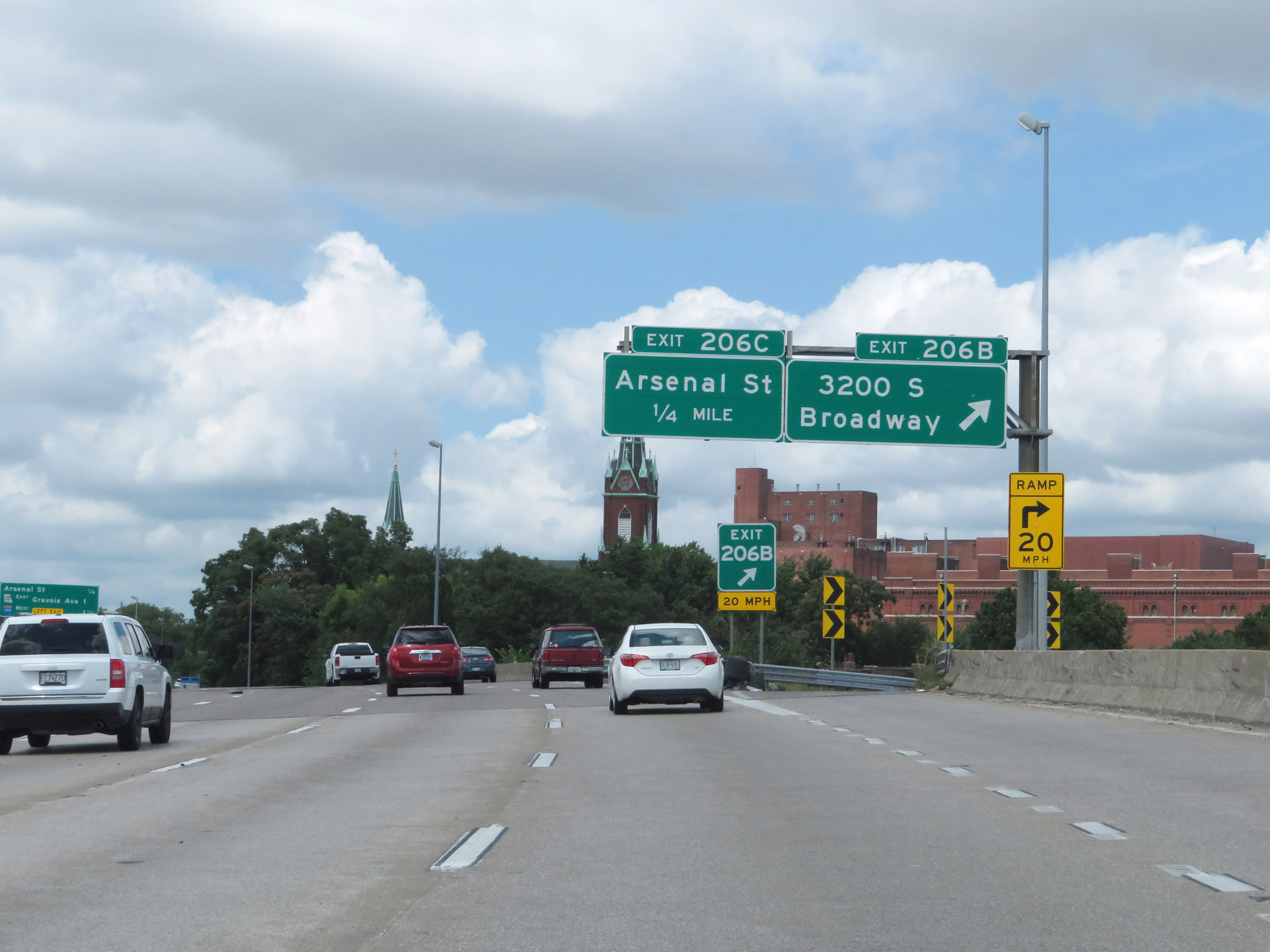 Interstate 55 North at Exit 206C: Arsenal St (Photo taken 8/13/19). |