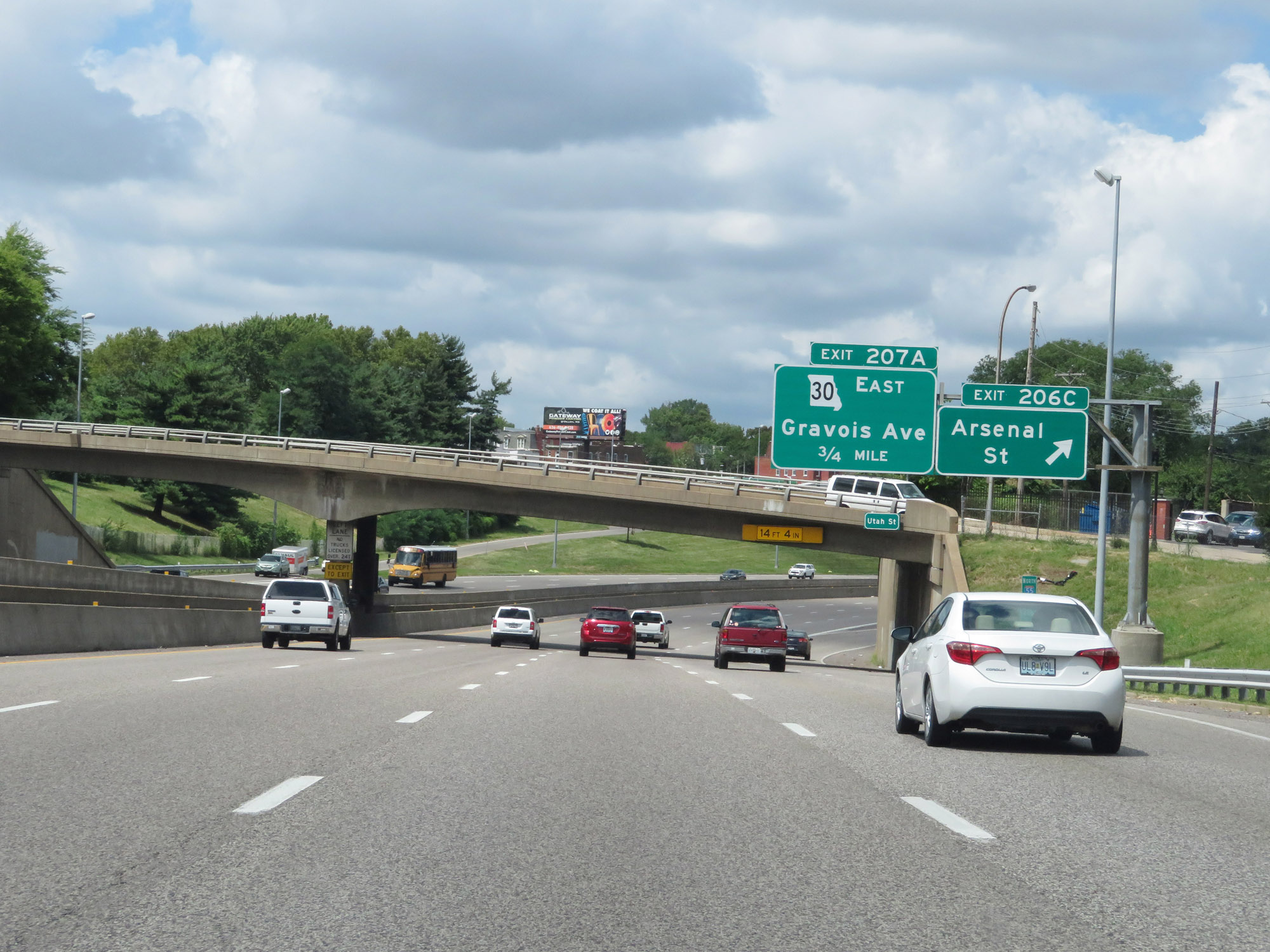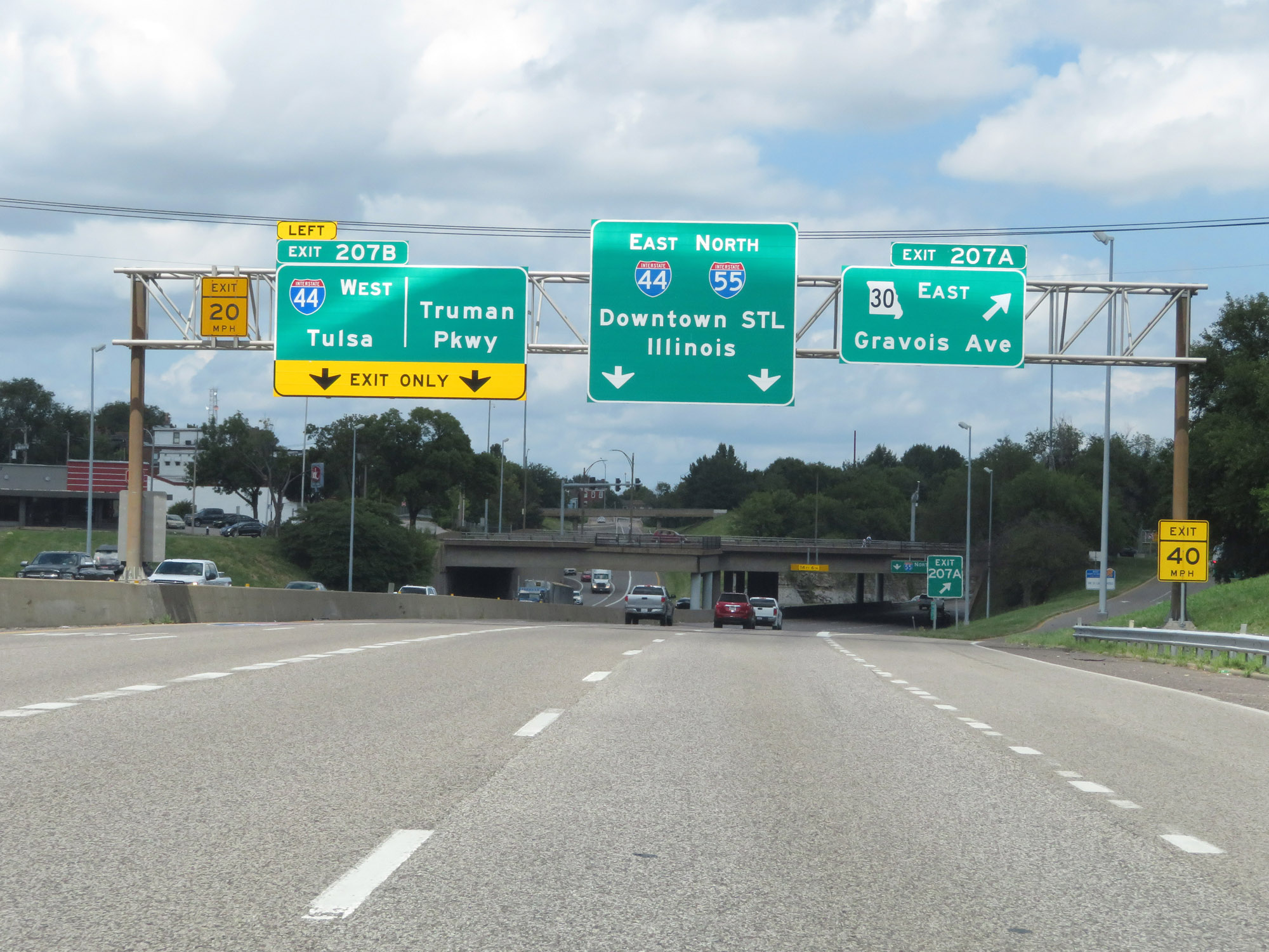 Interstate 55 North at Exit 207A: MO 30 East - Gravois Ave (Photo taken 8/13/19). |