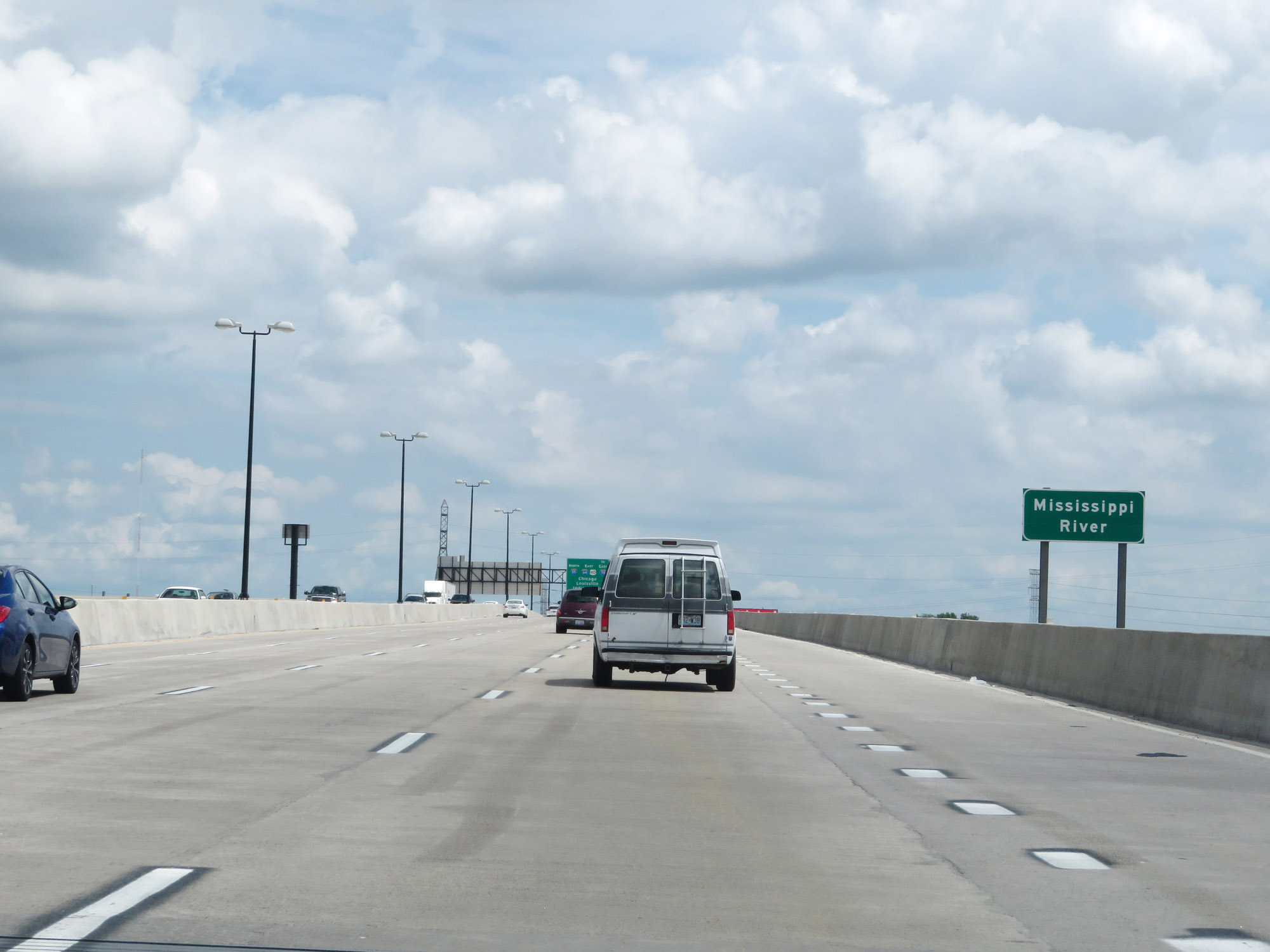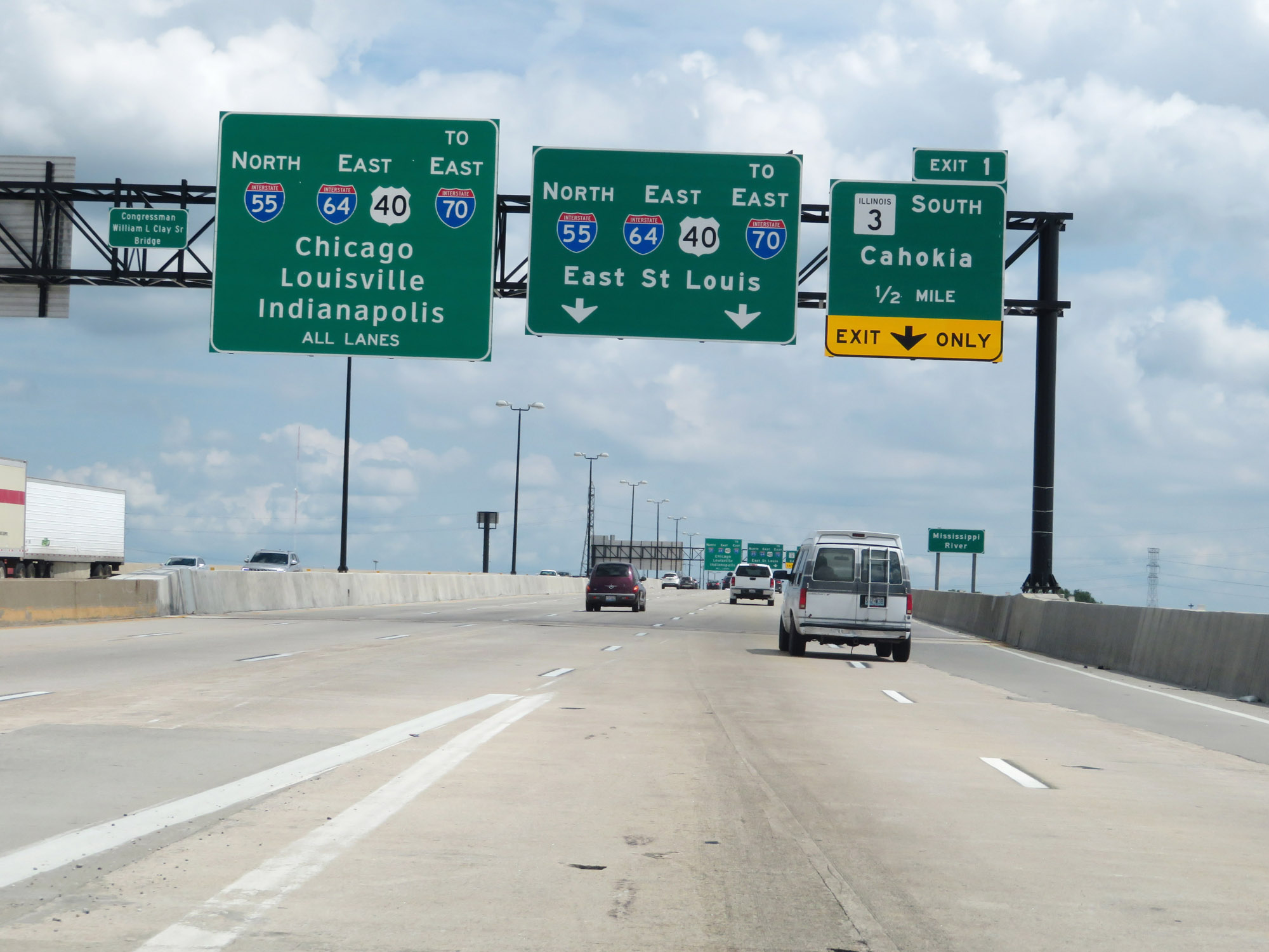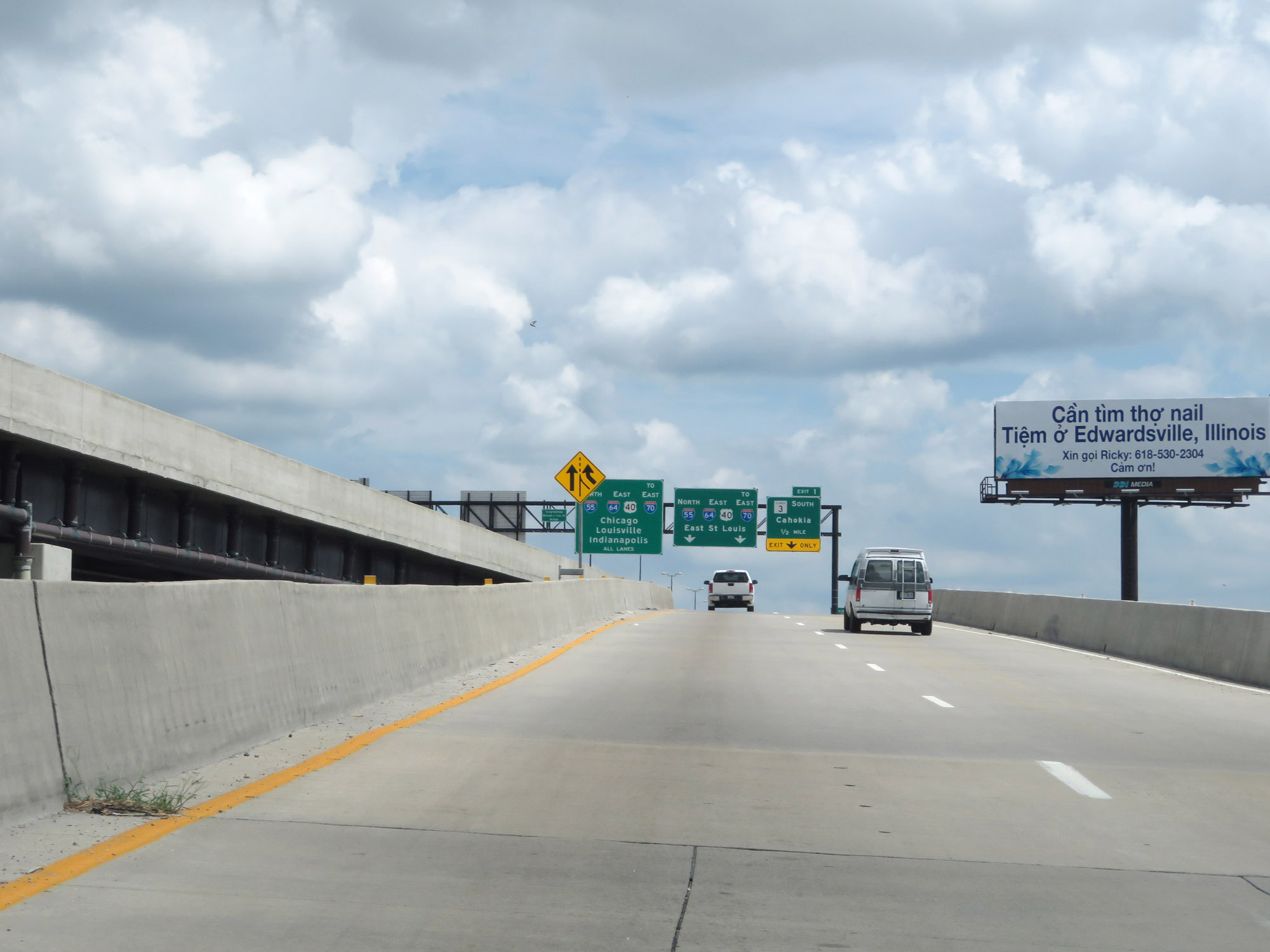 Interstate 55 North / Interstate 64 East as they cross the Mississippi River into Illinois. (Photo taken 8/13/19). |