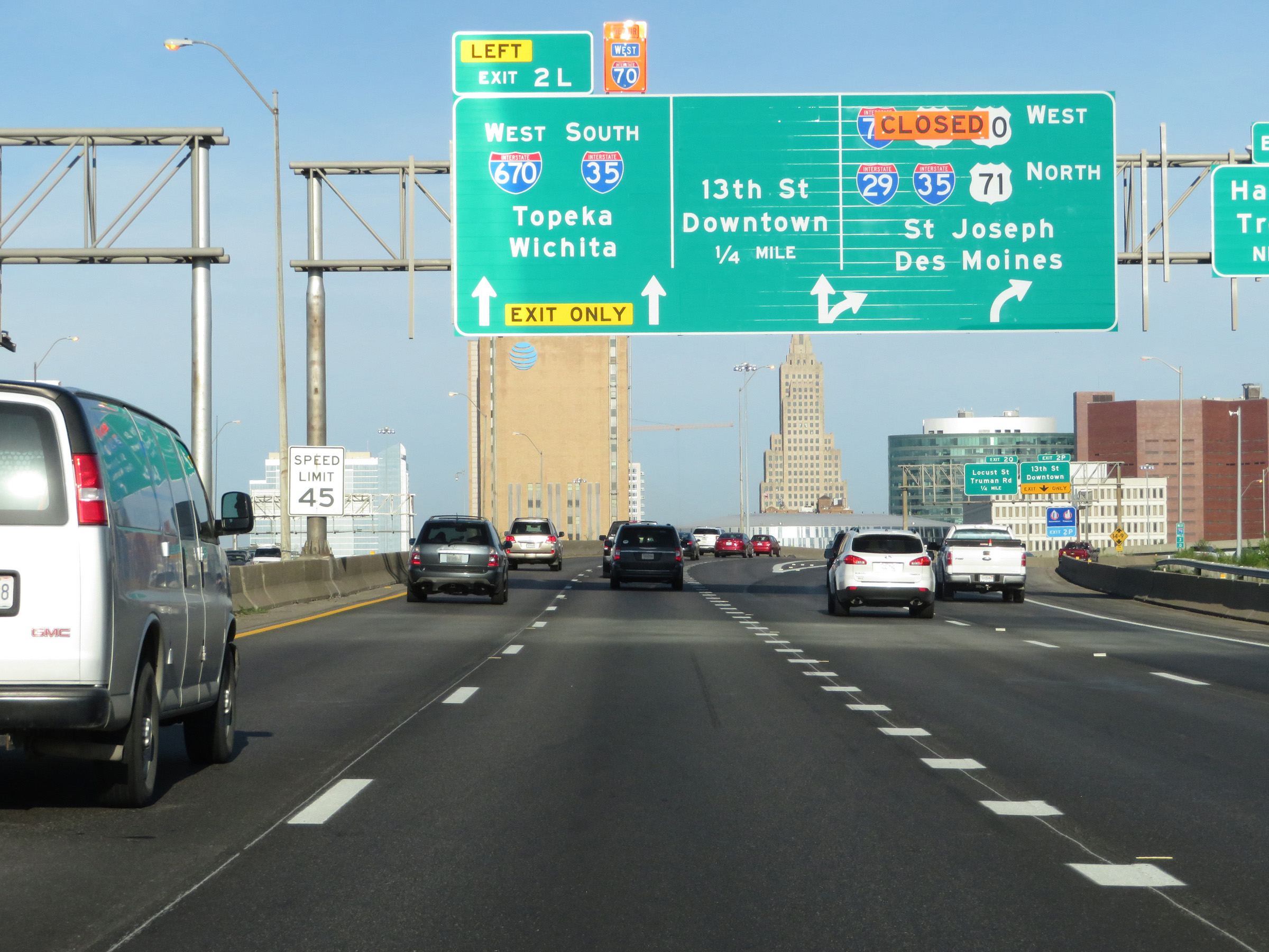 View on Interstate 670 West in downtown Kansas City. (Photo taken 8/12/20). |