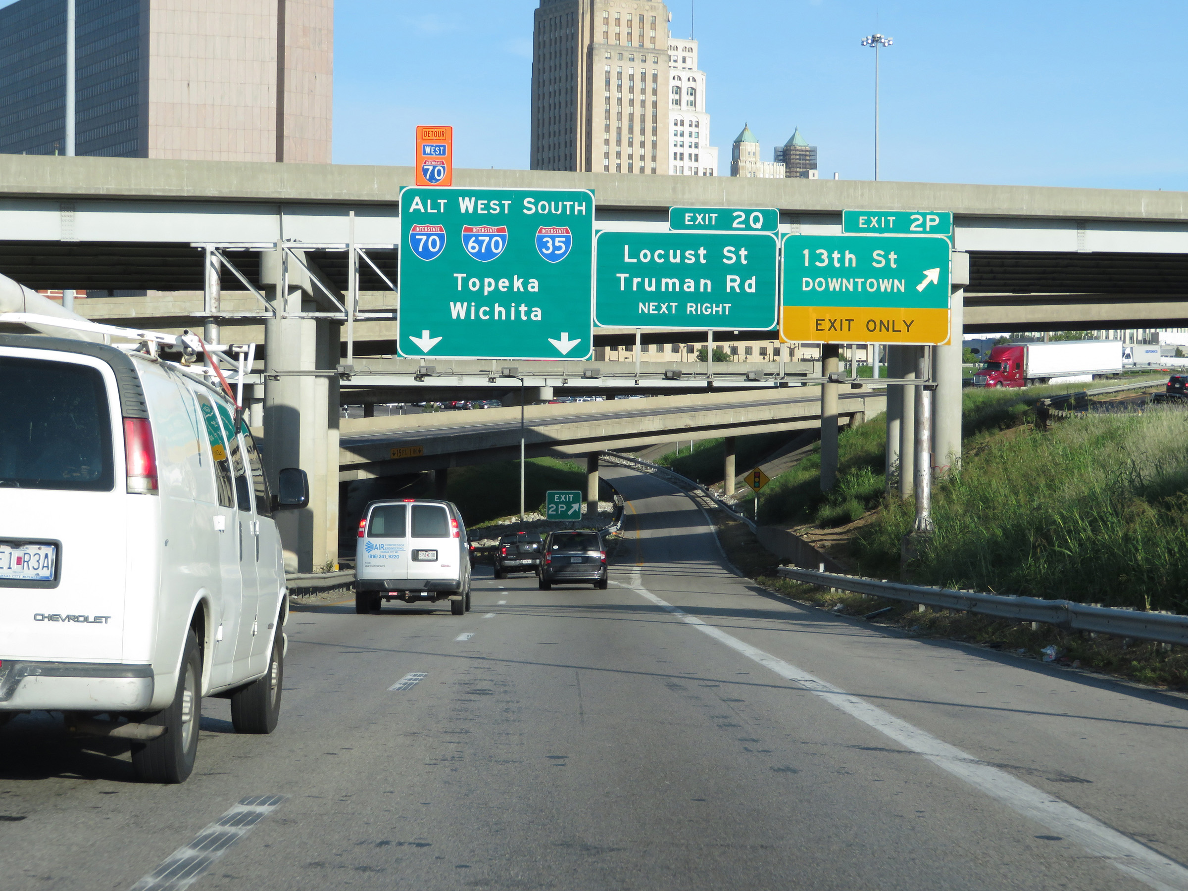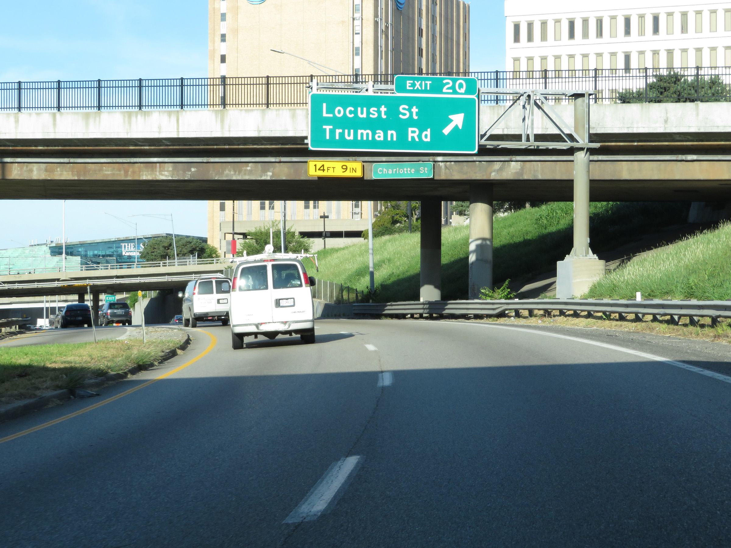 Interstate 670 West at Exit 2Q: Locust St / Truman Rd (Photo taken 8/12/20). |