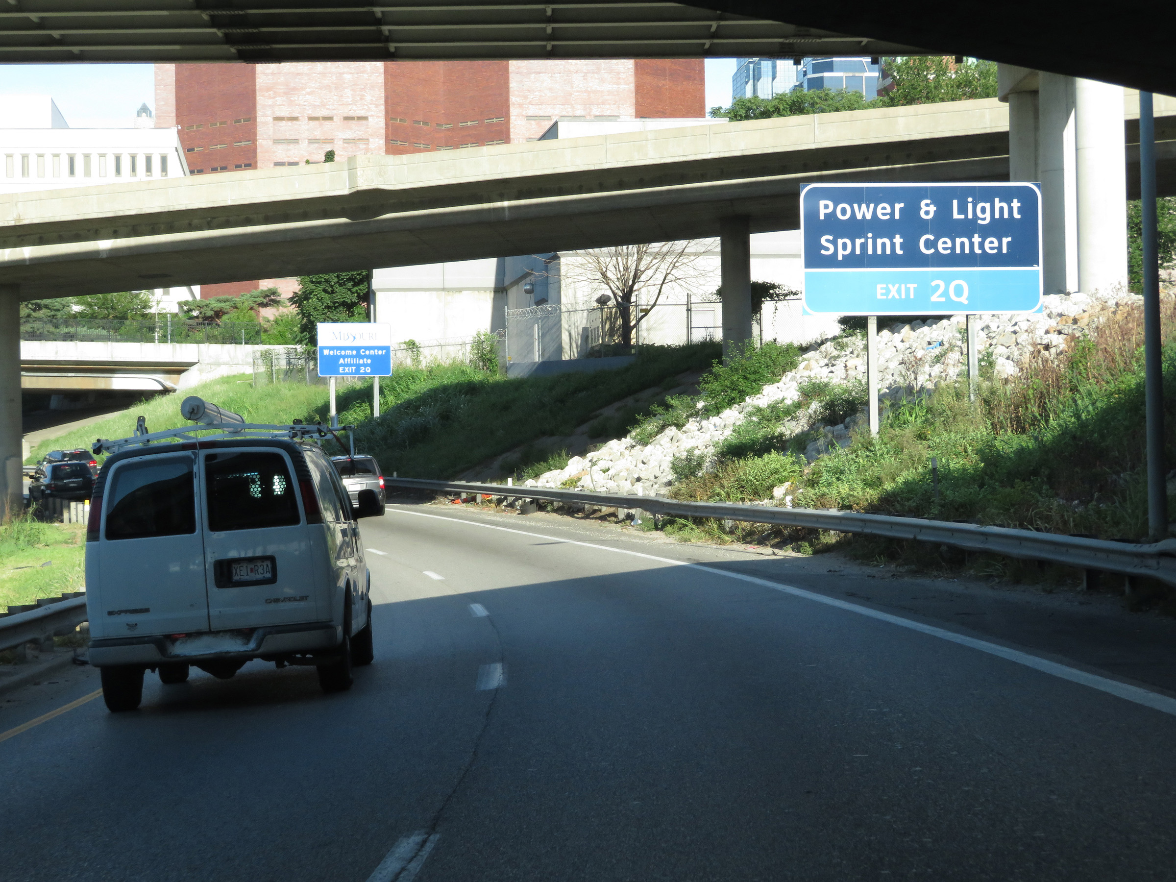 Take Exit 2Q to the Power & Light District and the Sprint Center. (Photo taken 8/12/20). |