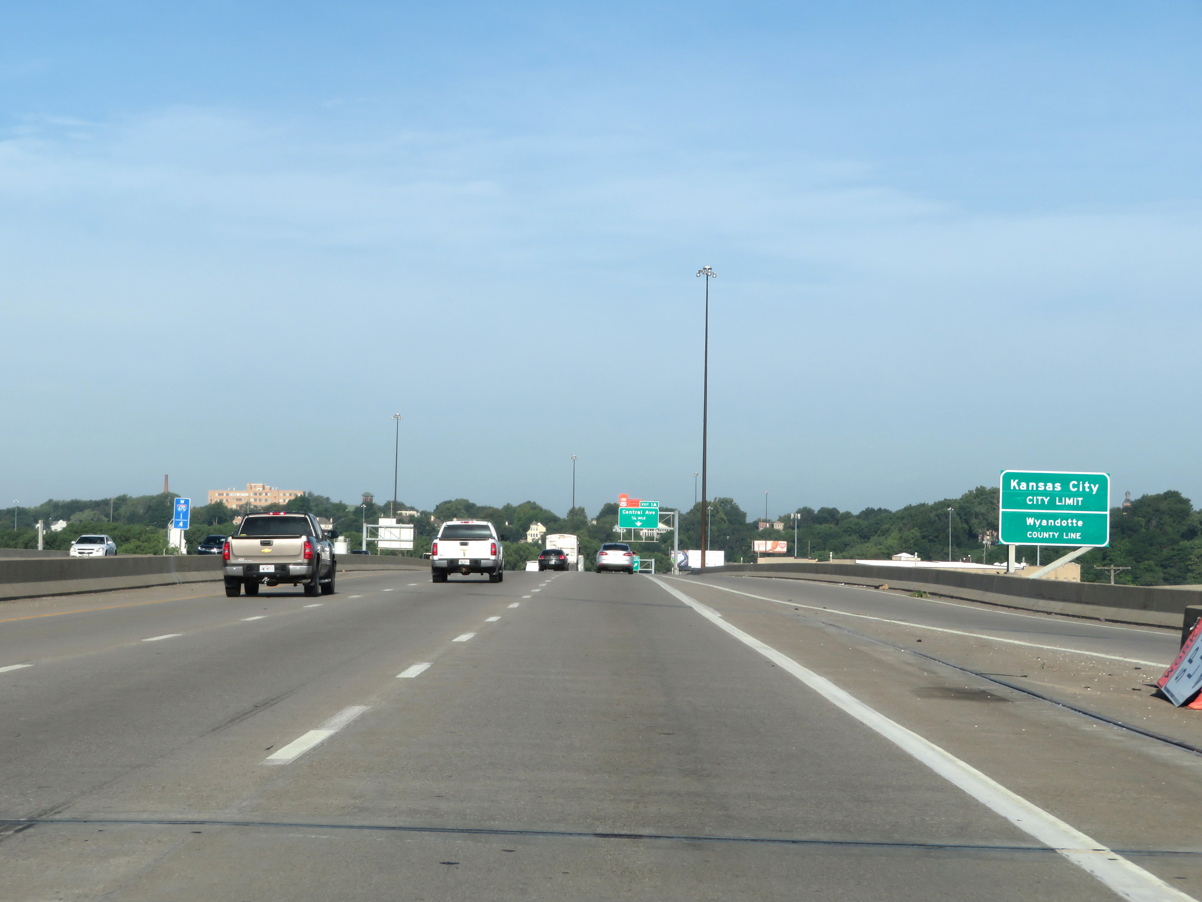 Interstate 670 West as it crosses into Kansas from Missouri. (Photo taken 8/12/20). |