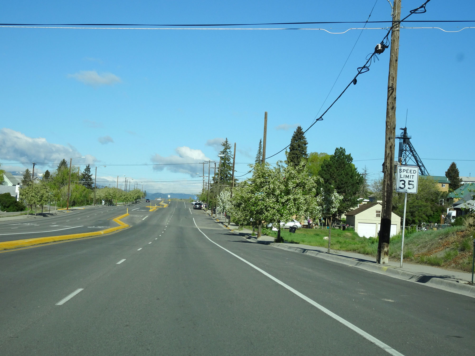 On Interstate 15 Business Loop / Interstate 90 Business Loop (W Iron St) in Butte, the speed limit starts out at 35 mph. These two Business Loops will run concurrently with Interstate 115 ahead for its entire duration. (Photo taken 5/25/16). |